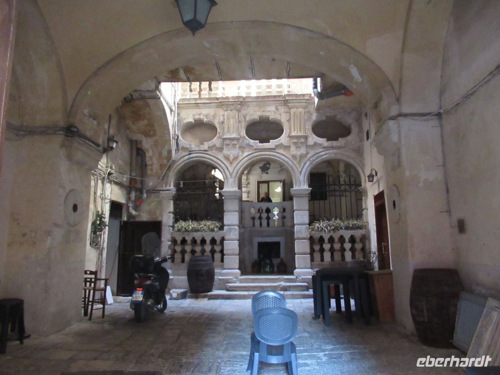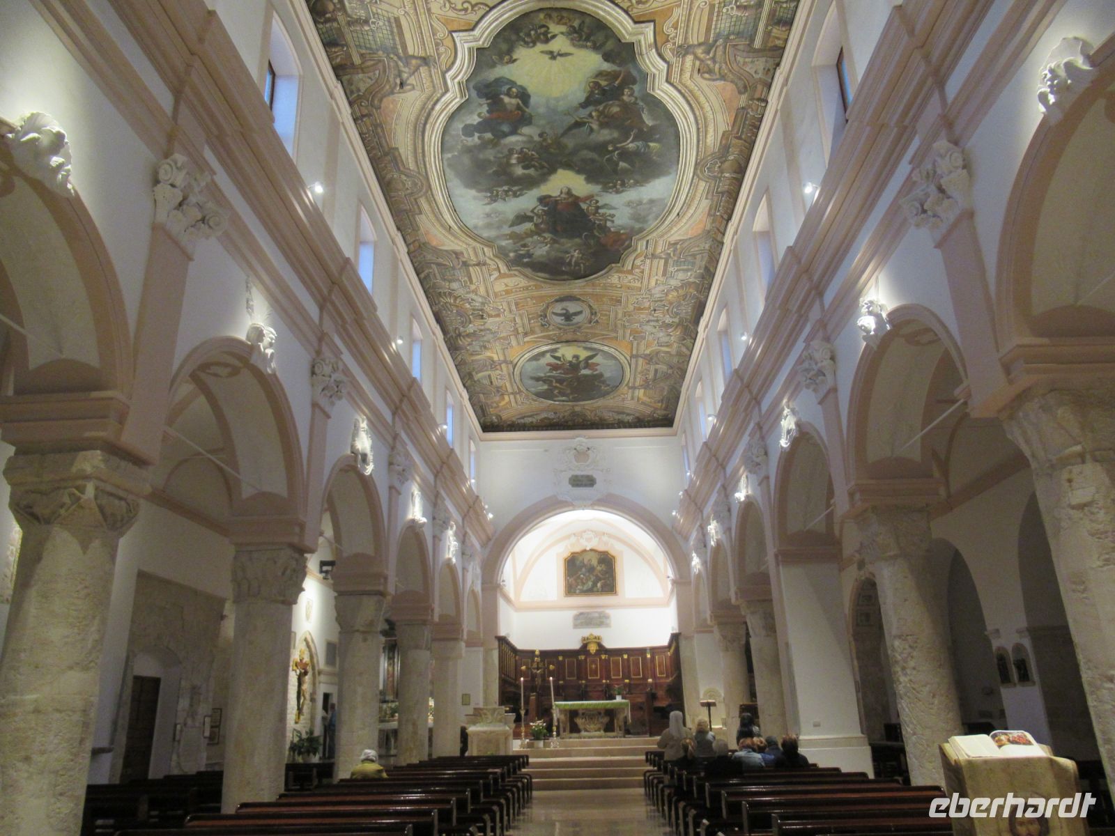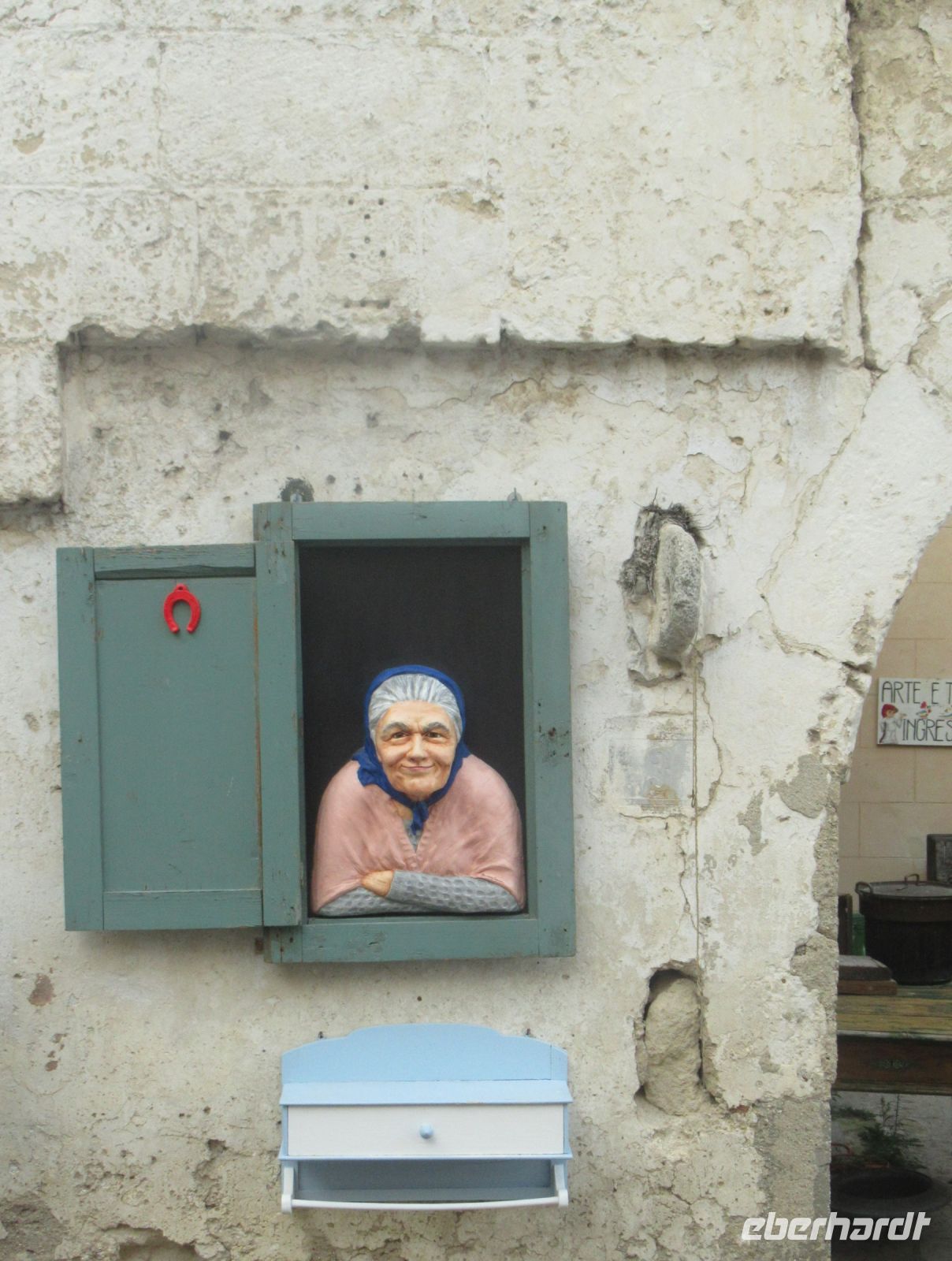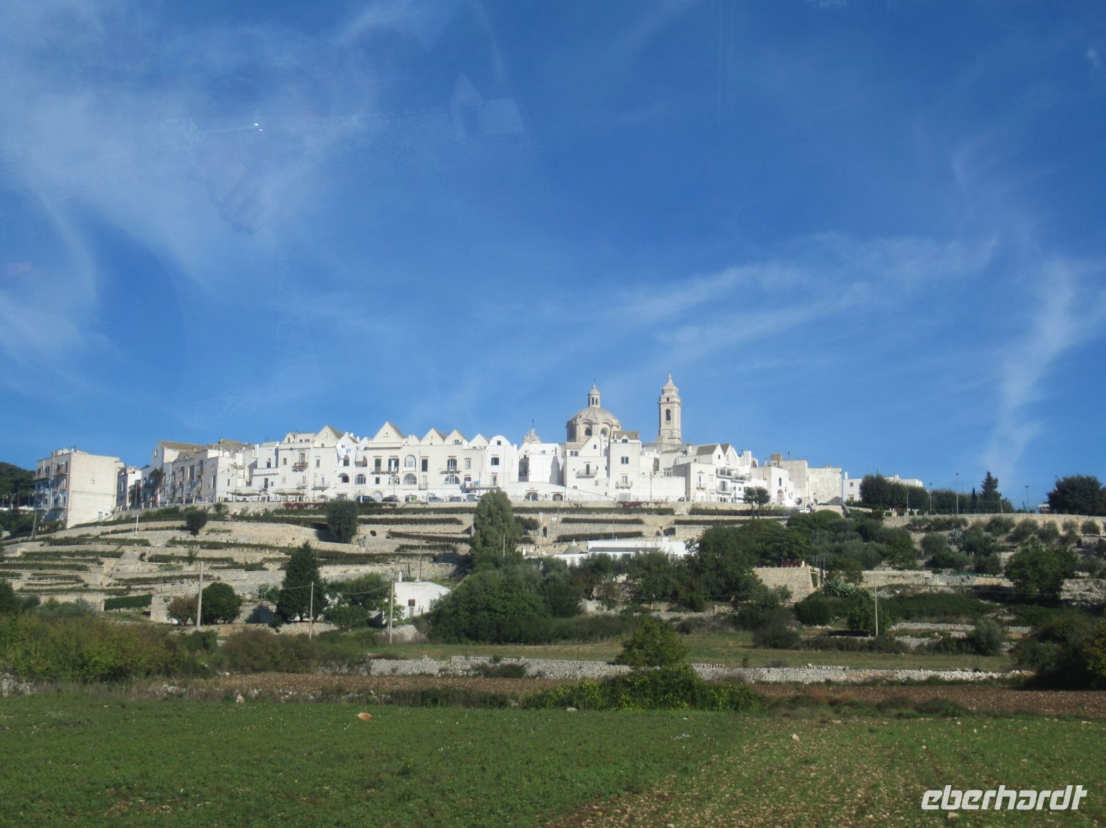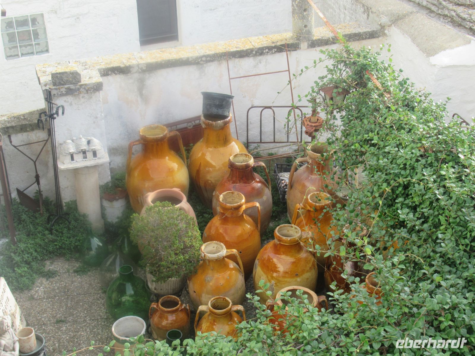 Alberobello – mit den bekannten Trulli-Häusern, seit 1996 von der UNESCO zum Weltkulturerbe erklärt. Hier erwartet uns ein pittoreskes Städtchen mit etwa 1.000 Trulli Häusern. Angeblich wurden die Trulli Häuser im 17. Jh., um Grundsteuer zu sparen, ohne Mörtel gebaut und als „Steinhaufen“ deklariert. Wir spazieren durch die Trulli-Straßen, können sogar ein Haus mit sehr freundlichen Frau von Innen sehen. Ein sehr gemütliches Häuschen mit Esstisch, Bett, Küchen-und Toilettenecke und eine Leiter in die „2te-Etage“ unters Trulli-Dach. Wir spazieren weiter bis zu der Wallfahrtskirche Sant'Antonio di Padova – eine in Trulli Bauweise errichtete Kirche. Anschließend erkundet jeder für sich dieses Trulli-Städtchen mit einem ganz besonderem Flair. Heute sind in den Trulli Häusern kleine Lädchen, Pensionen oder Restaurants eingerichtet.