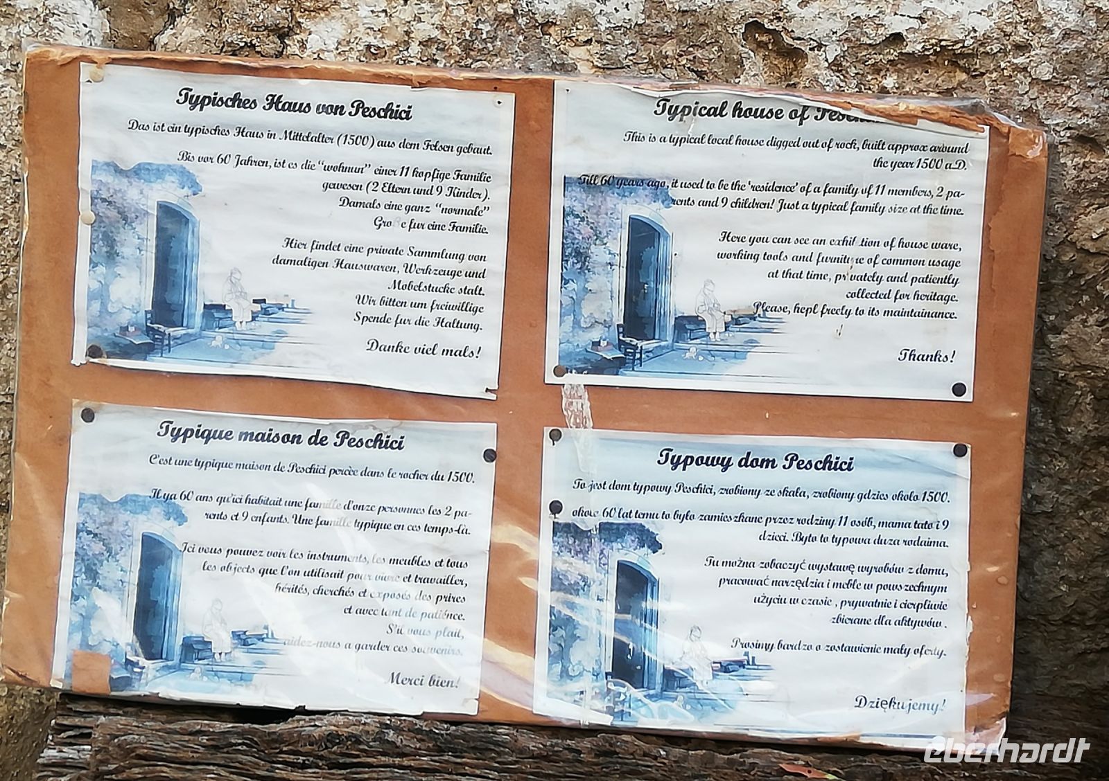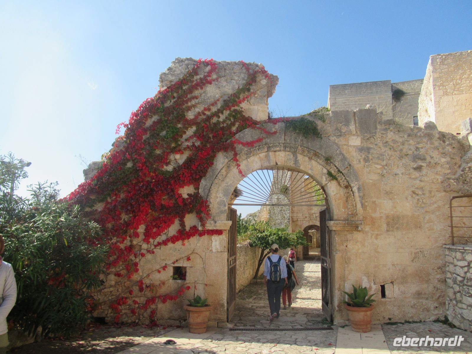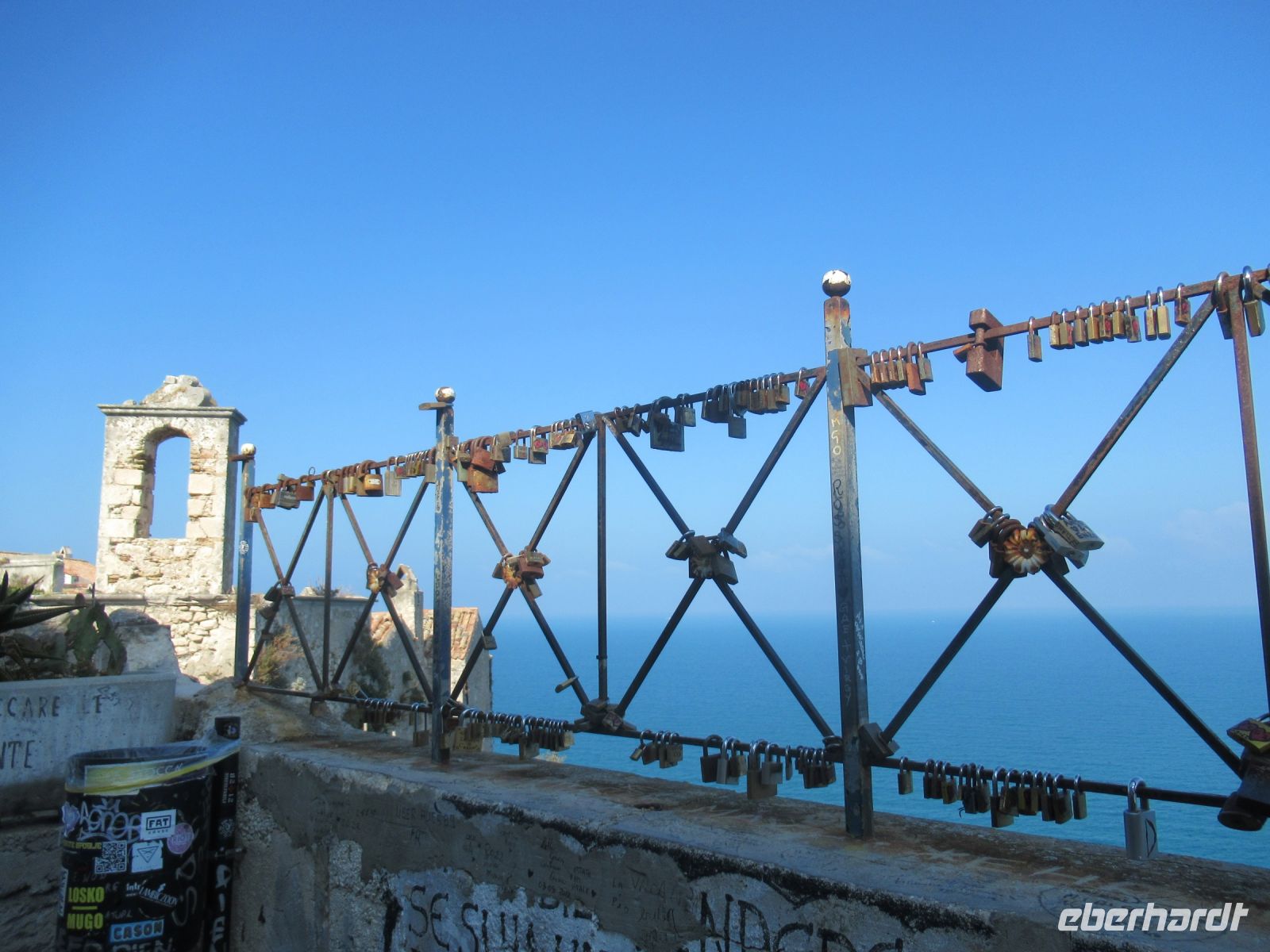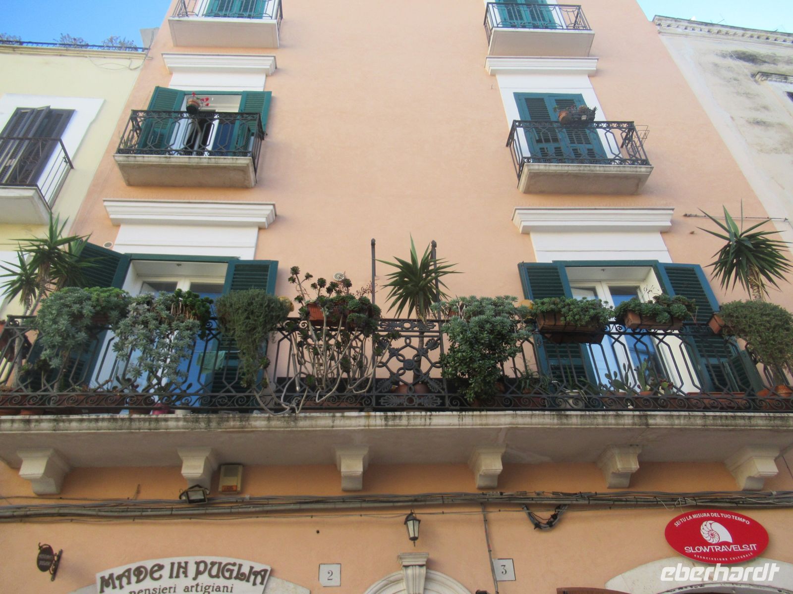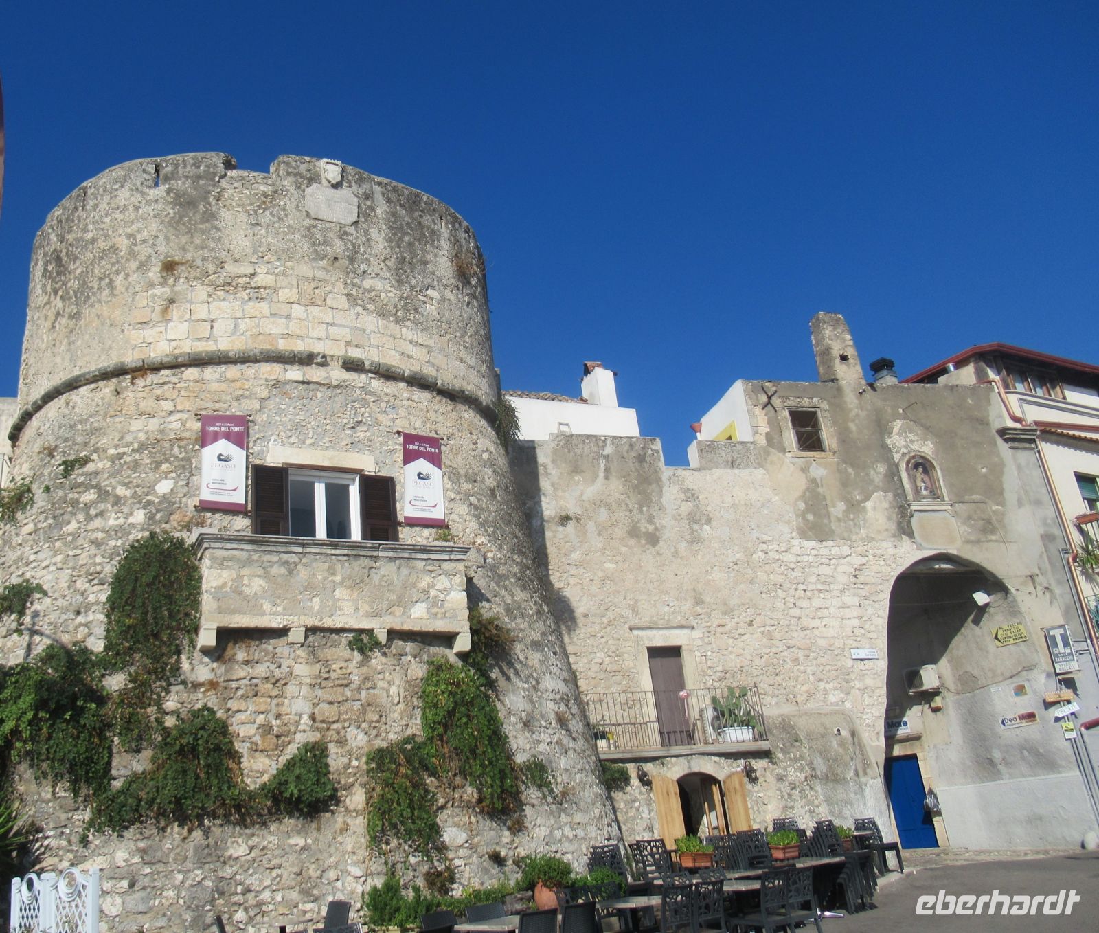 Zurück im Bus fuhren wir eine kurvenreiche Straße etwas nördlich nach Peschici. Hier am Castello Medioevale, machen wir eine kleine Kaffeepause und verkosteten das italienische Eis. Eine Altstadt mit uralten Häuser, verwinkelte Gassen und einem wunderschöner Blick aufs Meer. Wir schlendernden an Steinhäuser vorbei, die eher einer Mauer ähneln. Pflanzen, Blumentöpfe verzierte die sonst die Karge Steinwand. Danach gibt es noch eine Mittagspause mit italienischen Spezialitäten, oder manche Gäste erkunden Peschici noch selbst.
