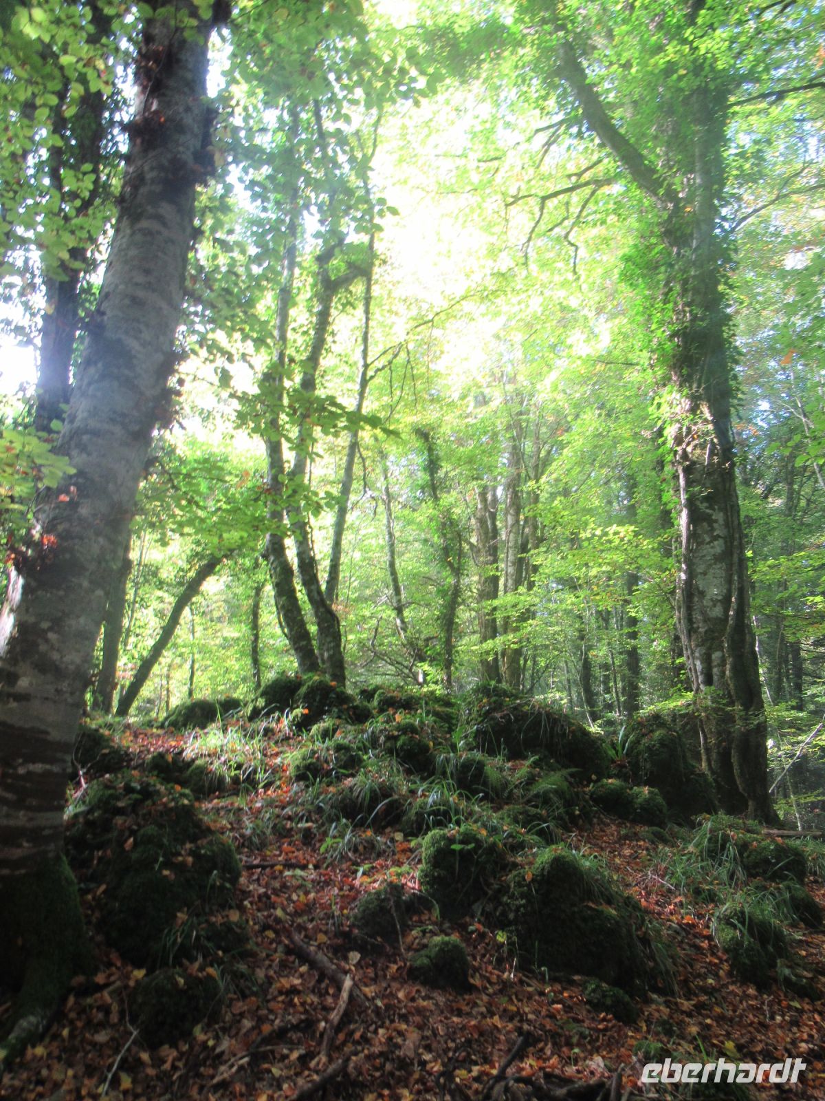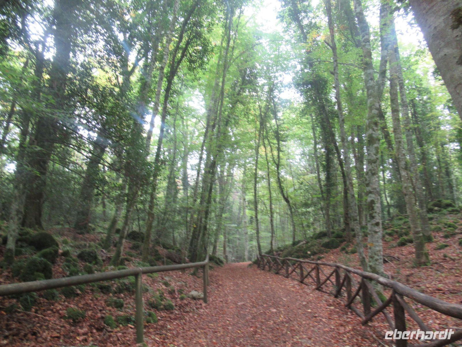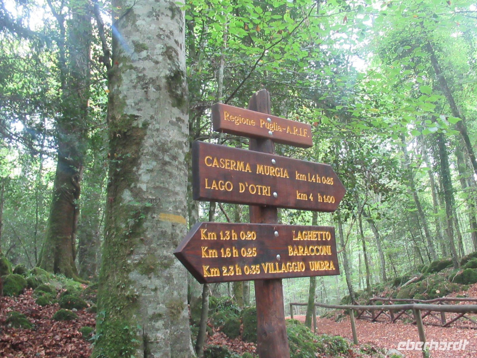 Foresta Umbra (auf italienisch dunkler, schattiger Wald) erstreckt sich auf einer Fläche von 12.000 Hektar und wird auch als „Der Wald des Südens und Bäume des Norden“ genannt. Eine vielfältige Flora, gewaltige Bäume –Buchen, Kiefern, Eichen, Linden, Kastanien, reiche Pflanzenwelt, vor allem besondere Orchideenarten sowie vielfältige Tierwelt. So Besonders, dass dieses Naturparadies in 2017 zu UNESCO Naturwelterbe erklärt wurde. Wir starteten unseren Waldspaziergang auf einer Höhe von 800 m. Gleich am Anfang hatten wir zwei (nicht bestellte) örtliche „Begleiter“ – zwei Hunde, die uns letztendlich die ganze Runde treu blieben. Ein bequemer Weg mit sehr schön angelegten breiten Waldweg und der Blick nach oben zeigt schon… wie alt sind wohl diese Bäume? Ein kleiner Natursee, die vermoosten großen Baumknollen, kleine Orchideen, die sich teils im Laub versteckten säumten den bequemen Waldweg. Eine himmlische Ruhe, ein Rest des großen Urwaldes, die Apulien einst vollständig bedeckt haben. Unser Rundgang endete an der gleichen Stelle.