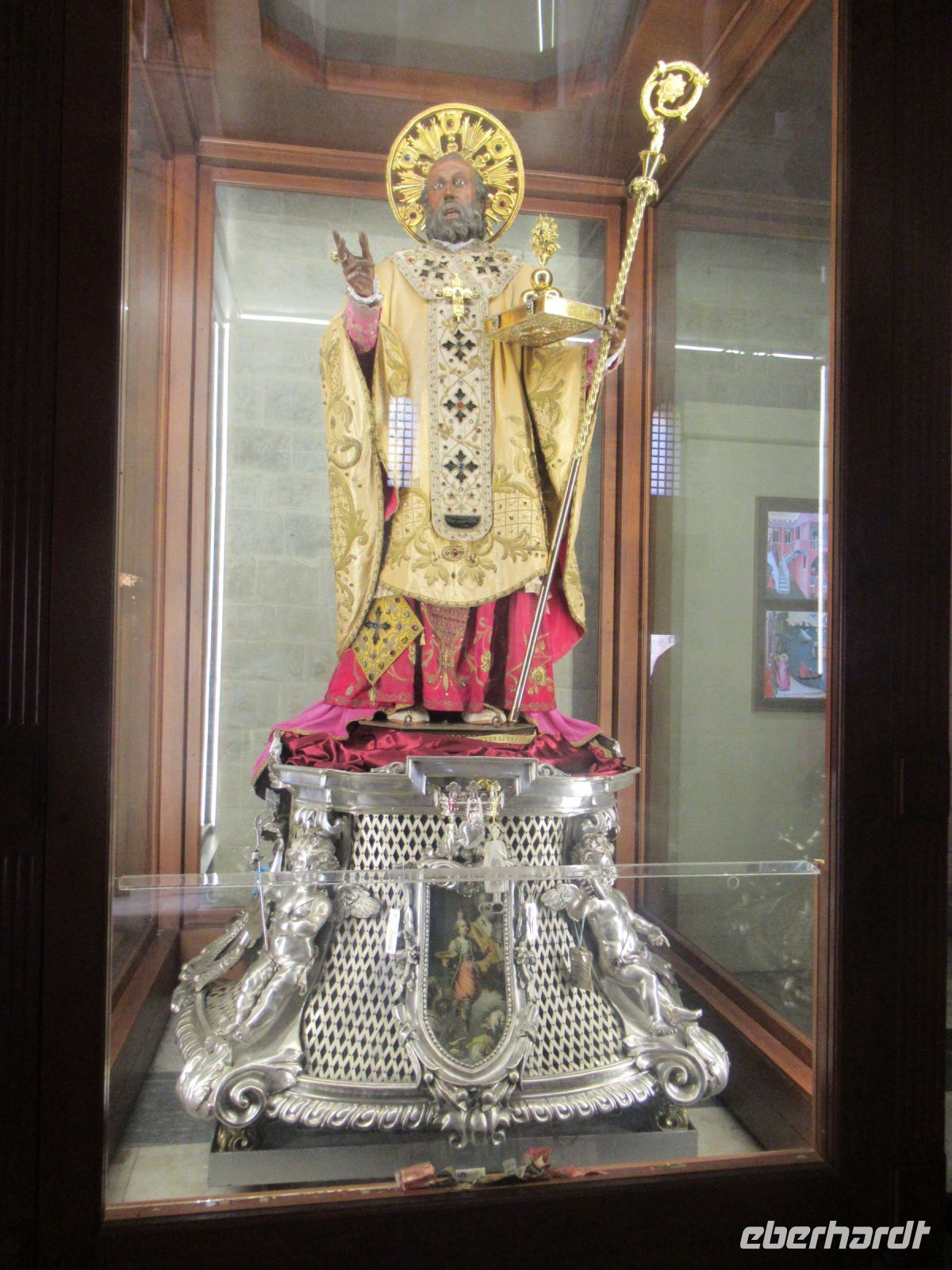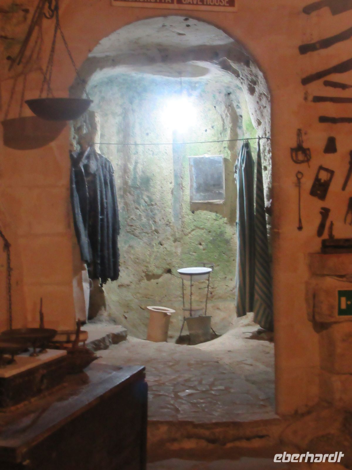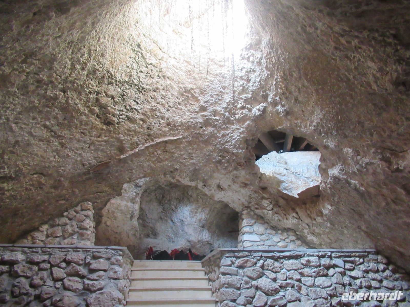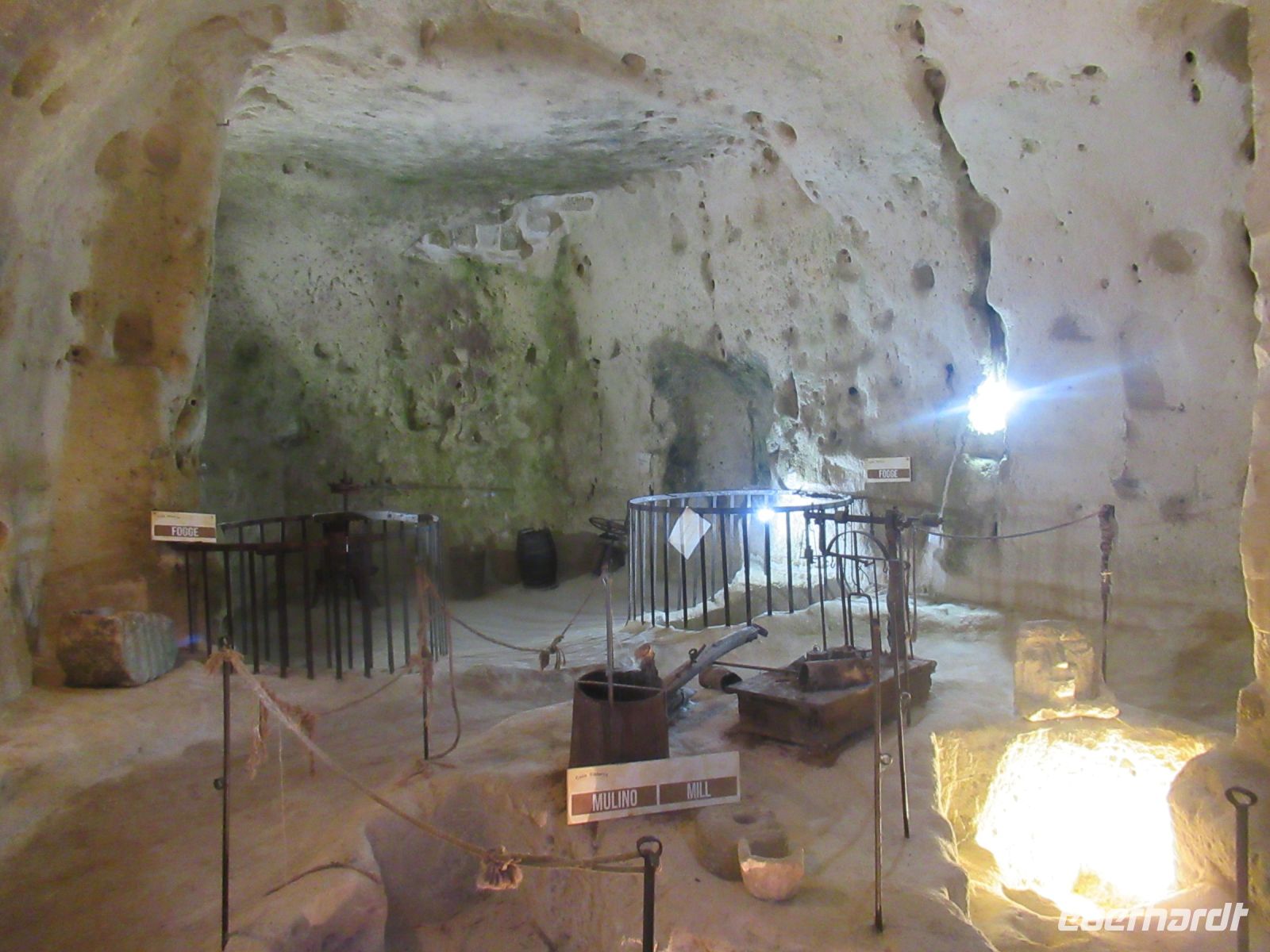In den Felsen der Schlucht legten die Einwohner Wohnhöhlen an. Anfangs nutzten die Sassi die natürlichen Höhlen als Unterkunft, später wurden sie in den Sandstein gehauen. So entstand im Laufe der Jahrtausende eine Höhlenstadt in dem Felsen, die noch bis in die 1950er-Jahre benutzt wurden. Die Höhlenwohnungen galten als nationale Schande und wurden 1954 geräumt. Hier lebten zu jener Zeit ca. 20.000 Menschen. Sie wurden in die neu errichteten Stadtteile von Matera umgesiedelt. Erst Mitte der 1980er-Jahre erkannte man den kulturhistorischen Wert der Höhlen-Altstädte, einige der Höhlen-Häuser wurden saniert und als Museen, Hotels oder Lädchen umgestaltet. 1993 wurden sie zur Unesco Weltkulturerbe ernannt. Wir sehen uns eine Höhlenwohnung, die als Museum dient, an und gleich daneben die Höhlenkirche. Katrin erklärte uns auch das ausgeklügelte Bewässerungssystem und Sammeln des Wassers von den Dächern und Straßen in Zisternen und Becken, so dass die Sassi auch in trockenen Perioden ausreichend mit Wasser versorgt waren. In 2019 war Matera Europäische Kulturhauptstadt und sie hat für so einige berühmte Filme als Kulisse gedient. Mit vielen Eindrücken spazieren wir dann wieder Richtung Neustadt und haben noch anschließend etwas Zeit Matera selbst zu erkunden. Auf der Rückfahrt bedanke ich mich im Namen der Gäste beim unserer Reiseleiterin Katrin und Fahrer Luigi für die sehr interessante Reise und wir alle nehmen noch Abschied von der wunderschönen Region Apulien.