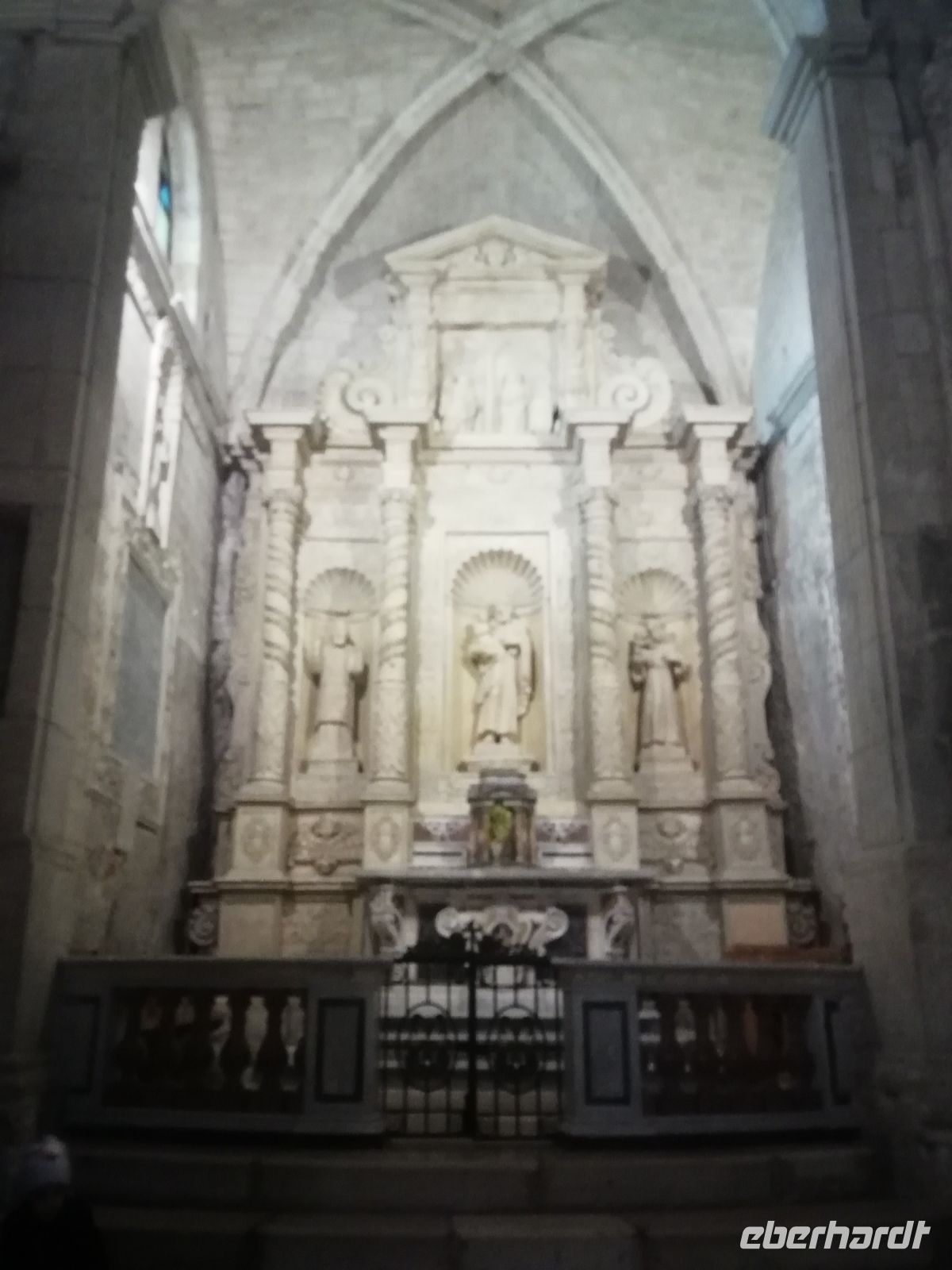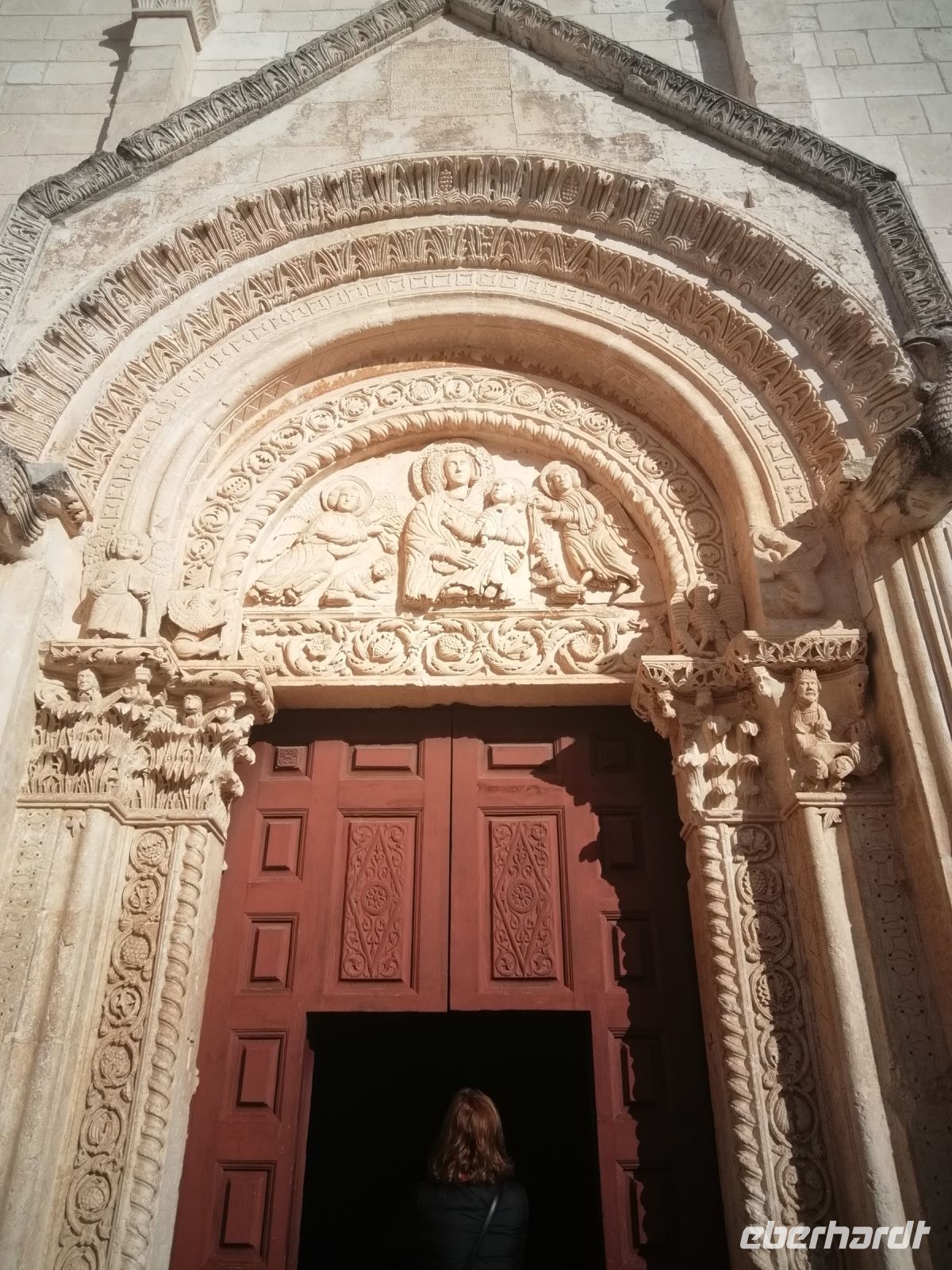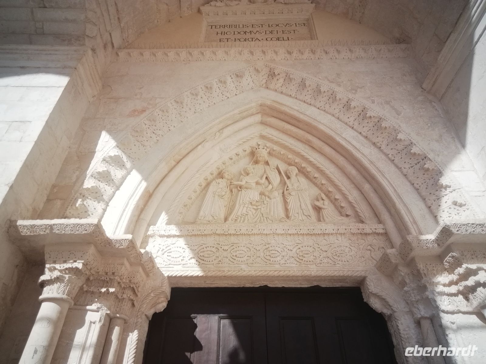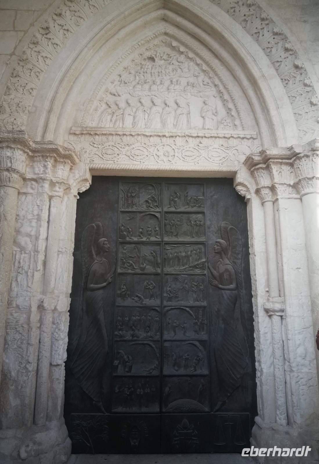 Kirche „San Giovanni in Tumba“ mit teils erhaltenen Fresken und sehr interessanten teils quadratischen, teils achteckigen Turm mit einer hohen Kuppel. Dann noch ein Porträt-Fotostopp mit Engelflügel und dann konnte jeder Monte San Angelo selbst erkunden, örtliche Spezialitäten-Liköre probieren oder in den Souvenirlädchen stöbern. Eine kleine Überraschung am Treffpunkt vor der Abfahrt von unserer Münchnerin, die mal in Italien tätig war und die Spezialitäten wohl kennt: kleine Schokoladentörtchen, die sie an die ganze Gruppe verteilt hat. Vielen Dank! - sehr köstlich.