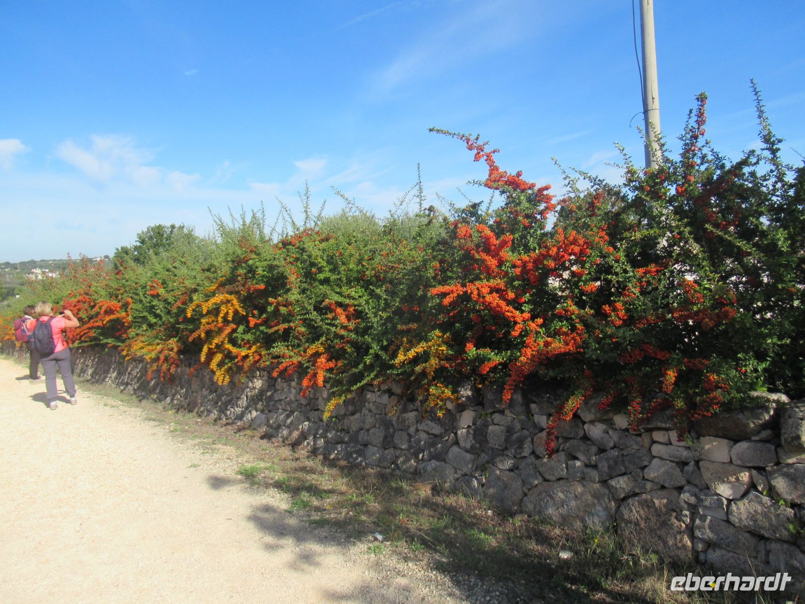 Apulien – die Südspitze Italiens am „Absatzes“ des italienischen „Stiefel“ : wunderbare Landschaften mit türkis-grünem Meer, weißen Felsenküsten, vielfältiger Pflanzenwelt und Blütenpracht. Im Oktober