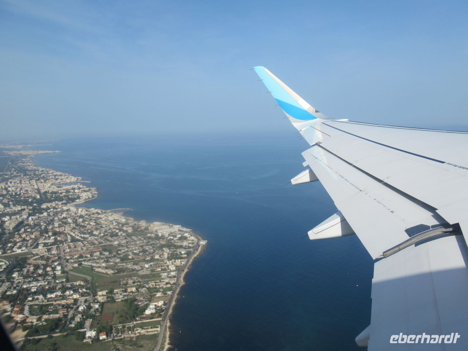 Da wir schon um 7:00 zum Flughafen müssen, wurde das Frühstück für 6:00 Uhr vereinbart. Allerdings mussten wir um die Uhrzeit etwas warten bis das Frühstück für uns da war. Alle haben es dennoch geschafft pünktlich mit gepackten Koffer am Bus zu sein. Hier erwartete uns auch Katrin, die sich von der Gruppe verabschiedete und Luigi fuhr uns zum Flughafen Bari. Der Flug war pünktlich und wir konnten noch aus der Höhe einige Küstenabschnitte erkennen.