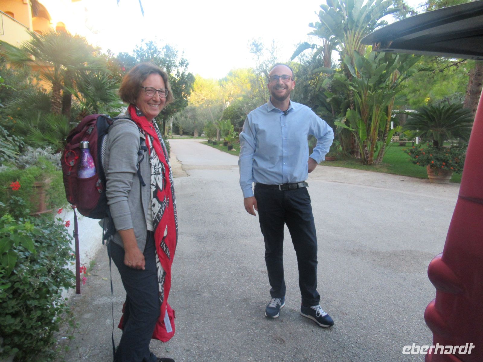 Heute morgen haben wir ein Geburtstagskind zu feiern. Und ich gratuliere im Namen von Eberhardt-Travel und persönlich unserer Diana zu Ihrem Geburtstag mit einem kleinen Geschenk. Nach dem Frühstück singen wir alle im Bus „Happy Birthday…“ und auf Italienisch „Tanti auguri a te..“ So hat der Tag schon fröhlich begonnen.