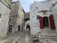 Wie folgen der historischen Spur des Mönch Johannes nach Monte Sant´Angelo. Dieser Ort war schon früh ein heiliges Ziel für Pilger aus der ganzen Welt. Erst später im 11.Jahrhundert erscheint Sant Angelo als Stadt, die wohl im Zuge der Pilgerströme hier entstanden ist. Sehr starke Verehrung erfährt hier der Erzengel St. Michael, Verteidiger des Glaubens gegen das Böse, der von der umliegenden Bevölkerung schon seit Jahrhunderten hier verehrt wurde. Schaut man genau hin, entdeckt man in vielen Fresken und Skulpturen den mit Flügeln ausgestatteten Erzengel.
