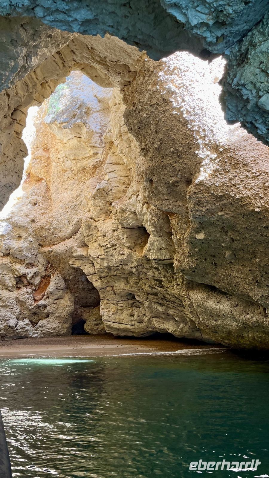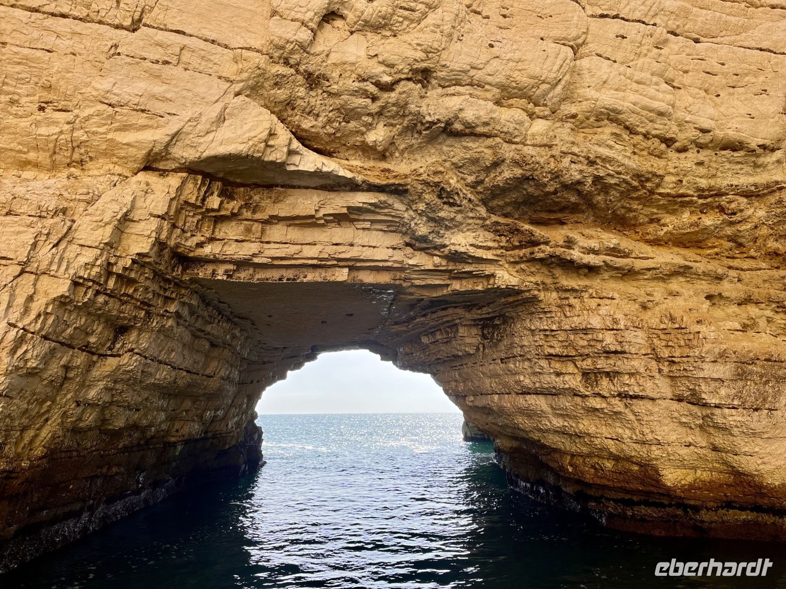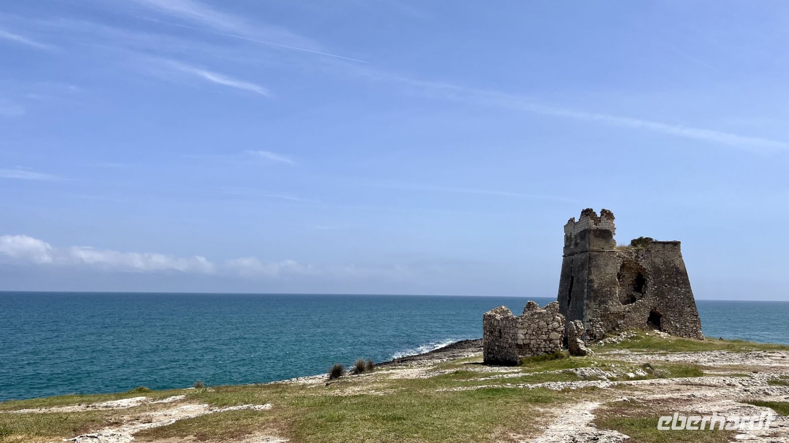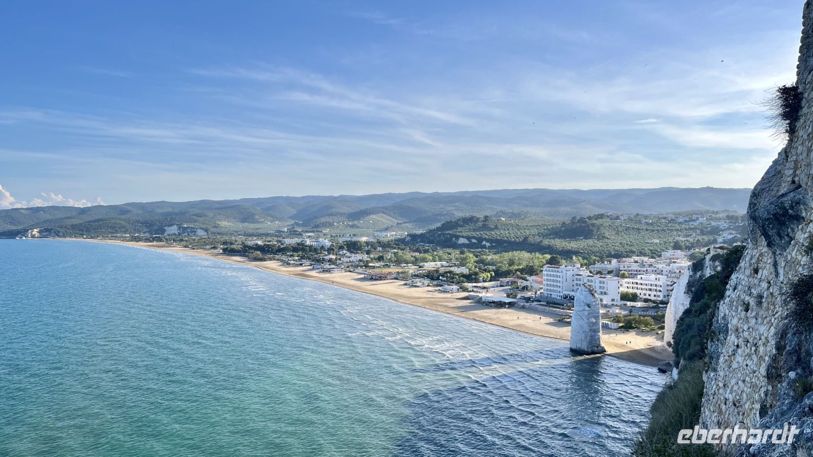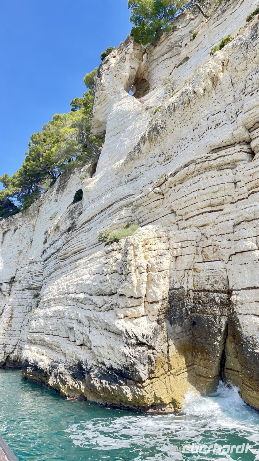 Diesmal begannen wir unseren Tag mit einem Bootsausflug an der Küste vor der Stadt Vieste. Das Schaukeln der Wellen und eine angenehme Meeresbrise begleitete die Morgensonne. Die meisterhaft gezeichnete Küstenlinie erstreckte sich vor unseren Augen und bildete eine spektakuläre Landschaft. Was für eine Freude und was für ein Glück war es, mit unserer Wandergruppe hier zu sein. Die Aussicht auf Felsbögen wie den „Arco di San Felipe“, Grotten und versteckte Strände wie die ‚Spiaggia di Sfinale‘ gehörte uns allein. Es war eine Freude, sie zu sehen, eine Euphorie der simplen Schönheit.