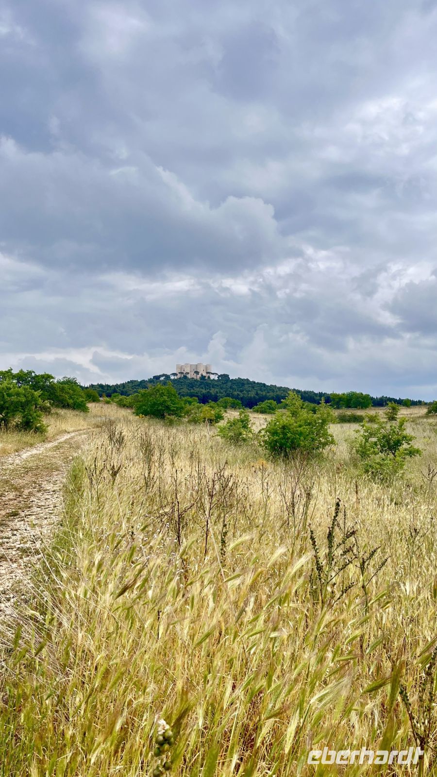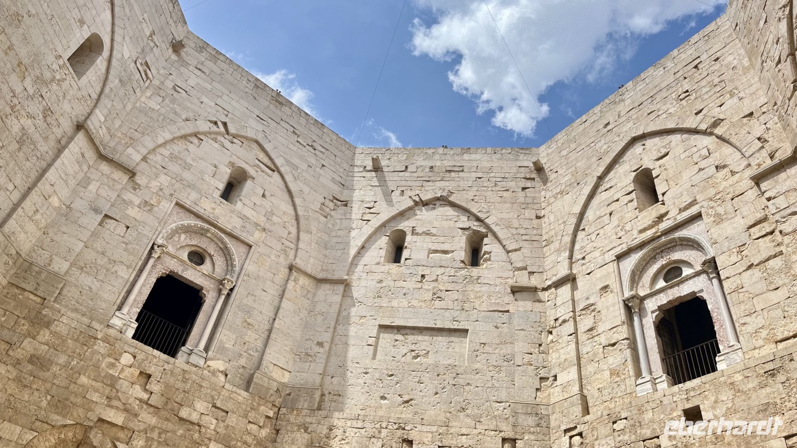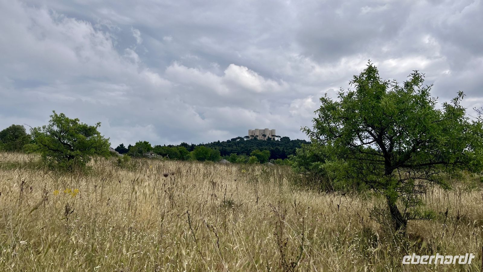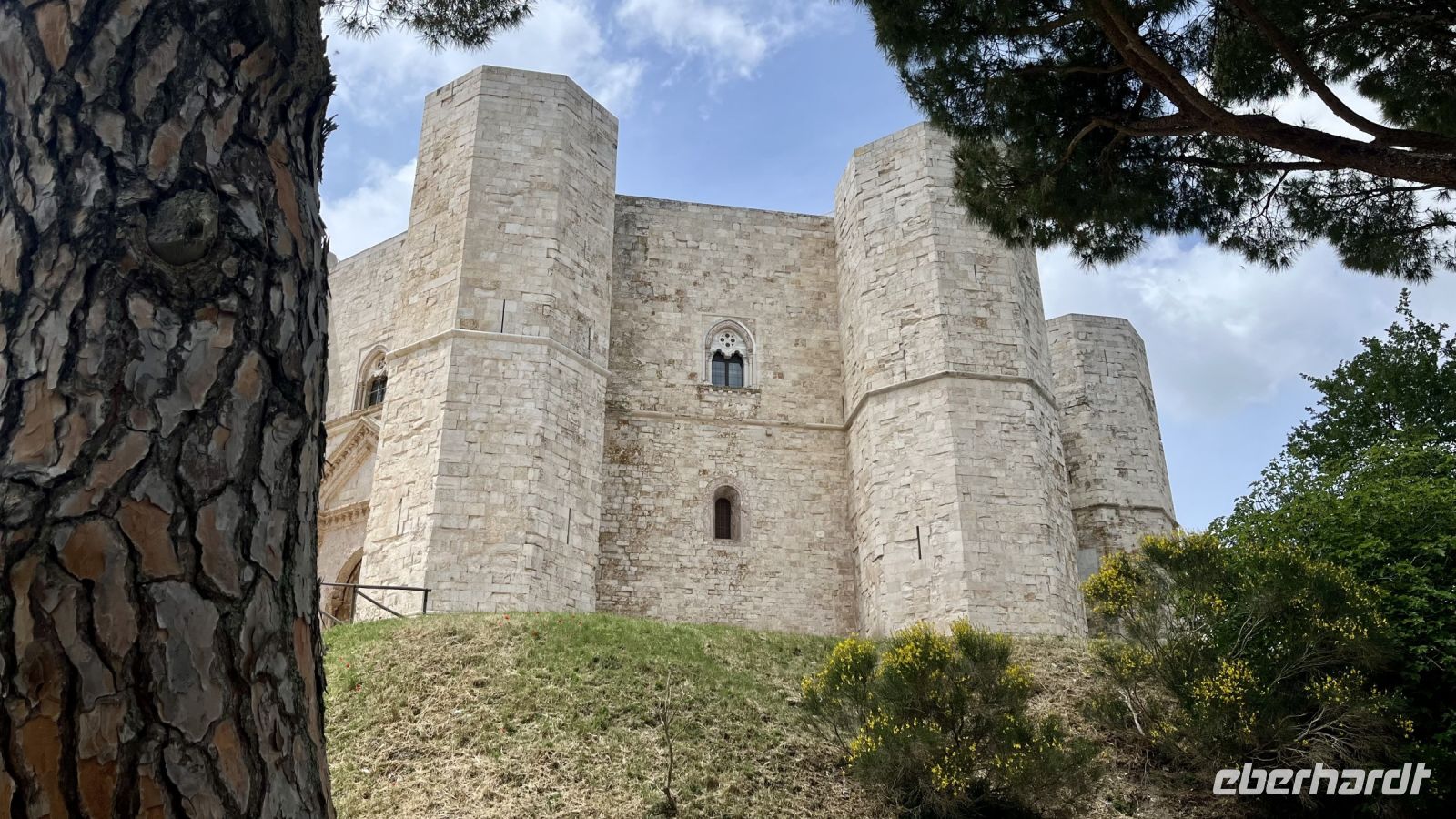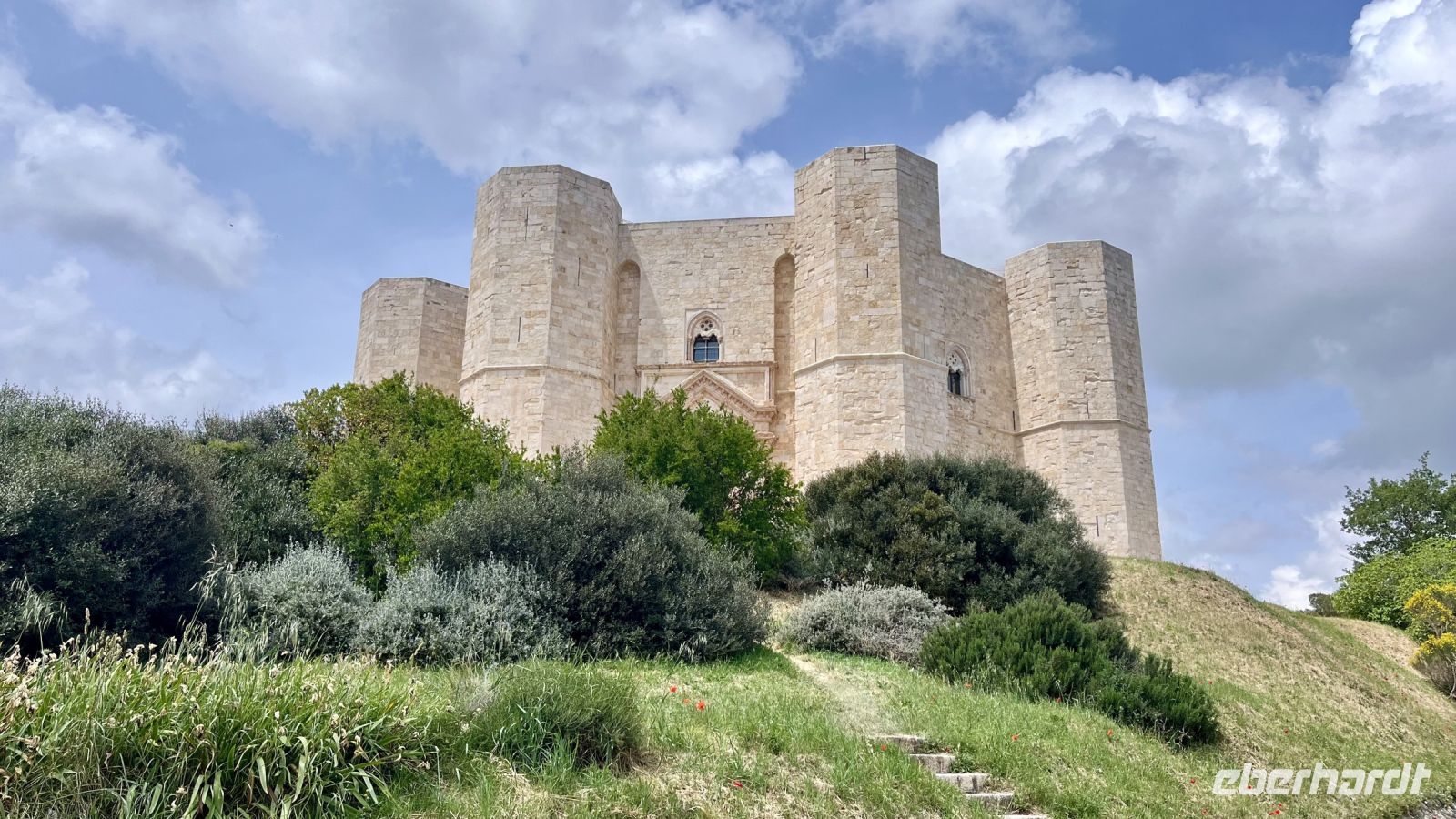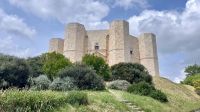 Und dann, ganz unerwartet, tauchte in der Ferne auf einem Hügel die Krone Apuliens auf, das „Castelo del Monte“. Eine imposante, achteckige Architektur, die noch Geheimnisse birgt und die Menschen immer wieder zu fantastischen Gedanken beflügelte. Die historisch sachlichen Deutungen reichen von einem Jagdschloss bis hin zu einem Gebäude zur Aufbewahrung des Staatsschatzes. Als Erinnerung könnte man sich eine italienischen 1-Cent-Münze, auf der das Castelo del Monte auf der Rückseite der abgebildet ist.