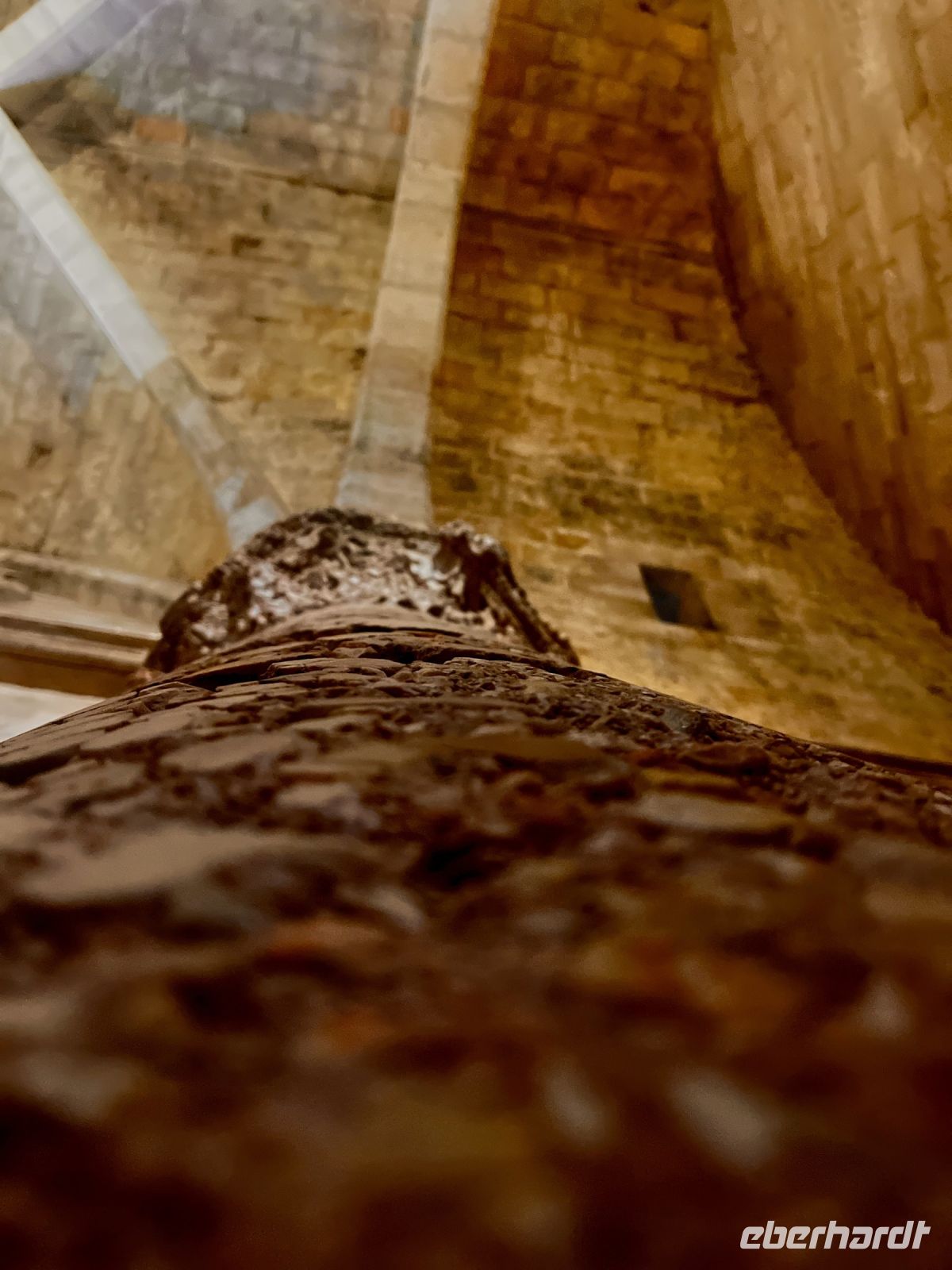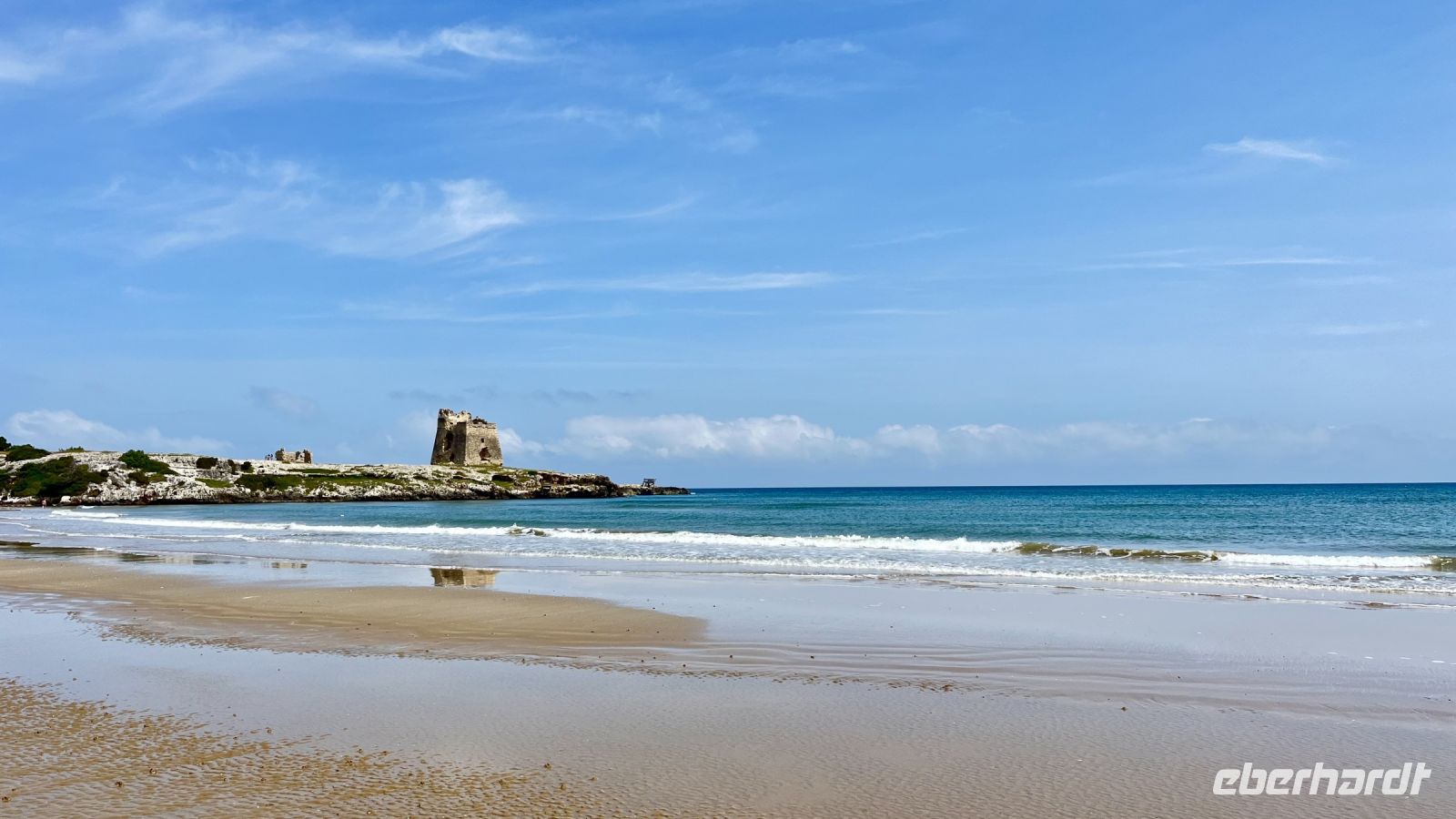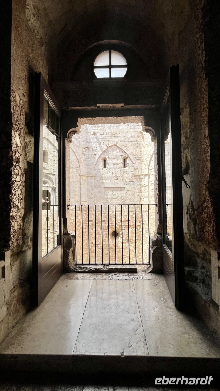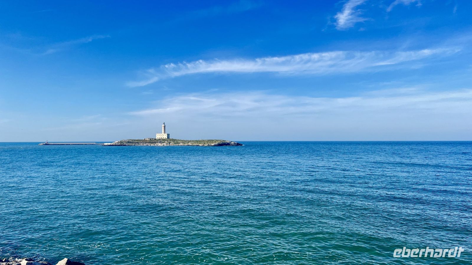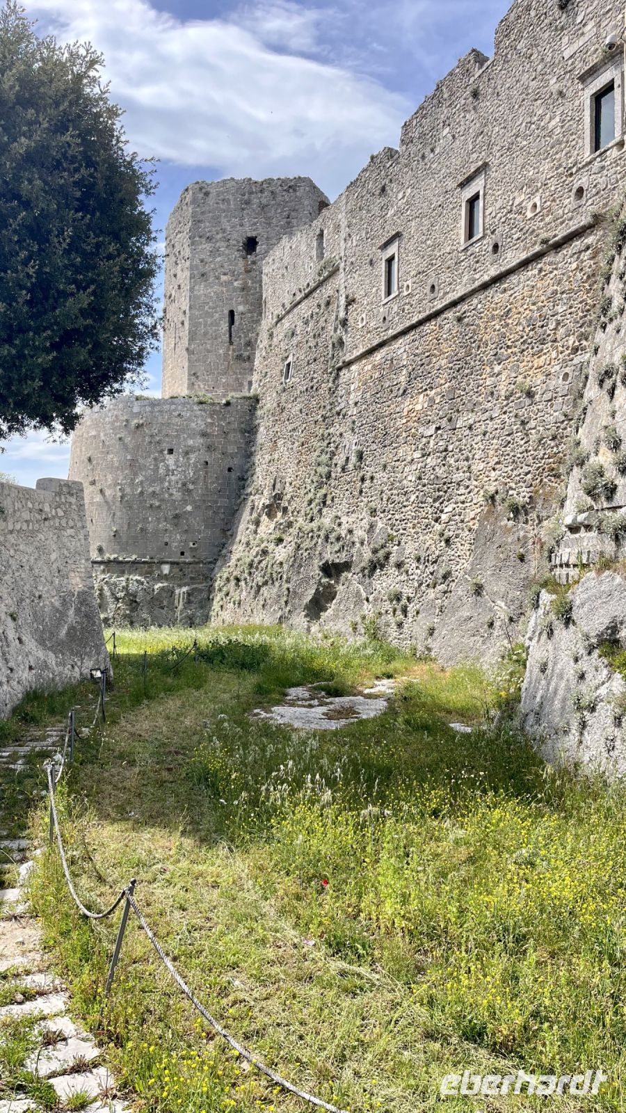 Und dann, ganz unerwartet, tauchte in der Ferne auf einem Hügel die Krone Apuliens auf, das „Castelo del Monte“. Eine imposante, achteckige Architektur, die noch Geheimnisse birgt und die Menschen immer wieder zu fantastischen Gedanken beflügelte. Die historisch sachlichen Deutungen reichen von einem Jagdschloss bis hin zu einem Gebäude zur Aufbewahrung des Staatsschatzes. Als Erinnerung könnte man sich eine italienischen 1-Cent-Münze, auf der das Castelo del Monte auf der Rückseite der abgebildet ist.