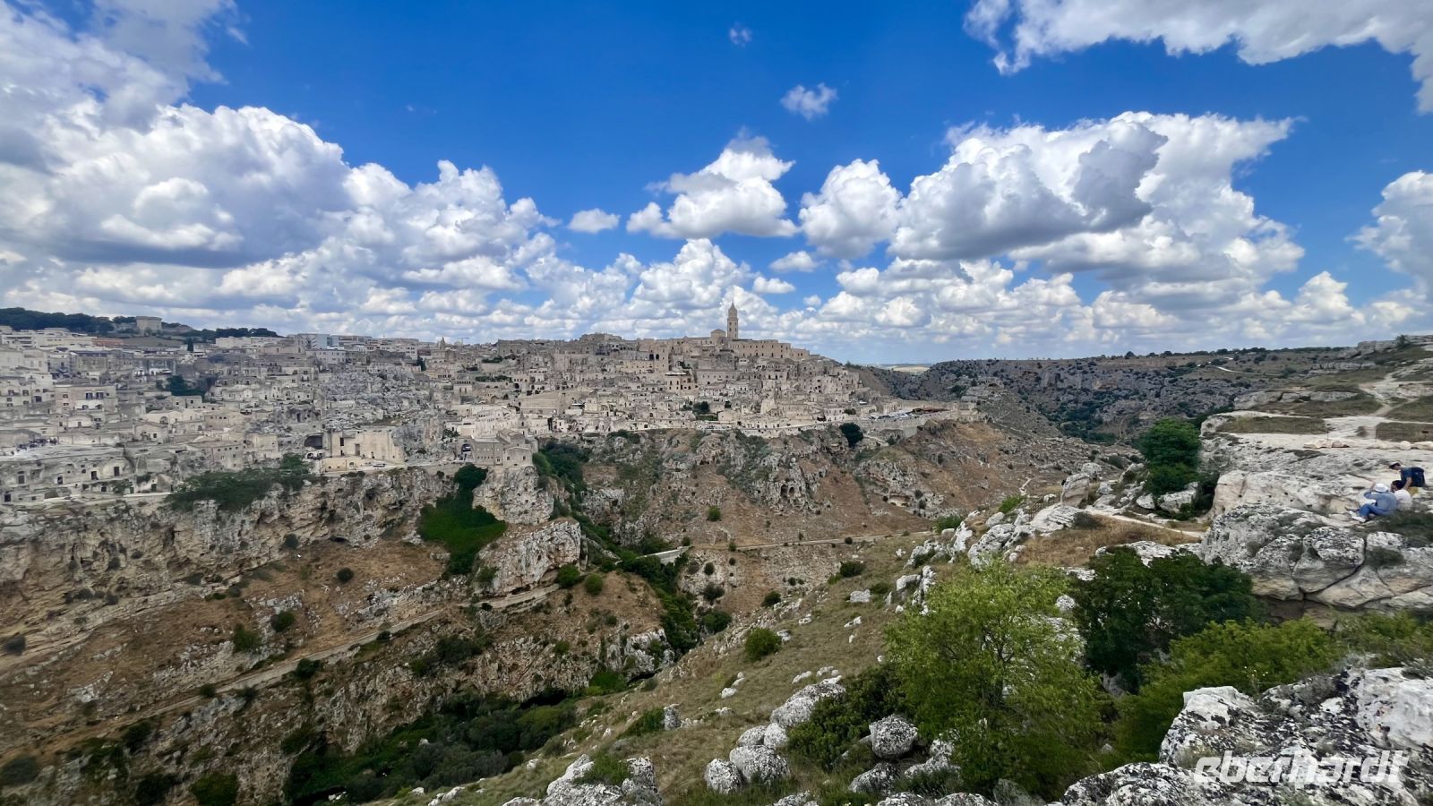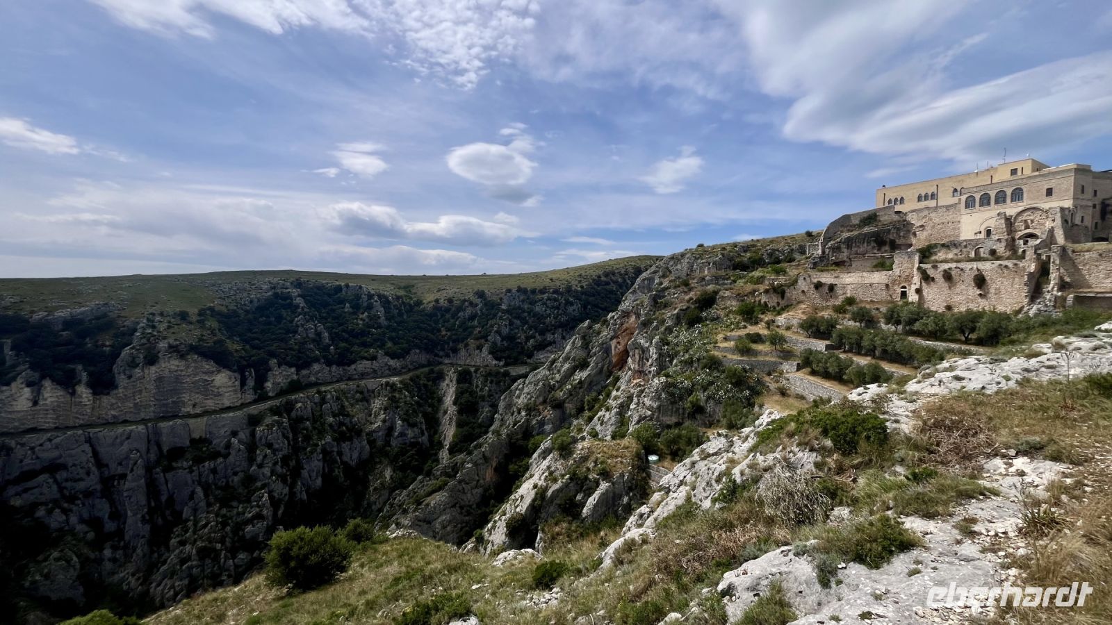 Heute war ein erinnerungswürdiger Tag, denn heute begannen die Erkundungsfahrten für die 62. Auto-Rallye des italienischen „Selva Fasano Cup“. Nachdem wir ein paar Hindernisse auf den Straßen und Umwege überwunden hatten, waren wir wieder auf dem richtigen Weg in die naturbelassenste Region Italiens, in die Basilikata. Unser Abenteuer brachte uns Kurve um Kurve näher zu den Hängen oder besser gesagt Abhängen des tiefen Tals der Gravina di Matera.