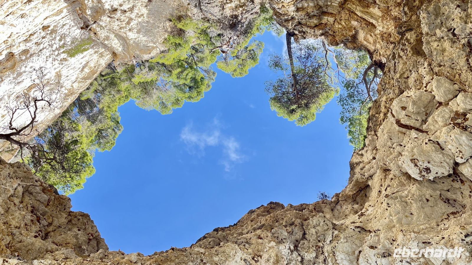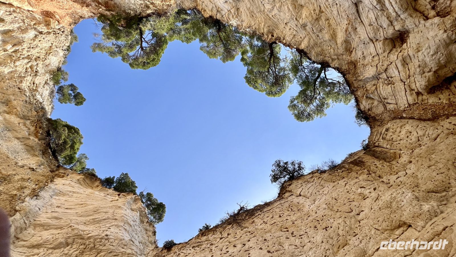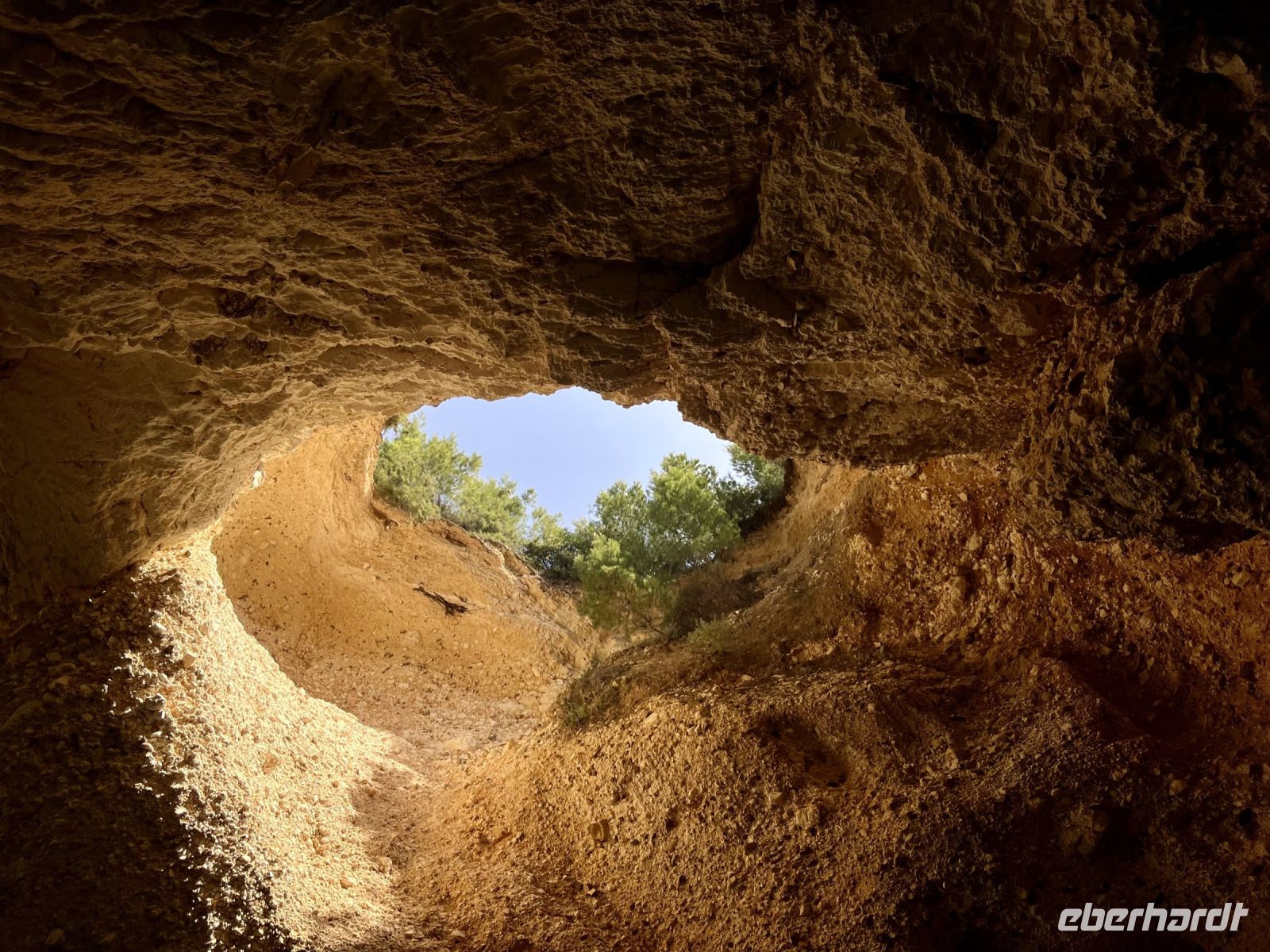 Vom Wald gelangten wir schließlich zur Straße und damit in die Höhe, wo ein stetes Erscheinen und Verschwinden von Höhlen uns mit dem Meer in der Ferne nach San Angelo führten.