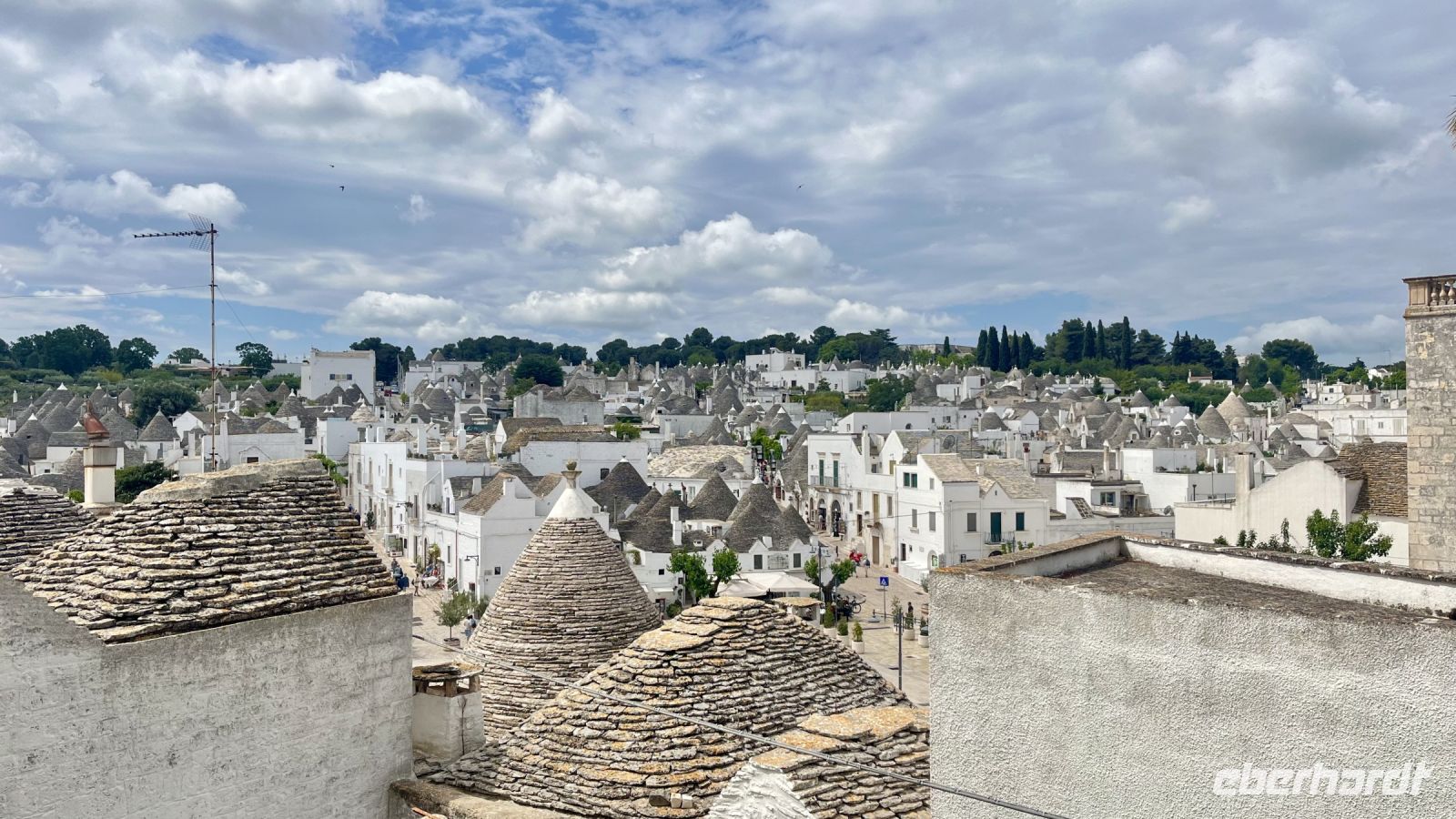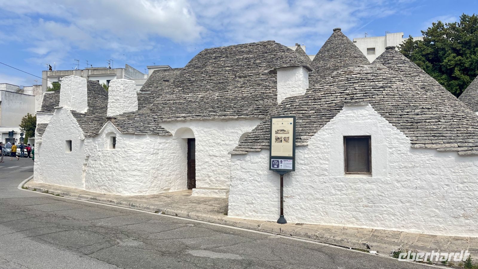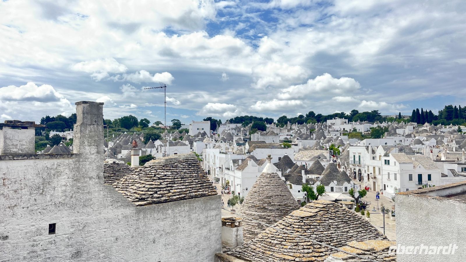 Aufzustehen und Italien zu entdecken, gehörte nun bereits zu unserem Alltag. Heute stand uns ein ganz besonderer Tag bevor. Wir wollten die Straßen von Alberobello mit seinen interessanten Trullis entdecken. Die Trulli sind vor allem in Apulien vorkommenden Rundhäuser, deren Steindächer sich nach oben hin in einem sogenannten Kraggewölbe verjüngen. Diese früheren ‚Arme-Leute-Häuser‘ weckten nicht nur unsere Neugierde, sondern luden ein, in die Straßen und die Kultur einzutauchen.