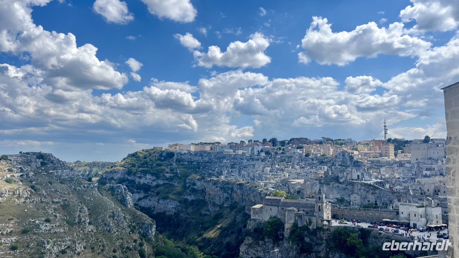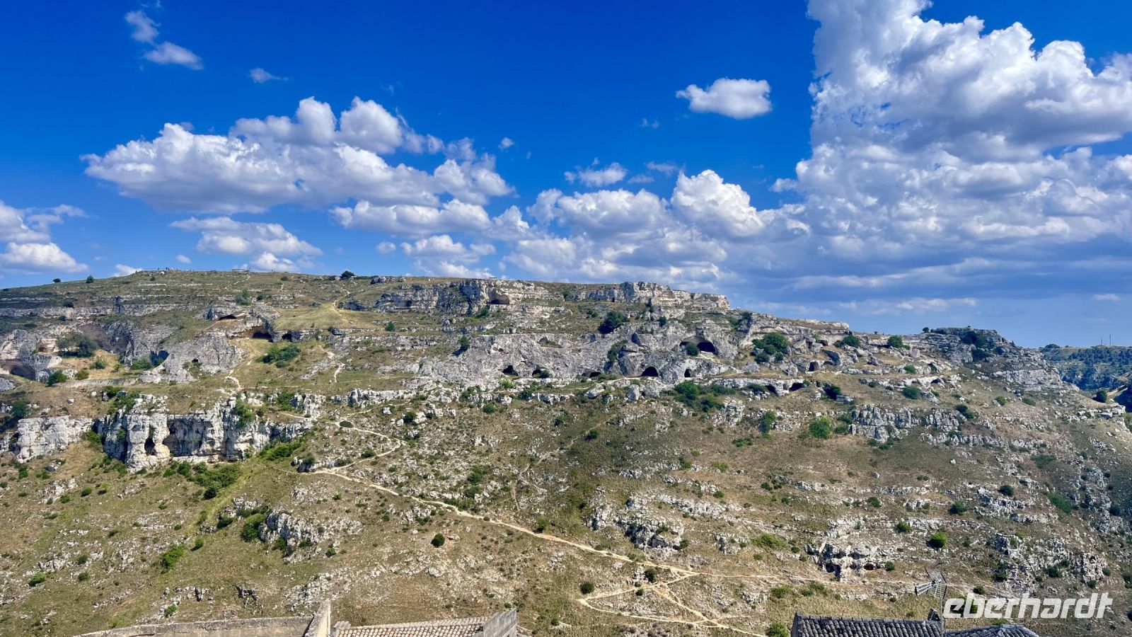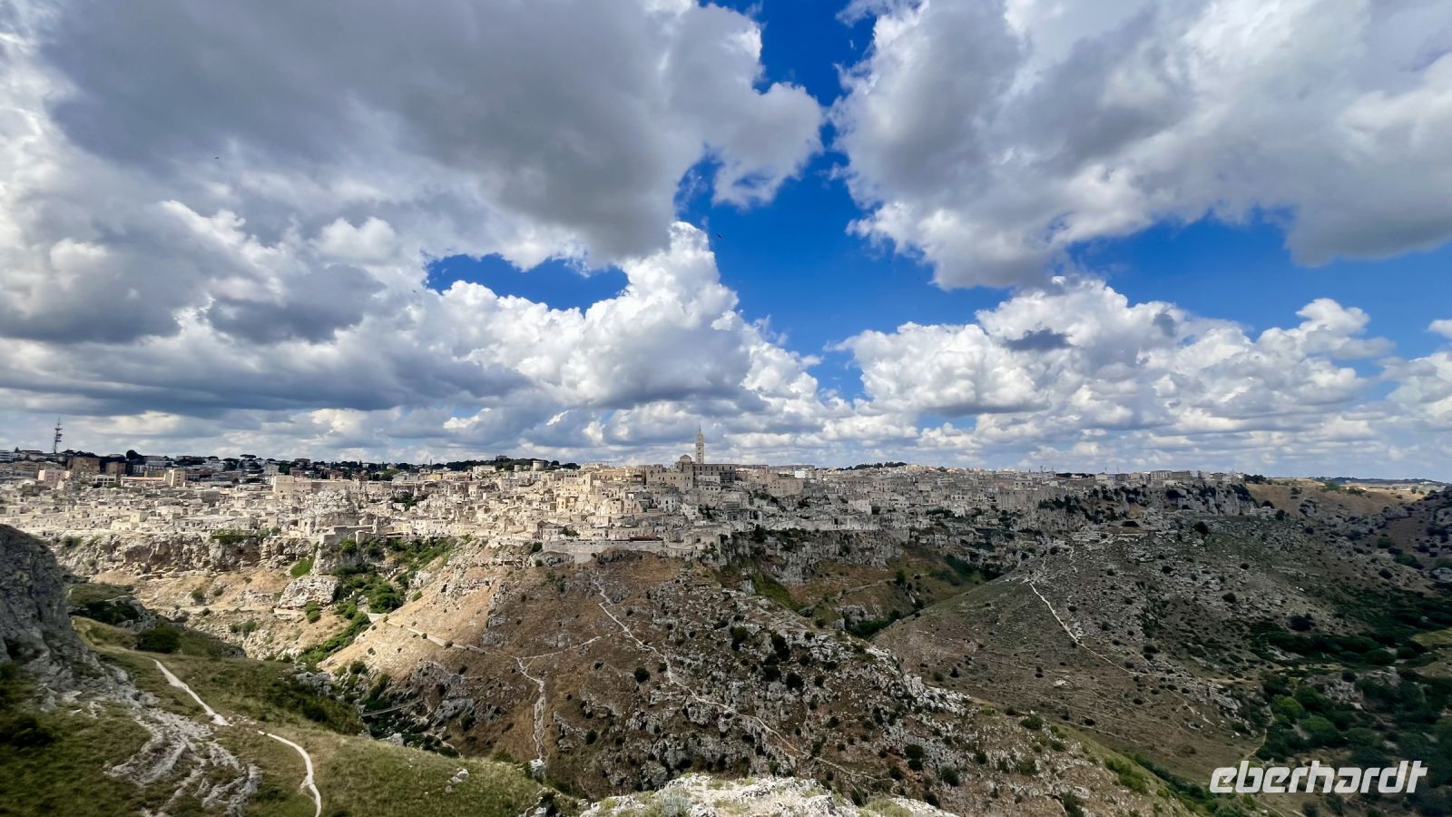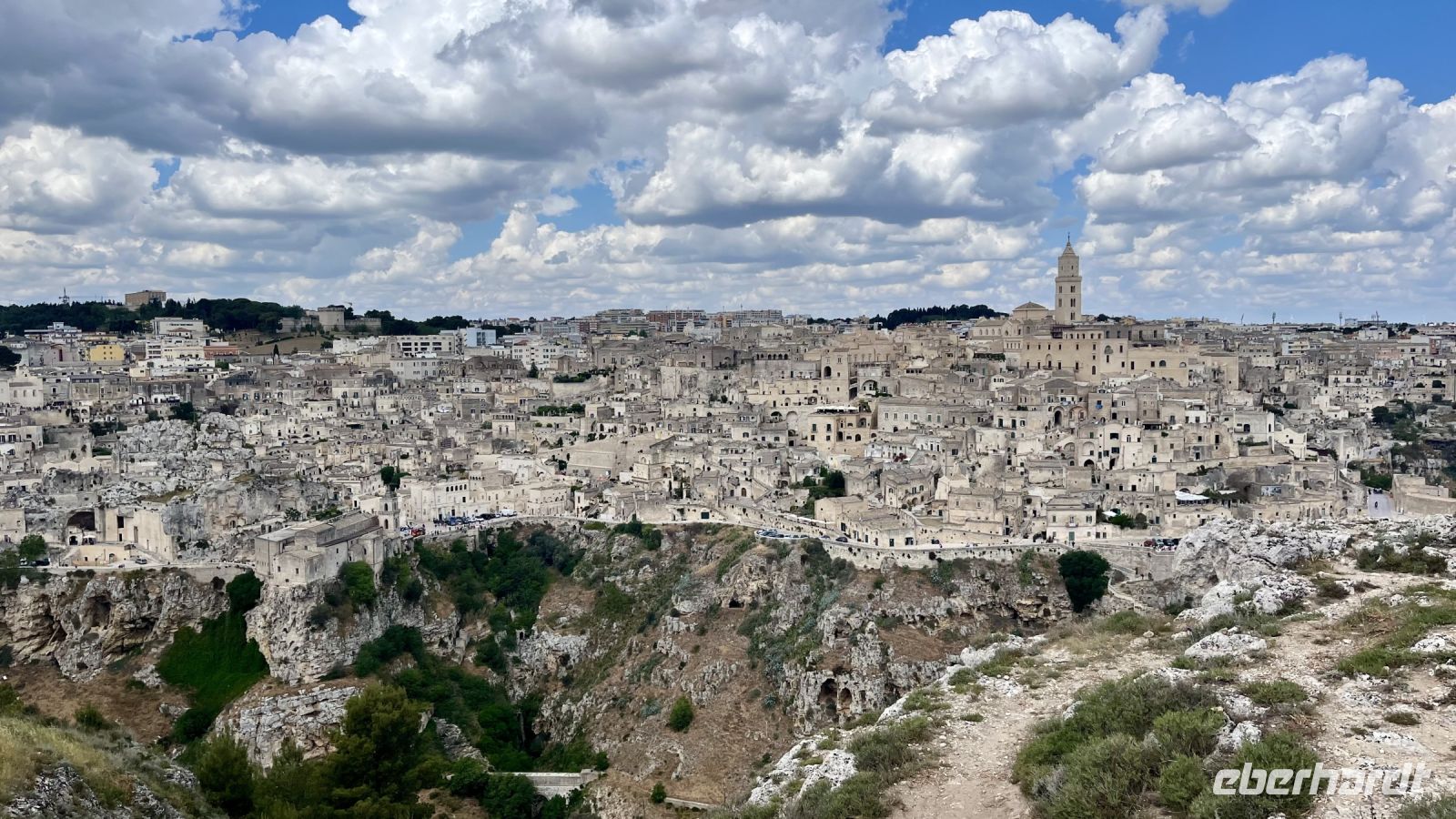 Faszinierend und rätselhaft mit Schluchten und Höhlen umgeben, befinden sich hier in den Kalkstein gehauene Häuser der altehrwürdigen Stadt Matera. Ein filmwürdiger Ort, der nicht aufgehört hat, es zu sein. Betrachtete man die Höhlenwohnungen noch 1954 als nationale Schande, so dass sie alle geräumt wurden, erkannte man in den 80er Jahren glücklicherweise ihren kulturhistorischen Wert wieder. Durch die beeindruckende Altstadt bummelnd, verbrachten wir hier unseren letzten Tag dieser großartigen Reise, bei der uns das Wetter immer hold war.