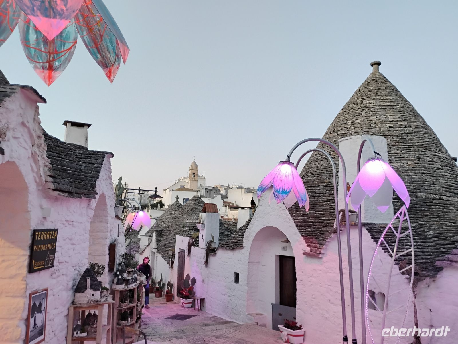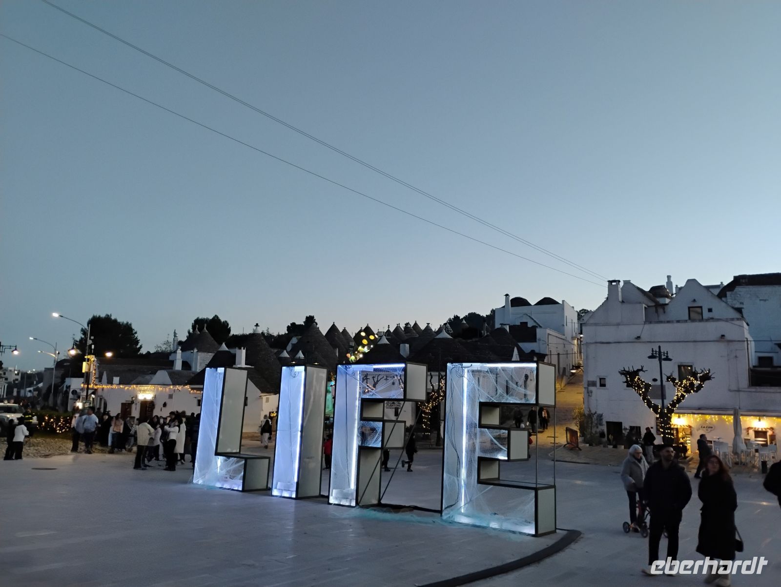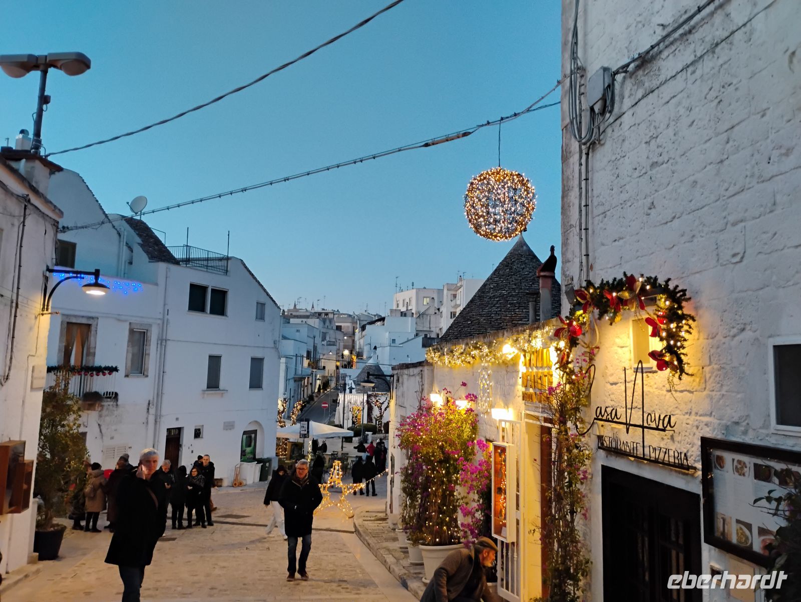 Nach einer kurzen individuellen Pause folgte ein gemeinsamer Spaziergang durch die Gassen. Mit einsetzender Dämmerung zeigte sich Alberobello von seiner besonders stimmungsvollen Seite: Die weihnachtliche Beleuchtung tauchte den Ort in ein warmes Licht, auch wenn die Temperaturen deutlich winterlich waren.