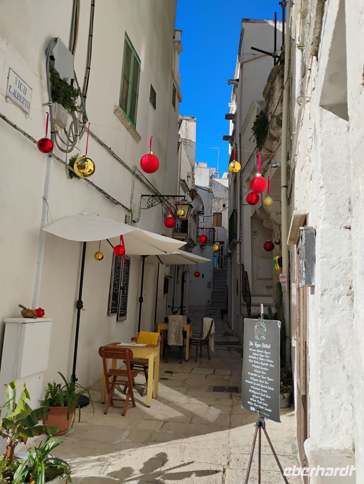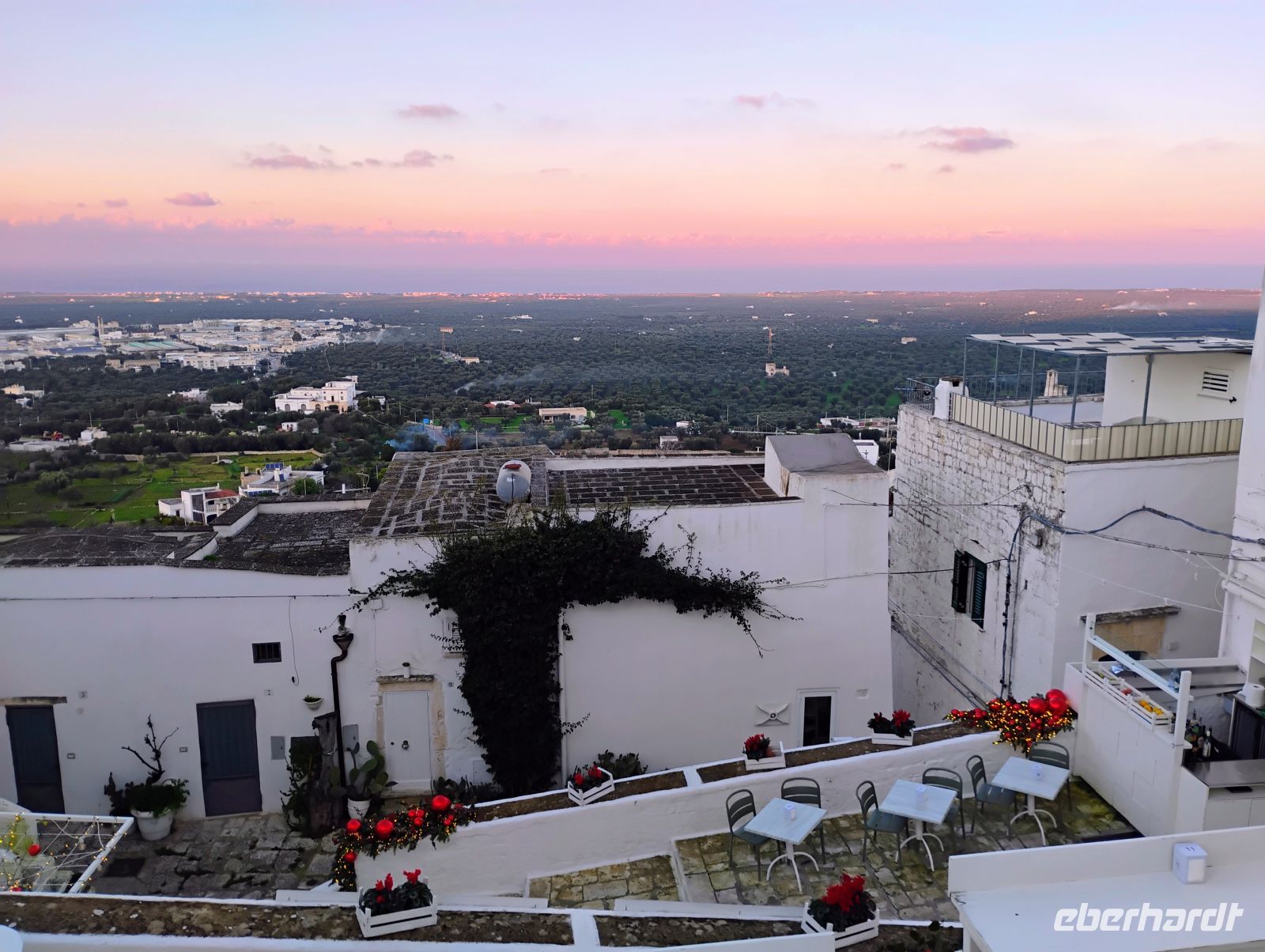Der erste Tag des neuen Jahres begann ganz entspannt. Nach der Silvesternacht ließen wir es beim späten Frühstück ruhig angehen. Wer Lust hatte, schloss sich mir anschließend zu einem kleinen Neujahrsspaziergang durch das Waldstück hinter dem Hotel an, mit Blick bis hin zum Meer. Anschließend nutzten wir den Shuttle-Service vom Hotel ins nahegelegene Cisternino. Bei einem Bummel durch den Ort mit seinen liebevoll geschmückten weißen Gassen und Häusern sowie bei einem Cappuccino in einer lokalen Bar ließ sich das neue Jahr ganz gemütlich begrüßen.
