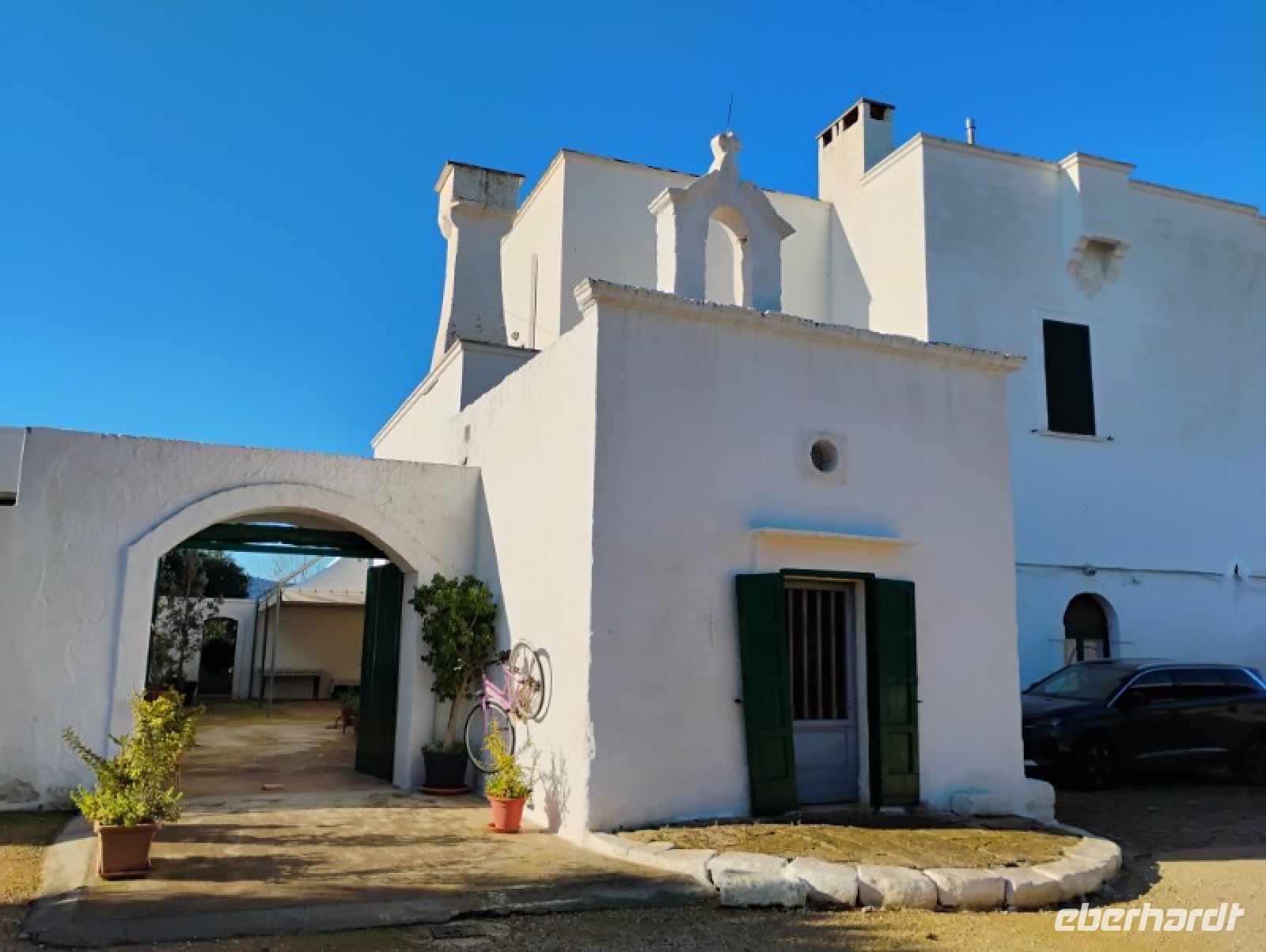 Nach dem Frühstück führte uns der Weg zu einer typischen Masseria in der Nähe von Pezze di Greco. Der historische Gutshof vermittelte bereits bei der Ankunft einen authentischen Eindruck vom ländlichen Apulien. Bei einem Rundgang lernten wir das Anwesen näher kennen, darunter einen kleinen Kirchenraum mit alten Fresken, den Innenhof mit Orangenbäumen, den Olivenhain sowie weitere Bereiche des Hofes.