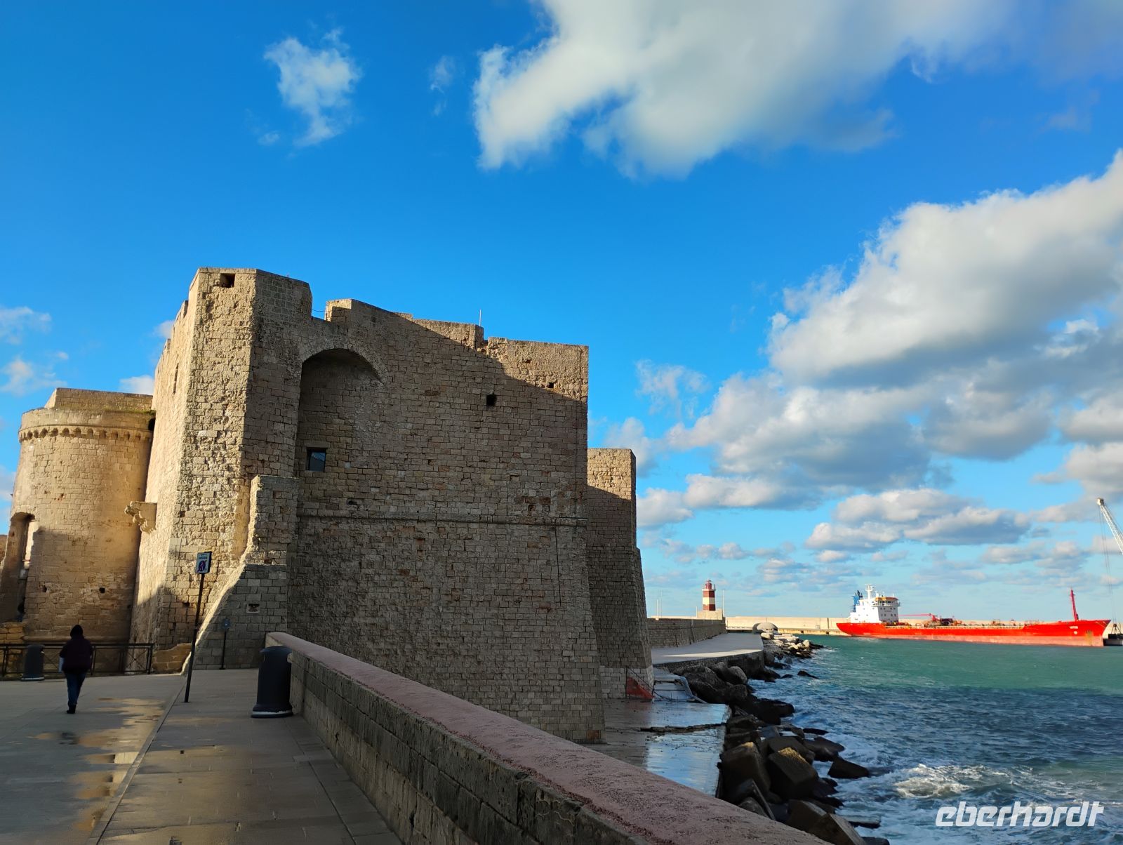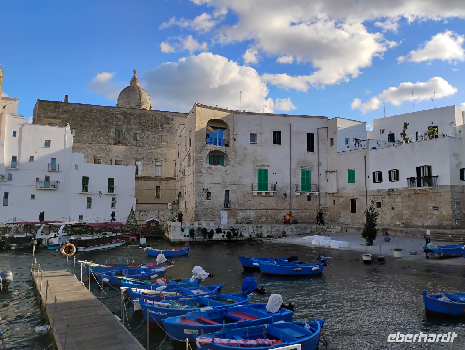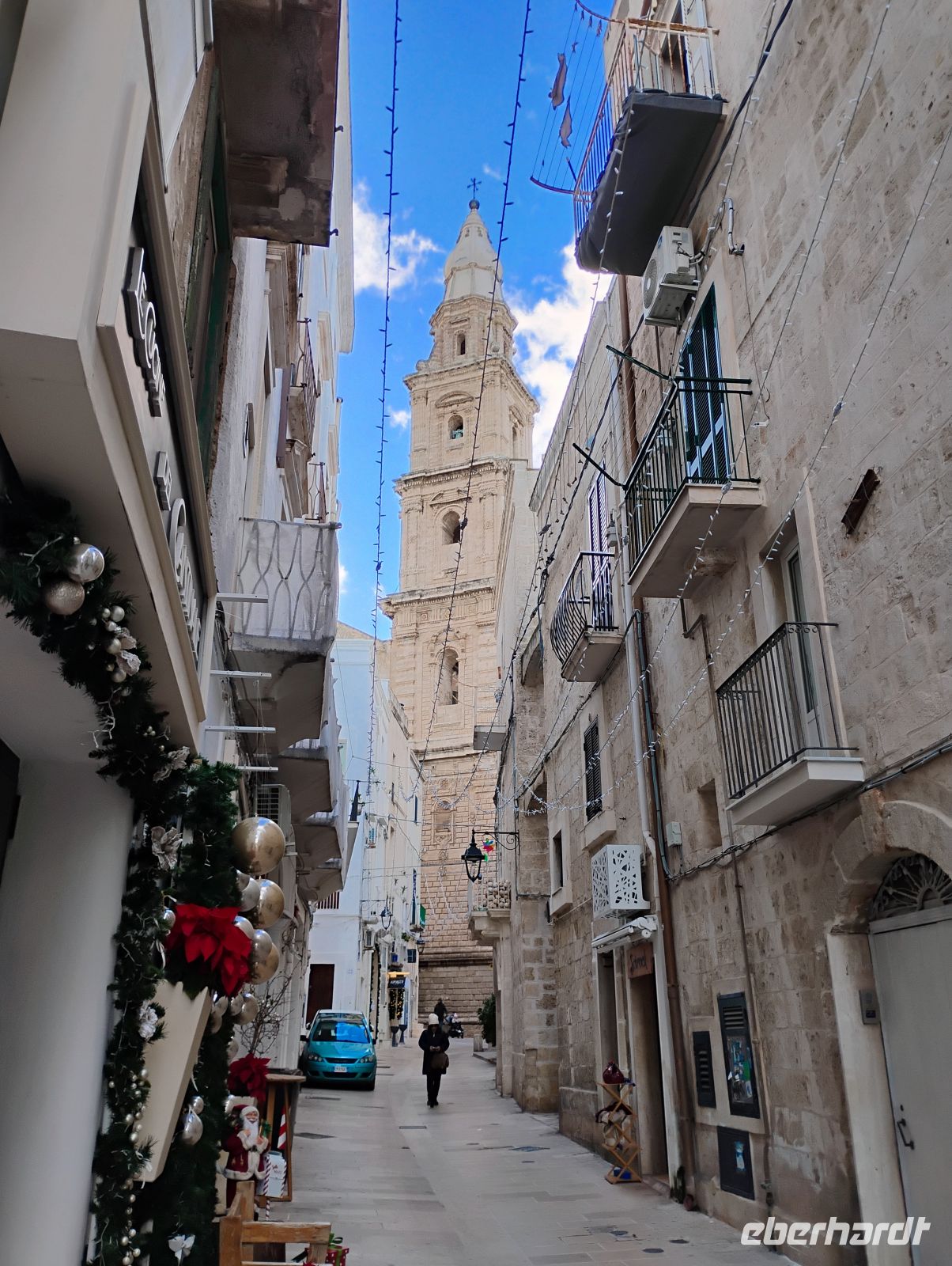 Anschließend ging es weiter an die Adriaküste nach Monopoli. Die Hafenstadt empfing uns mit Meeresluft, Sonnenschein und einer lebendigen Atmosphäre. Bewusst war zunächst Zeit zur freien Verfügung eingeplant, solange die Geschäfte noch geöffnet waren. Denn letzte wichtige Besorgungen für die Silvesternacht – wir erinnern uns an den roten Glücksbringer – standen noch an, ganz nach italienischer Tradition. Ansonsten stärkten wir uns bei einem kleinen Mittagssnack. Danach trafen wir uns zu einem gemeinsamen Spaziergang durch die Altstadt. Zwischen kleinen Plätzen, dem alten Hafen und immer wieder neuen Blicken aufs Wasser zeigte sich Monopoli von einer besonders charmanten Seite.
