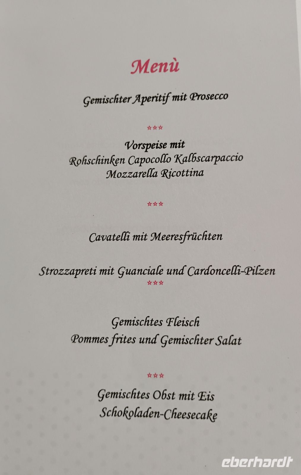 Der Abend klang im Hotel aus, allerdings deutlich lebhafter als erwartet. Nach dem gemeinsamen Abendessen wurde es im Nebensaal beim Folkloreabend mit traditioneller apulischer Musik schnell recht laut. Während vor allem die italienischen Gäste begeistert zu den apulischen Volkstänzen mittanzten, schauten wir eher schmunzelnd zu. Später gingen einige an die Bar, und bei einem Absacker habe ich der Gruppe von einem italienischen Silvesterbrauch erzählt: Geschenkte rote Unterwäsche, die man in der Silvesternacht trägt, soll Glück und Liebe im neuen Jahr bringen! Für morgen, unseren Ausflug nach Monopoli, haben wir schon überlegt, ob die Unterwäscheläden geöffnet sind…