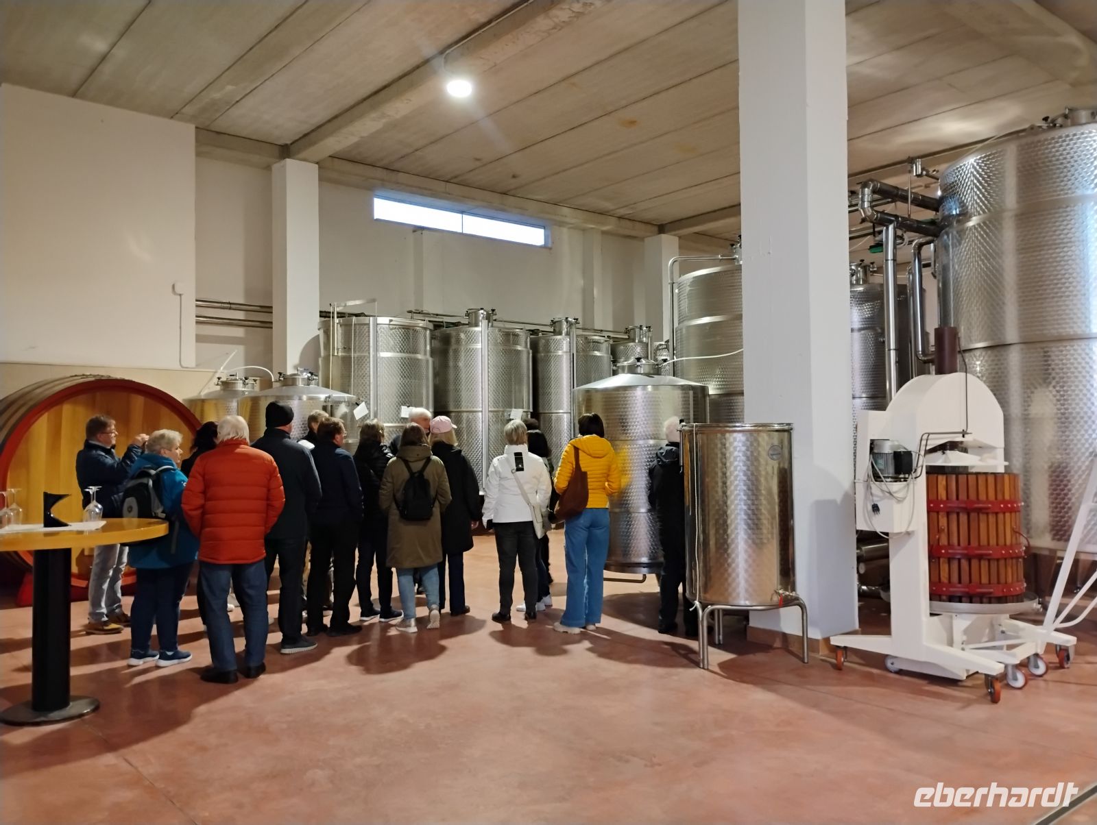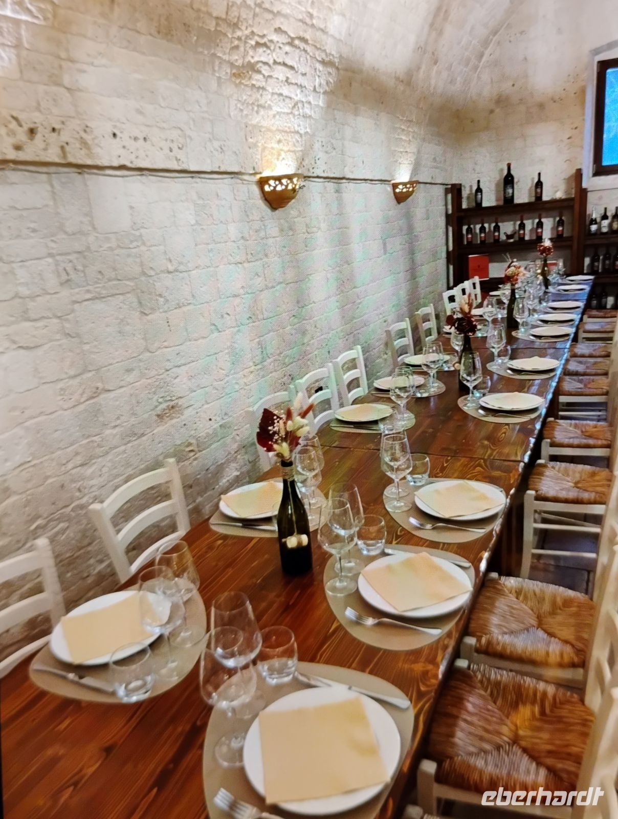 Am Nachmittag stand nahtlos der nächste genussvolle Programmpunkt auf dem Plan: der Besuch eines familiengeführten Weinguts. Nach einer guten halben Stunde Fahrt erreichten wir die Cantina Masseria Torricella, die seit vielen Jahrzehnten für ihre Weine bekannt ist. Bei einer Führung erhielten wir Einblicke in die Arbeit im Weinberg und in den modernen Weinkeller, bevor es zur Verkostung ging. Probiert wurden verschiedene Weine der Region, darunter ein frischer Weißwein, ein Rosé sowie ein klassischer Primitivo. Begleitet wurde die Verkostung von regionalen Spezialitäten, sodass der Übergang vom Mittagessen zur Weinprobe fließender kaum hätte sein können.