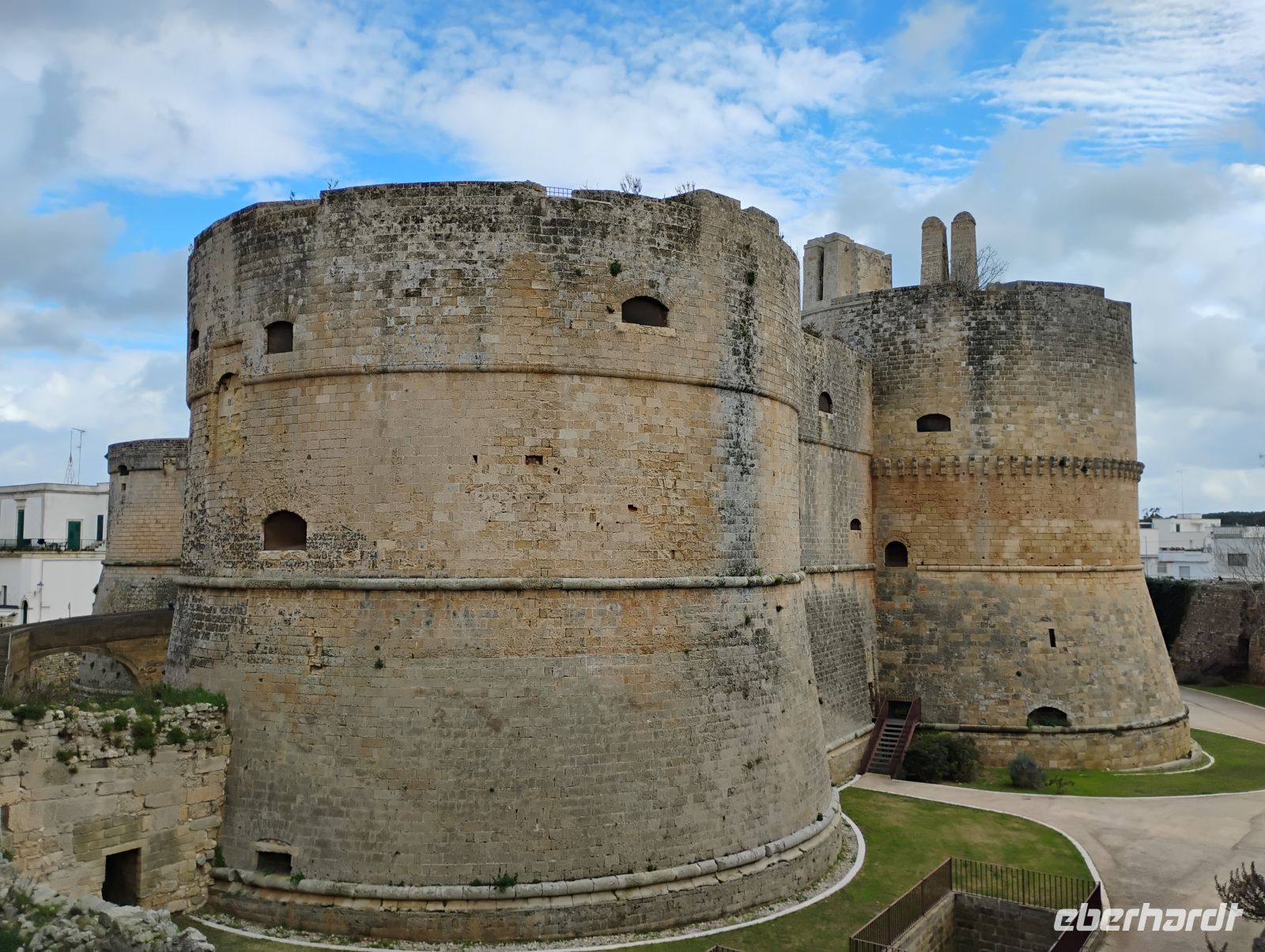 Nach dem Frühstück machten wir uns auf den Weg in den Süden Apuliens, ins Salento. Schon während der Fahrt stimmte uns Sascha mit spannenden Erzählungen auf den Tag ein: Er berichtete von der bewegten Geschichte Otrantos im Mittelalter, den Auseinandersetzungen mit dem Osmanischen Reich und deren Auswirkungen auf den Süden Italiens. Auch aktuelle Themen kamen zur Sprache, etwa das Olivenbaumsterben durch ein eingeschlepptes Bakterium. Unterwegs passierten wir zudem Calimera, eine griechischsprachige Enklave, in der bis heute das alte „Grico“ gesprochen wird.