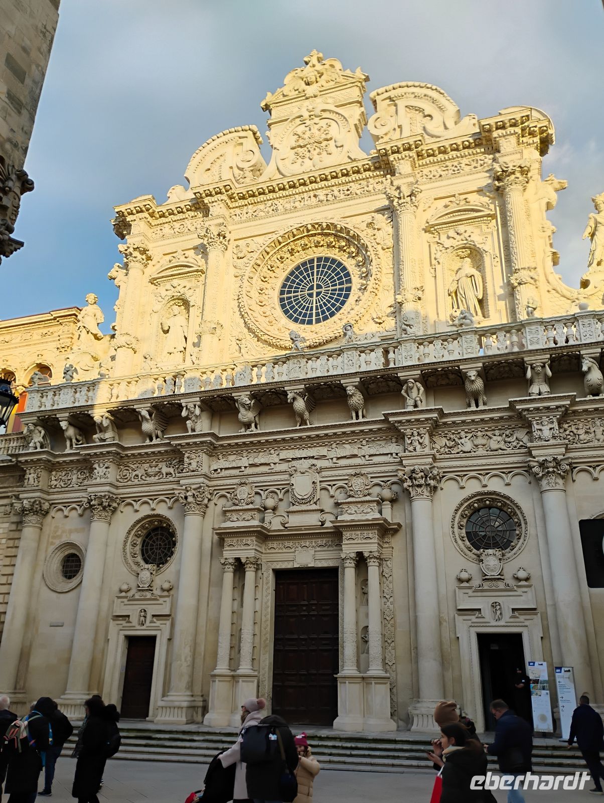 Beim Rundgang zeigte sich Lecce mit all seiner barocken Pracht. Besonders die Basilika Santa Croce beeindruckte mit ihrer reich verzierten Fassade, sodass wir hier bewusst etwas länger stehen blieben, während Sascha uns die vielen Details und Symbole des lecceser Barocks erklärte.