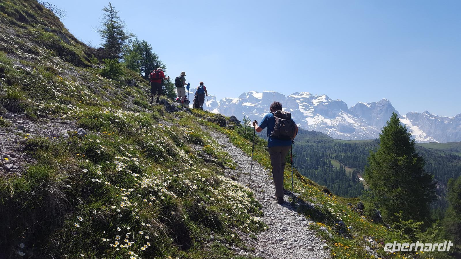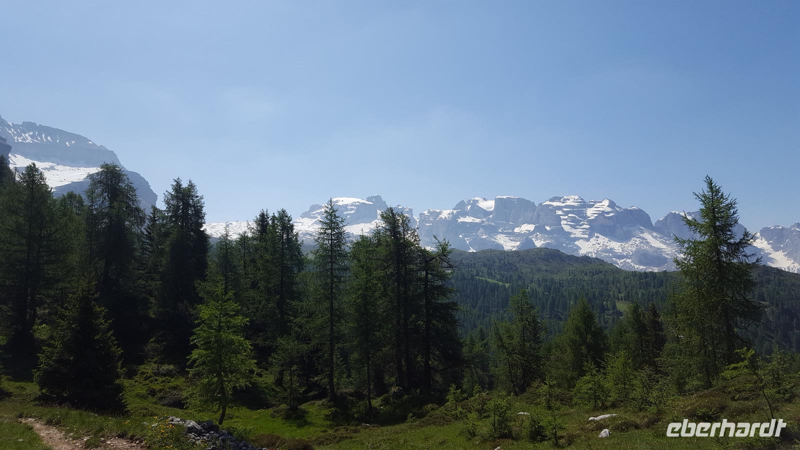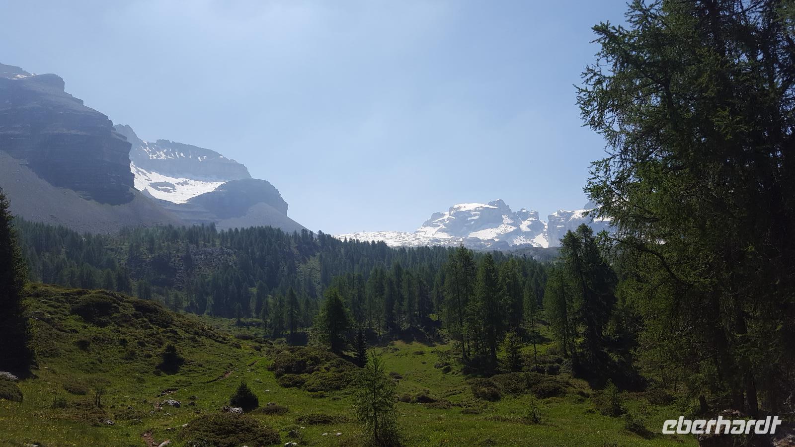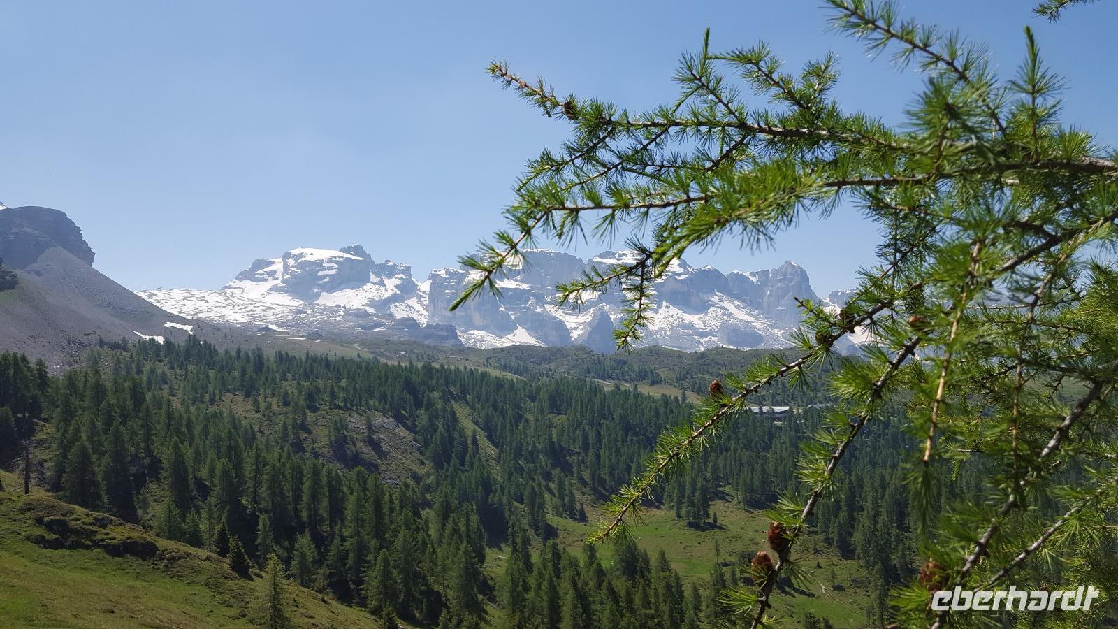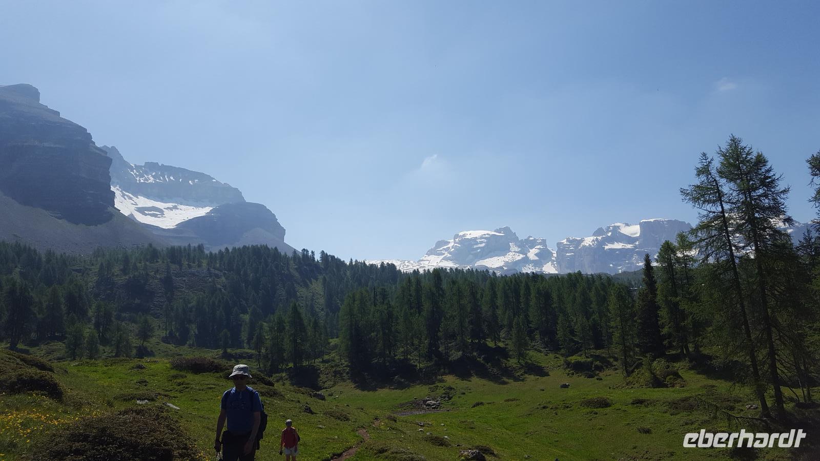 Von dort aus wanderten wir zunächst etwas bergauf und konnten bereits herrliche Ausblicke auf den nördlichen Abschnitt der Brenta Dolomiten genießen.