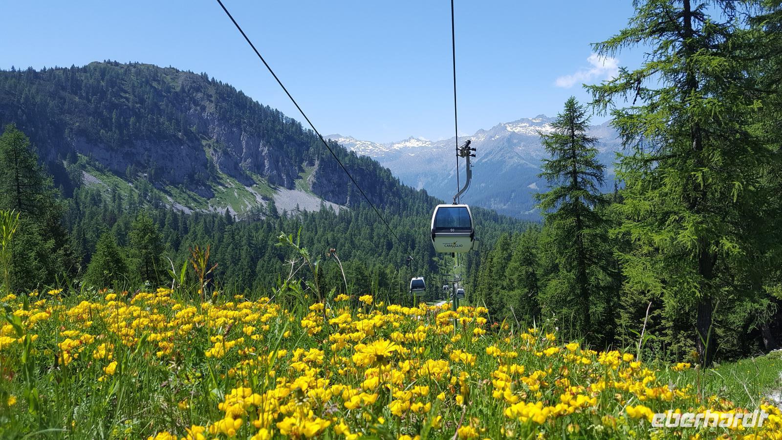 Mit der Gondel „Talent" schwebten wir in Windeseile auf 1.995 Meter.