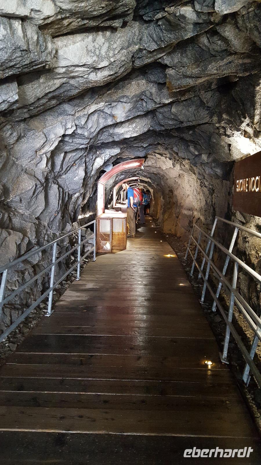 Unterhalb der Hütte besichtigten wir einen Kriegsstollen, der zum Militärdenkmal ausgebaut wurde. Genau dort verliefen die Stellungen im 1. Weltkrieg, wo erbittert gekämpft wurde. In Ton und Bild wurden anschaulich die Kriegs Szenen dargestellt und es lief uns eiskalt den Rücken hinunter, mit welcher Brutalität in dieser Höhe gekämpft wurde.