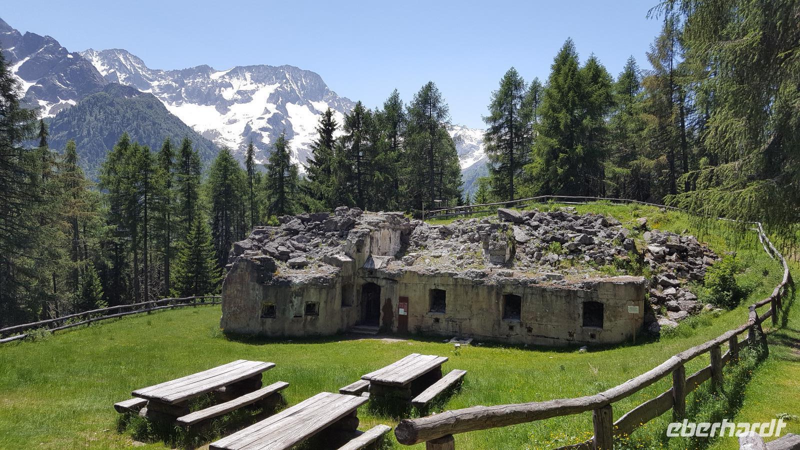 Am frühen Nachmittag erreichten wir das Forte Mero und weiter das Forte Strino Vermiglio auf 1.538 m. Die Geschichte rund um den 1. Weltkrieg begleitete uns weiter, denn dort konnten wir uns ein genaues Bild vom Leben der Soldaten machen.