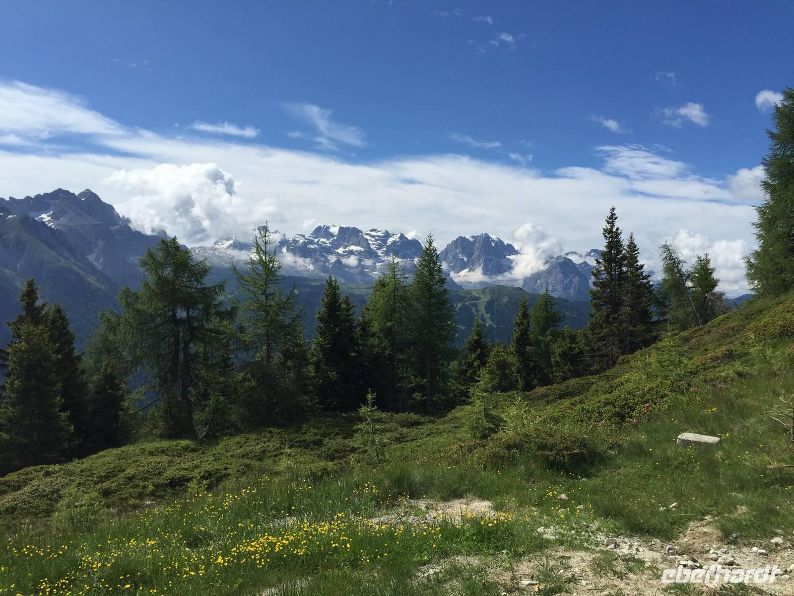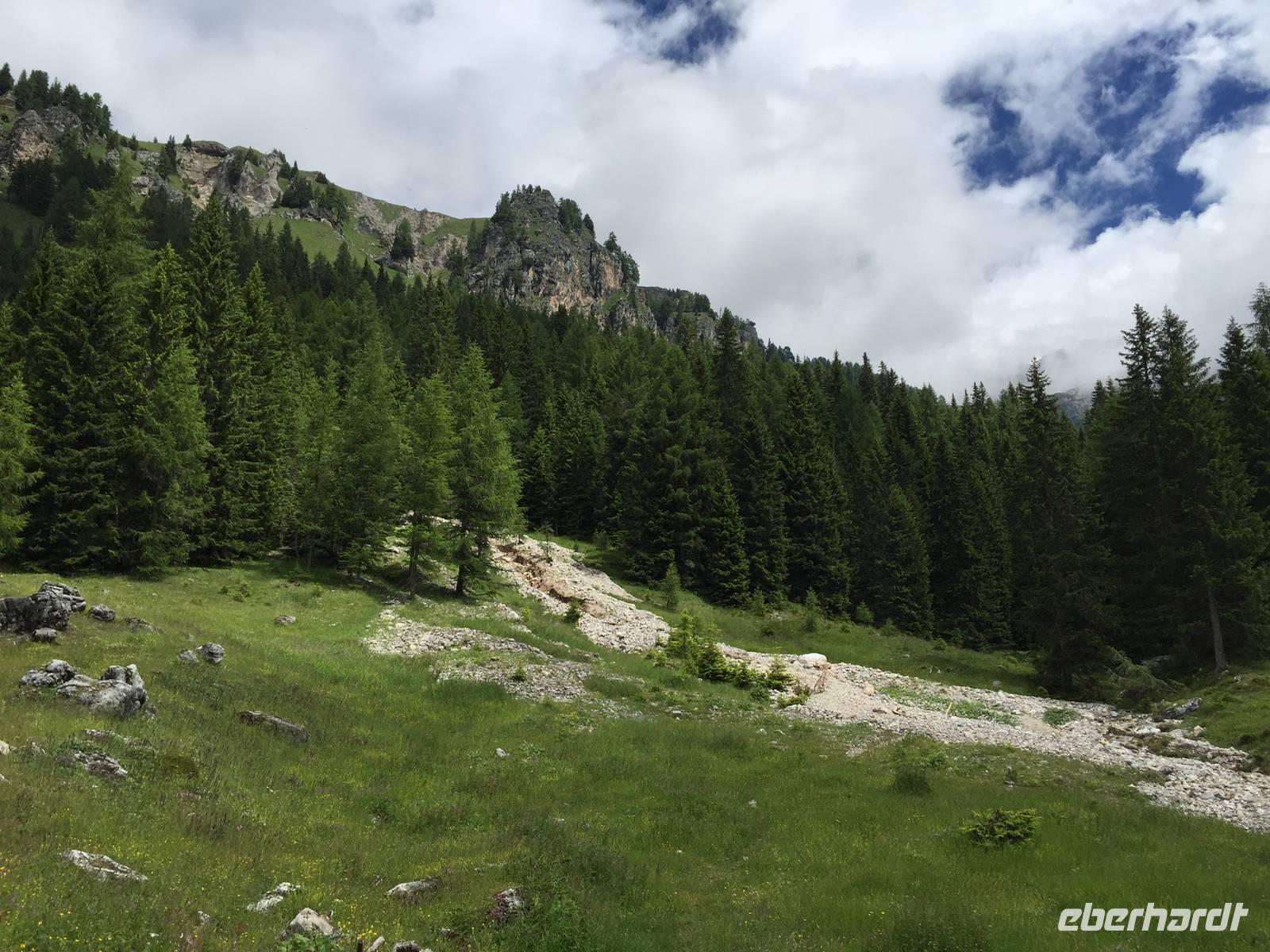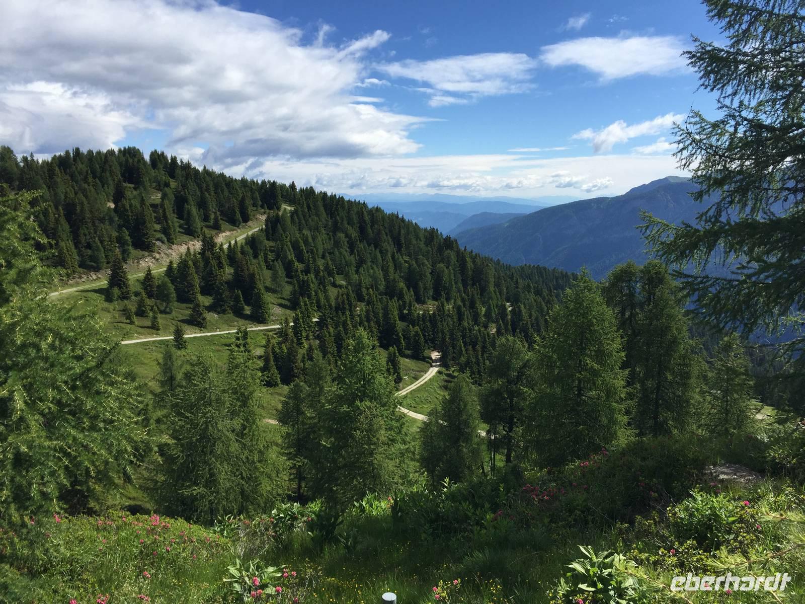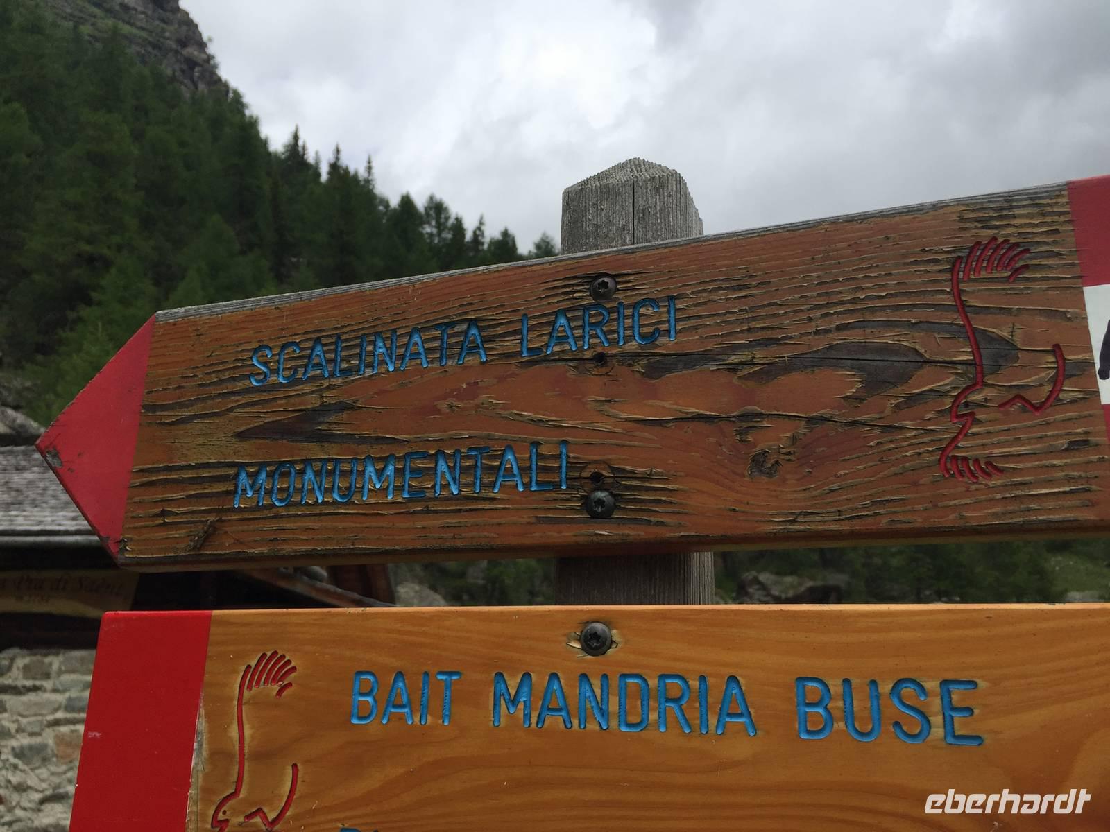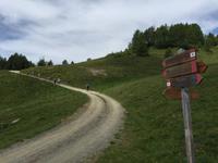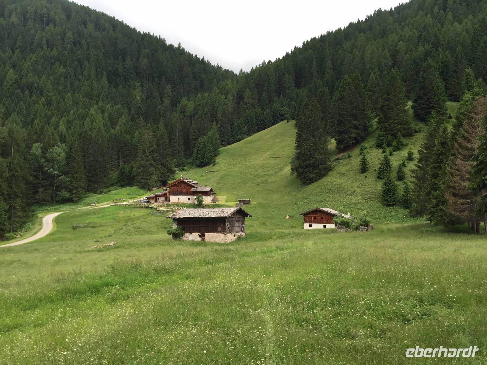 Gut erholt starteten wir unseren letzten Abschnitt in Richtung Passo Campo Carlo Magno (1.681 Meter). Dieser Gebirgspass wurde nach Karl dem Großen benannt, da er angeblich im Jahre 800 auf dem Weg zu seiner Krönung zum Kaiser des Heiligen Römischen Reiches in Rom über diesen Pass gezogen sein soll. Über einen angenehmen Waldweg erreichten wir eine weitere Alm, die wir für eine kurze Pause nutzen. Auf der Asphaltstraße ging es dann hinunter zu unserem Treffpunkt mit unserem Bus, der allerdings etwas auf sich warten ließ.