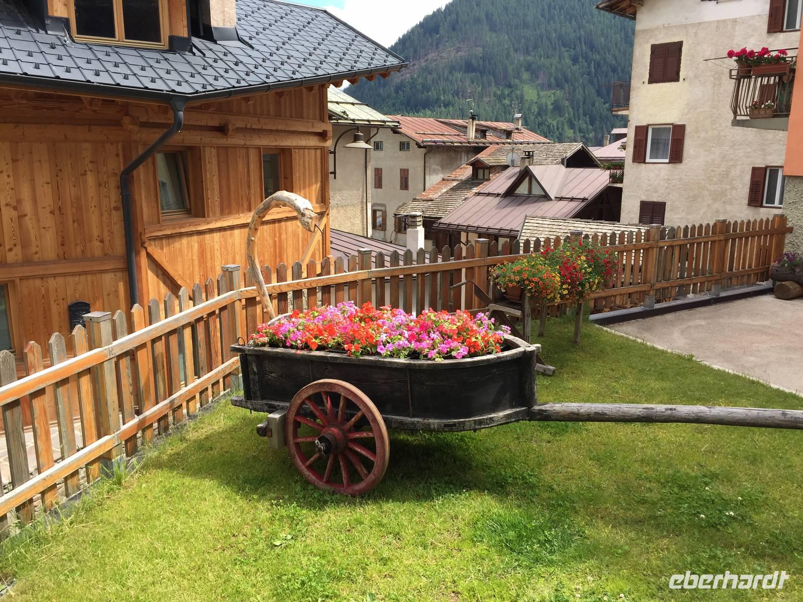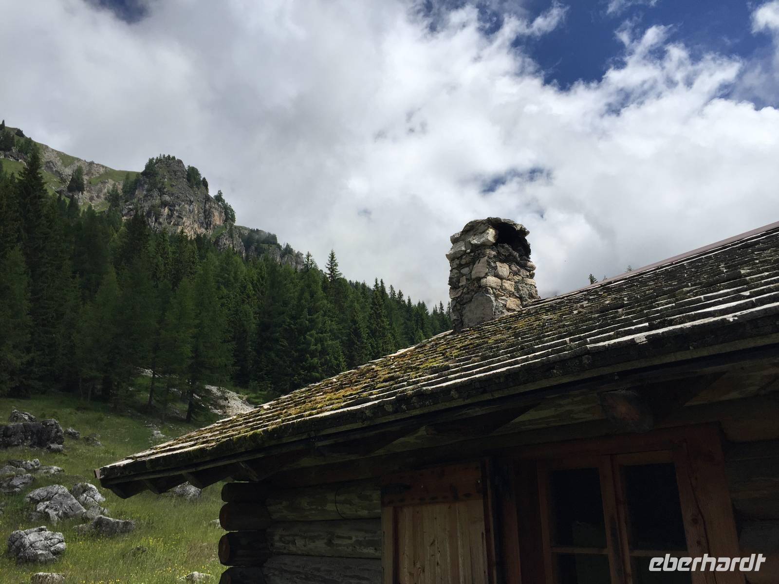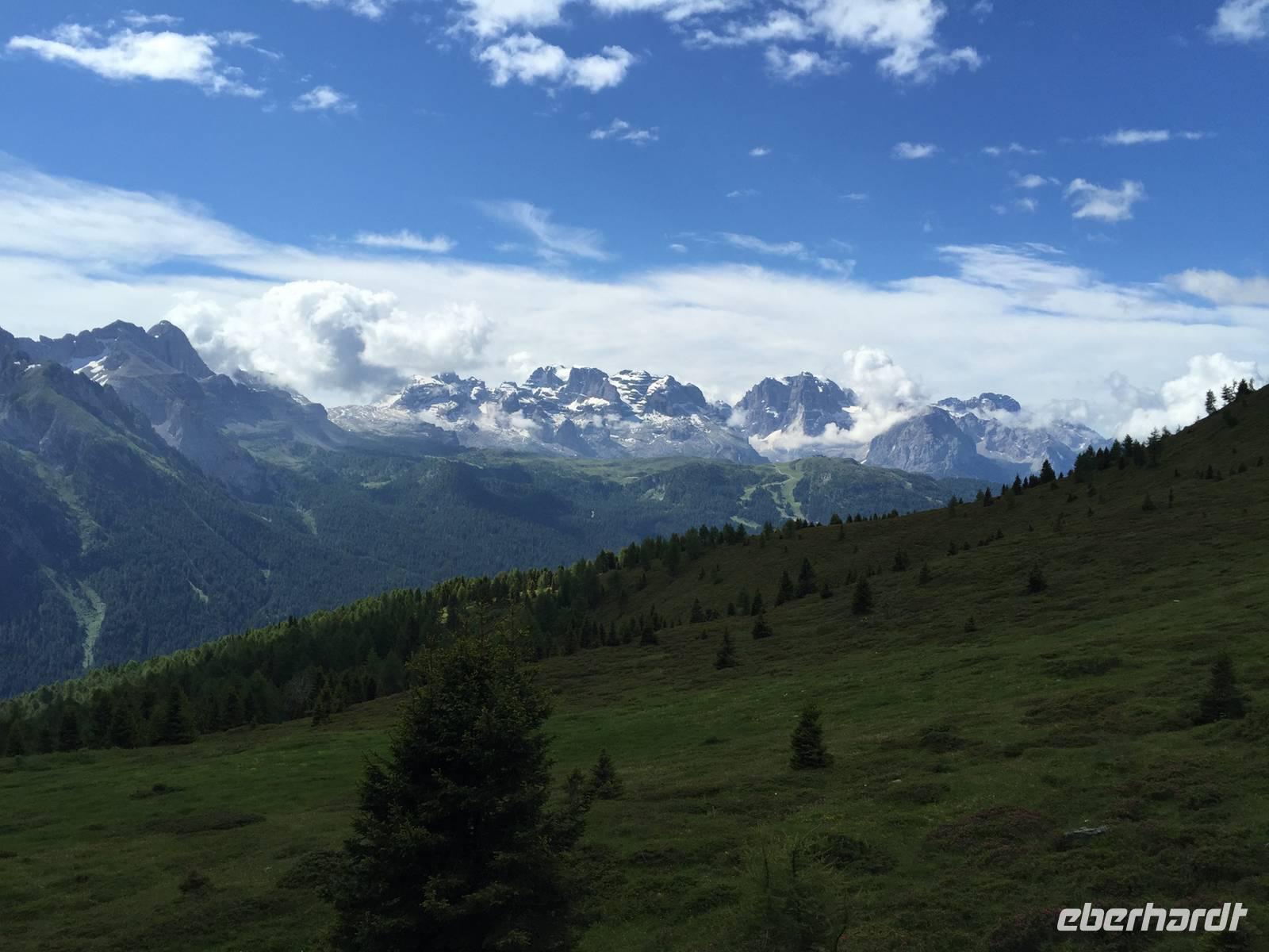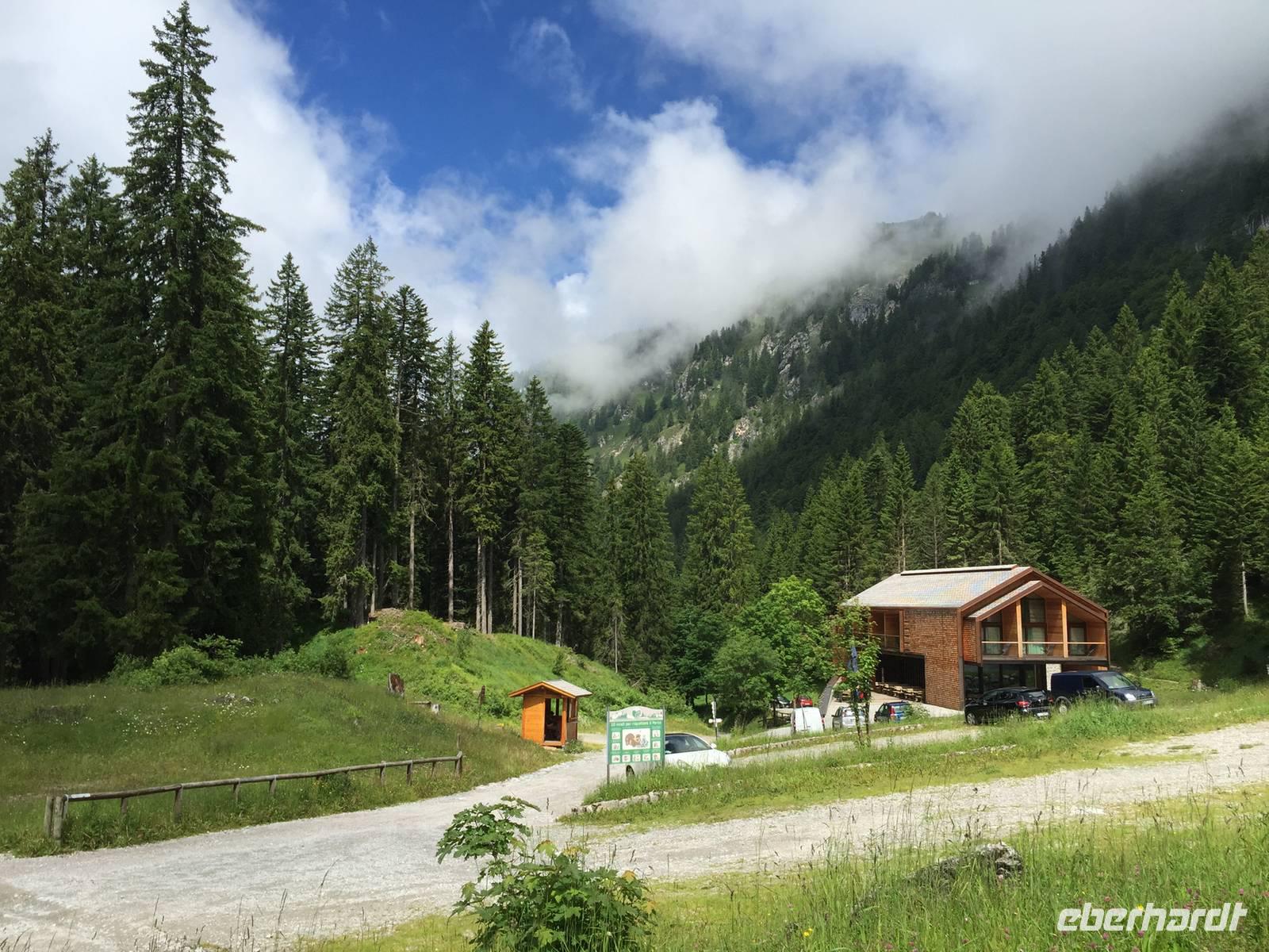Gut erholt starteten wir unseren letzten Abschnitt in Richtung Passo Campo Carlo Magno (1.681 Meter). Dieser Gebirgspass wurde nach Karl dem Großen benannt, da er angeblich im Jahre 800 auf dem Weg zu seiner Krönung zum Kaiser des Heiligen Römischen Reiches in Rom über diesen Pass gezogen sein soll. Über einen angenehmen Waldweg erreichten wir eine weitere Alm, die wir für eine kurze Pause nutzen. Auf der Asphaltstraße ging es dann hinunter zu unserem Treffpunkt mit unserem Bus, der allerdings etwas auf sich warten ließ.