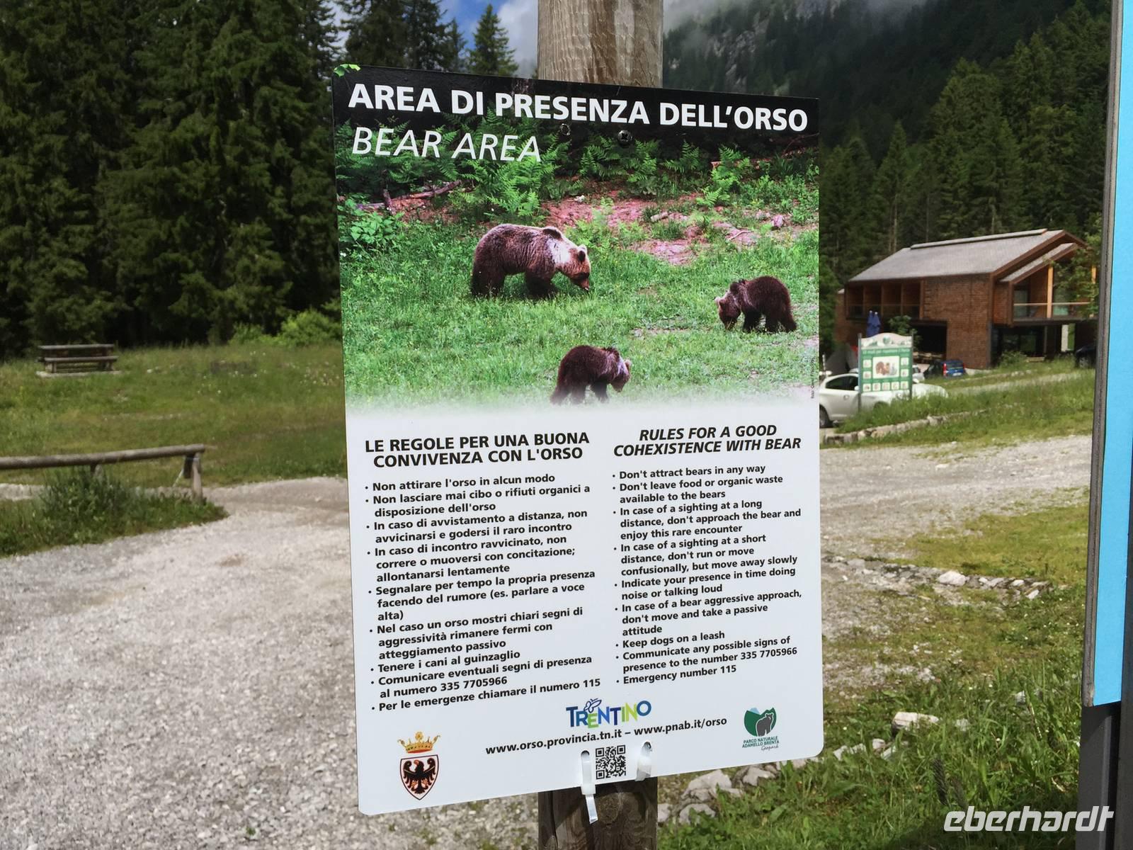 Zunächst ging es mit dem Bus nach Madonna di Campiglio, DEM Wintersportort im Trentino. Vom Trubel der Skisaison haben wir heute noch nichts gemerkt, die Hotels waren teilweise noch geschlossen, die ganze Stadt wie ausgekehrt. Gut für uns, denn so hatten wir den Wanderweg fast für uns alleine. Vom Parkplatz in Madonna di Campiglio wanderten wir auf dem größtenteils ebenen "Sentiero dell'Orso", dem Weg der Bären, zunächst bis zur Hütte Vallesinella. Hier bekamen wir eine kleine Lehrstunde zum Verhalten bei einer Begegnung mit einem Bären und dann ging unsere Wanderung ins Herz der Brenta-Dolomiten los. Bergauf wanderten wir durch eine herrliche Abfolge an Vorsprüngen inmitten der beeindruckenden Cascate Alte di Vallesinella. Mehrere Brücken verbanden dieses Gewirr spektakulärer Wasserläufe. Unvorstellbar, dass diese Wasserfälle im Winter gefrieren und dann ein wahres Paradies für Eiskletterer sind!