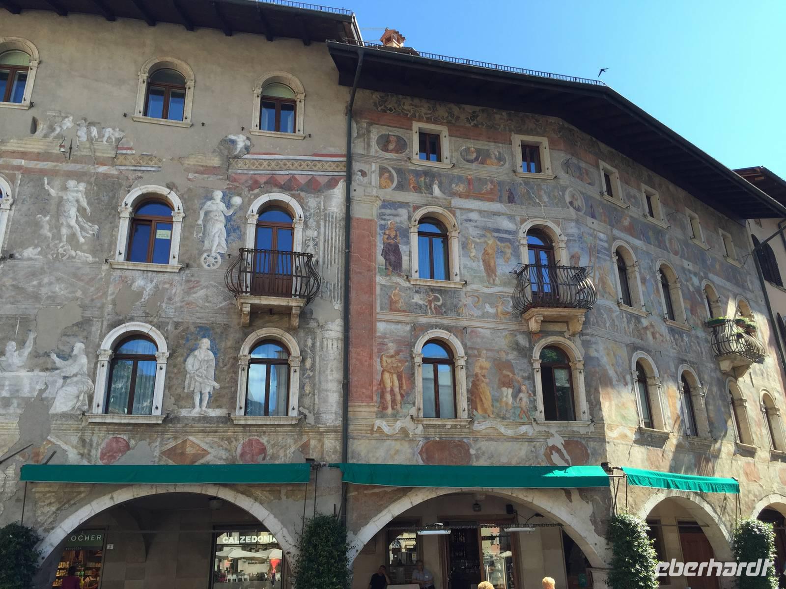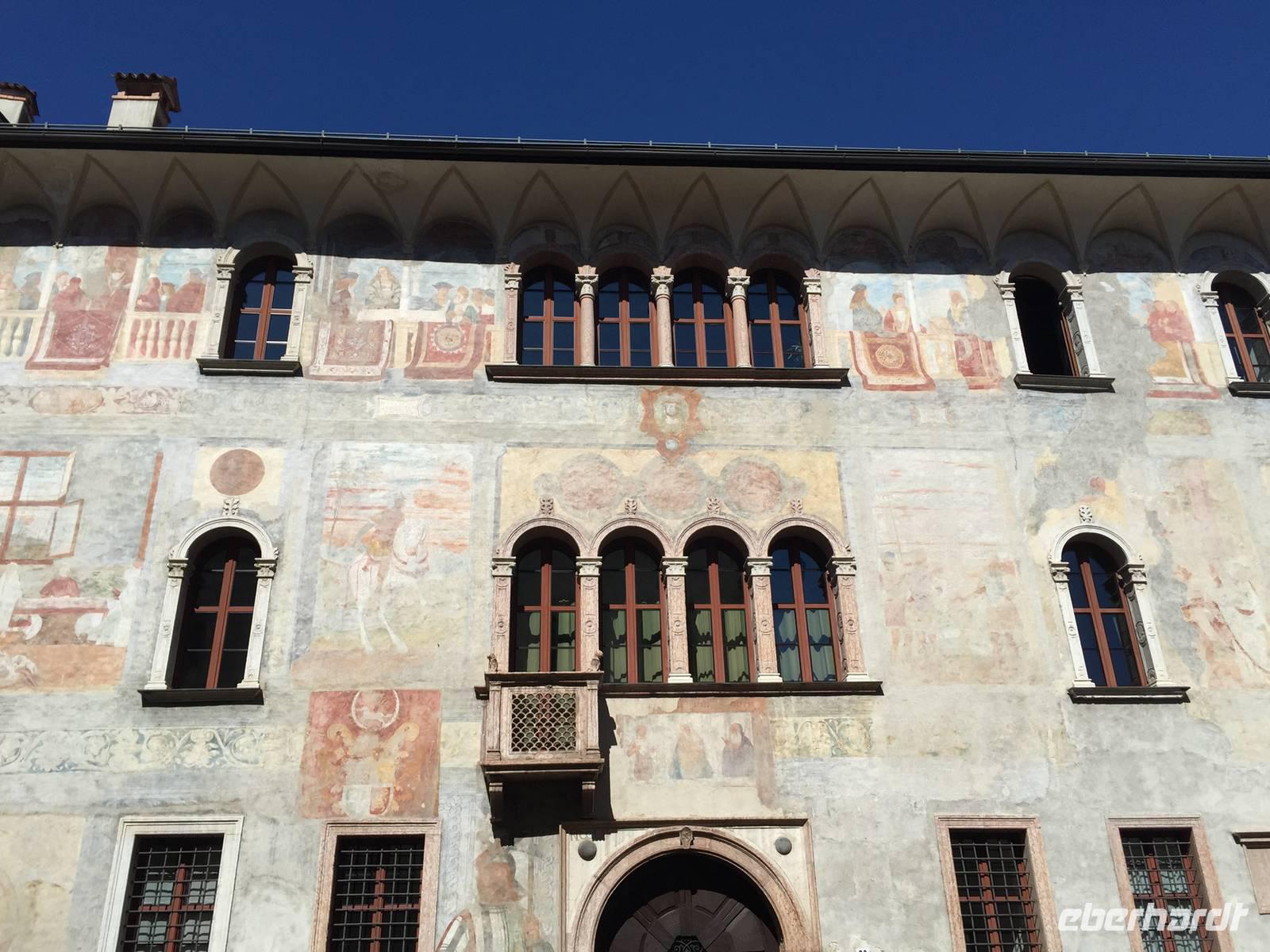 Unsere Stadtführerin Maria empfing uns pünktlich und wir begannen unsere Stadt"wanderung". Sie zeigte uns die Hauptstadt des Trentino mit ihren 110.000 Einwohnern, mit ihren Denkmälern und schönen Palazzi und berichtete vor allem über die bewegte Geschichte, auf die die Stadt zurückblickt. Die verschiedenen Fresken auf den Palazzi der Altstadt berichteten uns ebenfalls etwas von der Geschichte der Stadt und zeigten u.a. mythologische Figuren, die Reise der deutschen Kaiser nach Rom, das Konzil 1545 oder das Fürstbistum, das über Jahrhunderte über das Tal entschied.