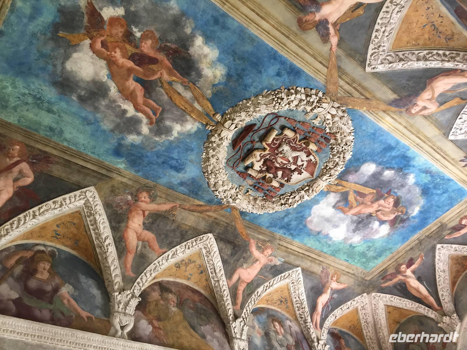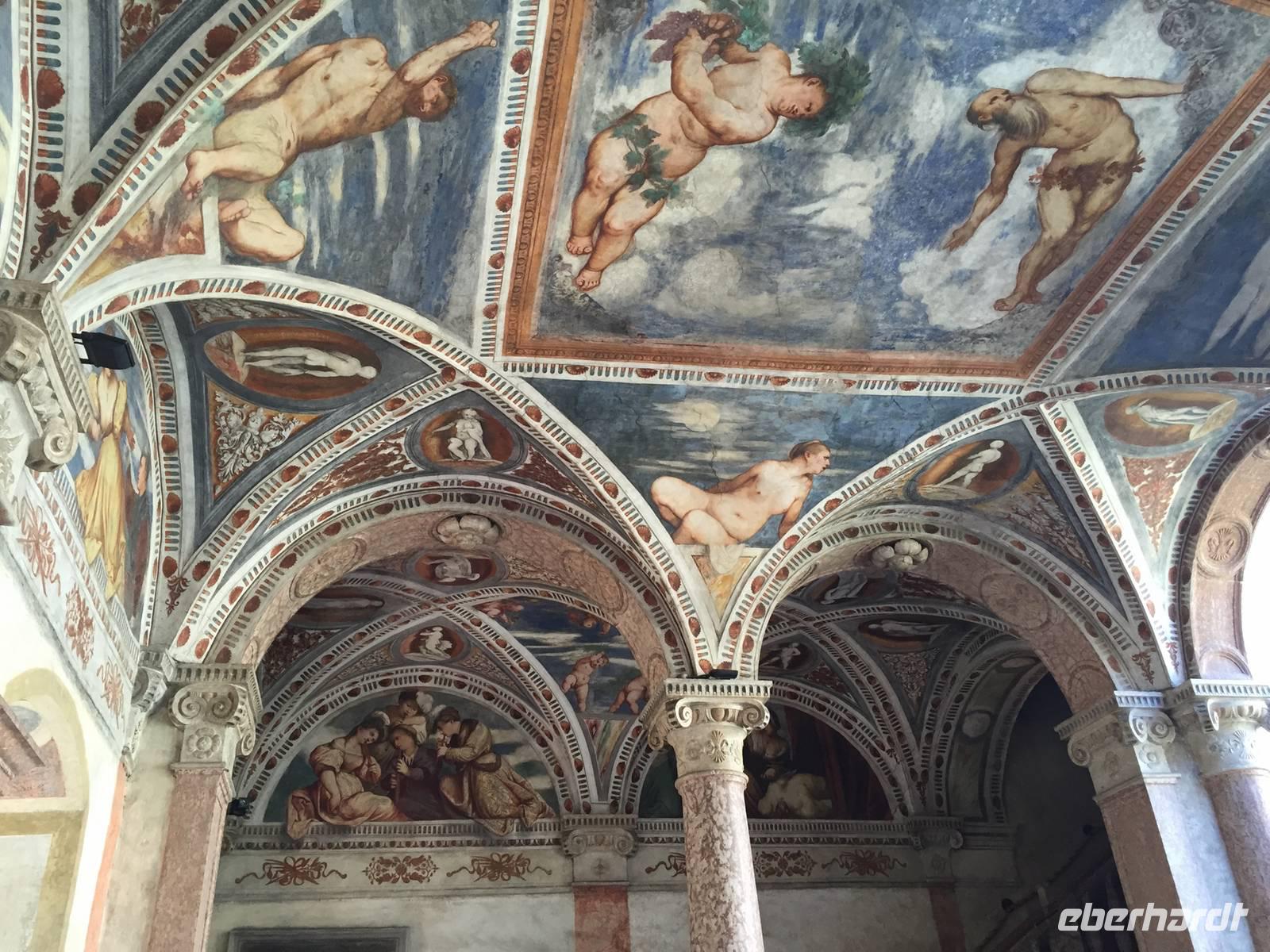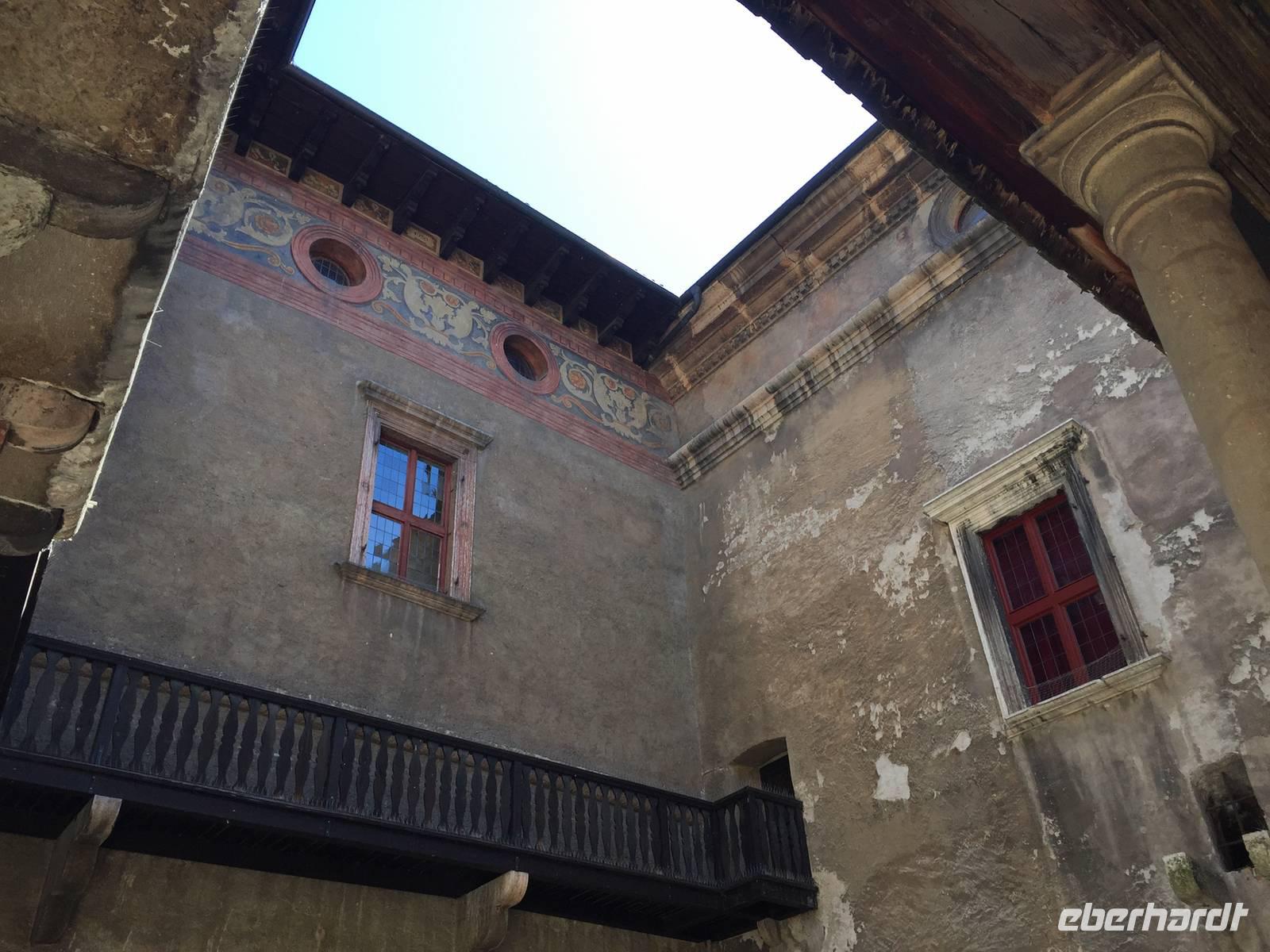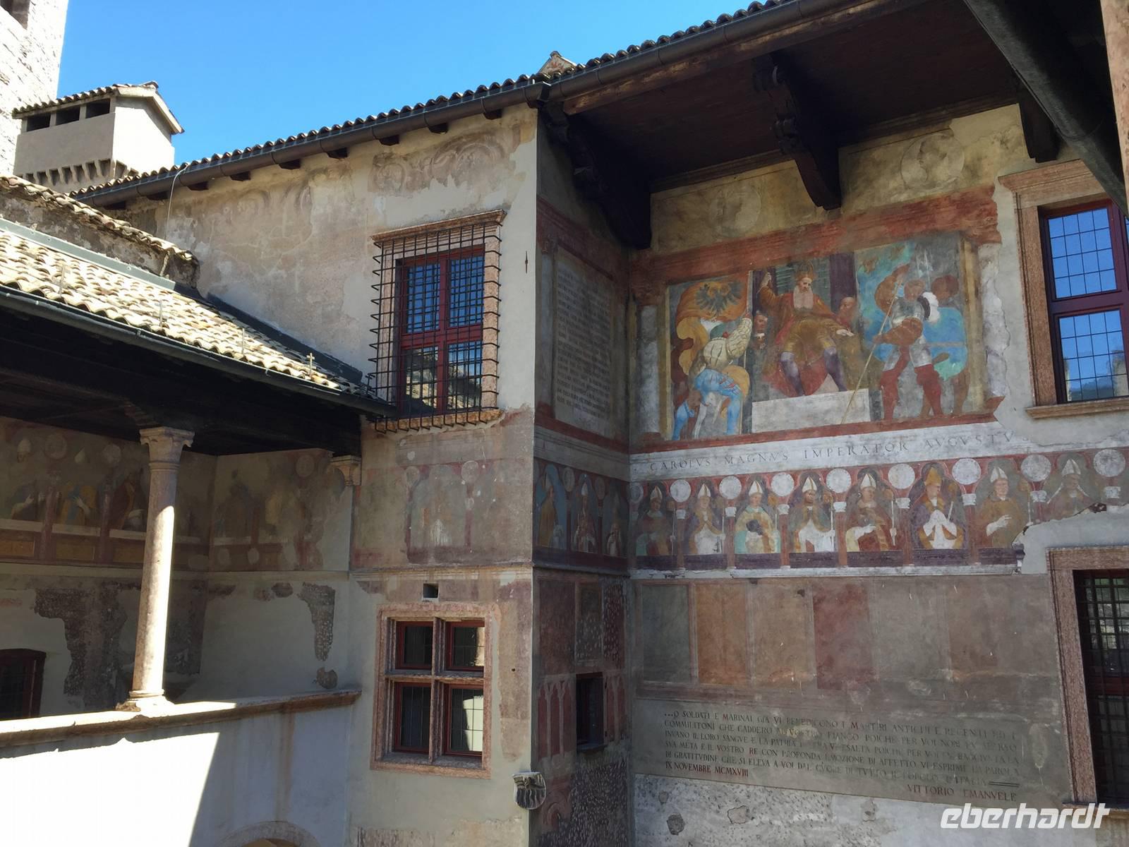 Unter anderem besuchten wir einige Palazzi, den Dom an der schönen Piazza mit dem sehenswerten Brunnen und entdeckten die Altstadt mit ihren Gassen. Höhepunkt und Wahrzeichen der Stadt ist das Castello del Buonconsiglio, welches wir ebenfalls mit Maria besuchten. Dieses Ensemble aus mehreren Bauwerken, die sich an die Stadtmauer anschmiegen, war lange Zeit die Residenz der Fürstbischöfe von Trient. Wir besichtigten die unterschiedlichen Räume mit den schönen Wandmalereien und als kleines Extra durften wir den Adlerturm (Torre dell'Aquila) bestaunen, der an der östlichen Stadtmauer liegt und dessen Inneres mit einem Fresko des berühmten Kalenderzyklus (Jahreszyklus) geschmückt ist - ein Meisterwerk der internationalen Gotik.