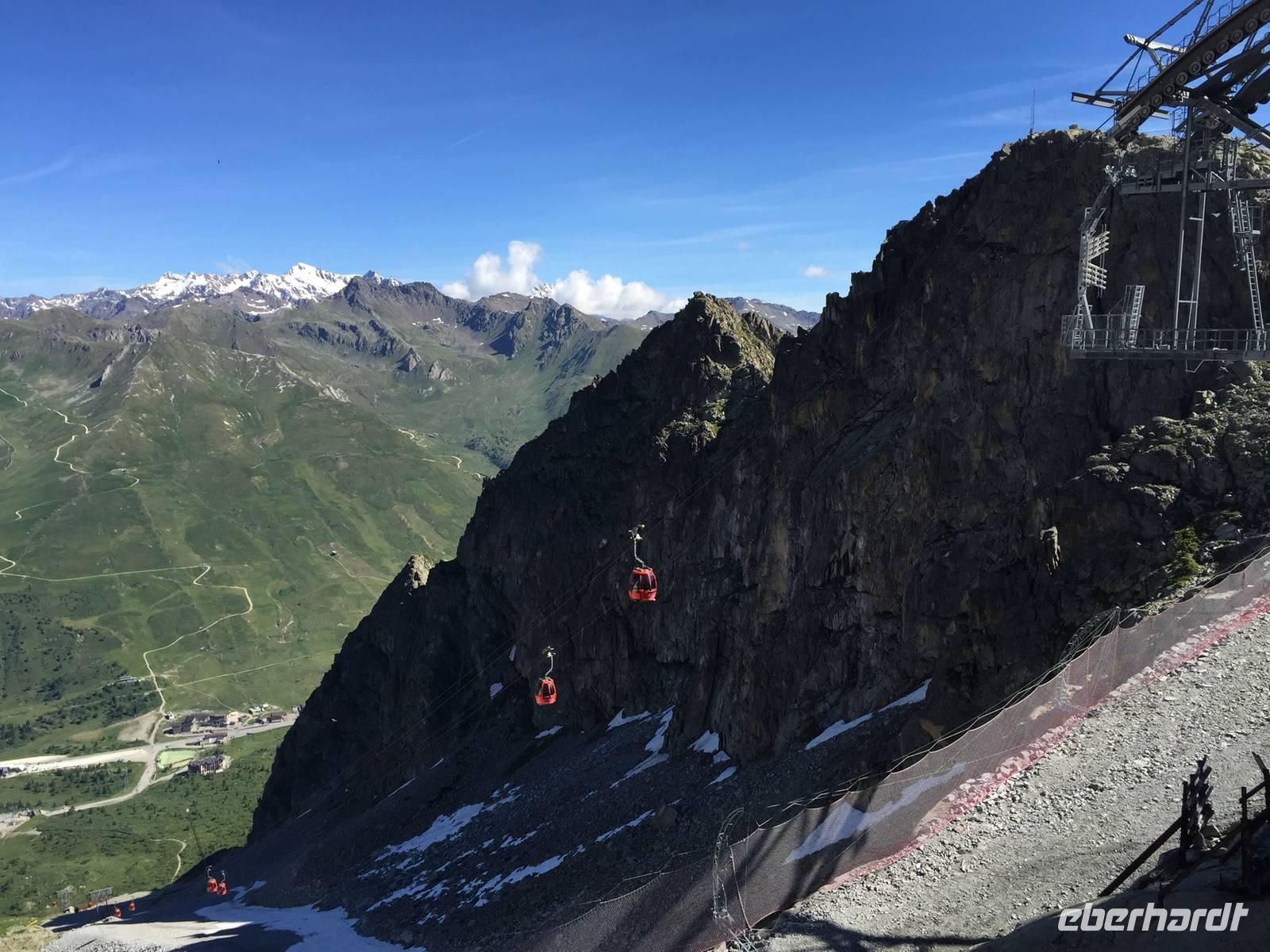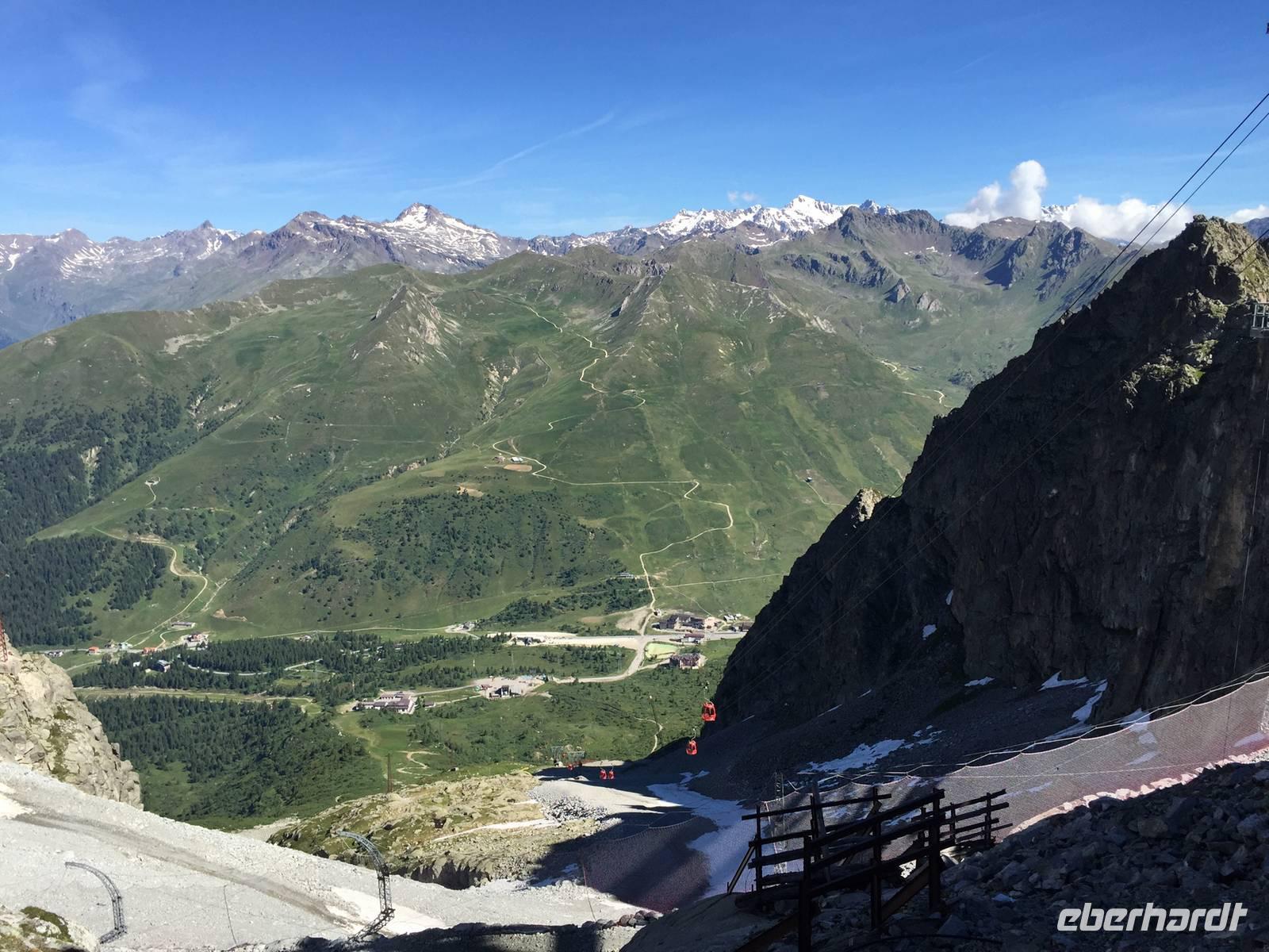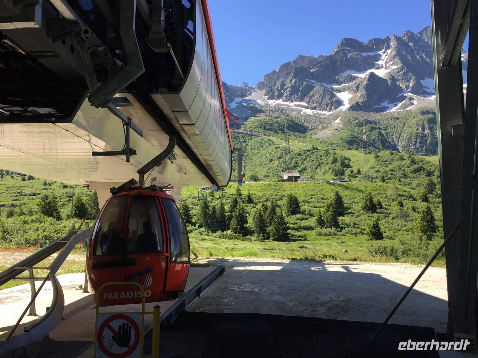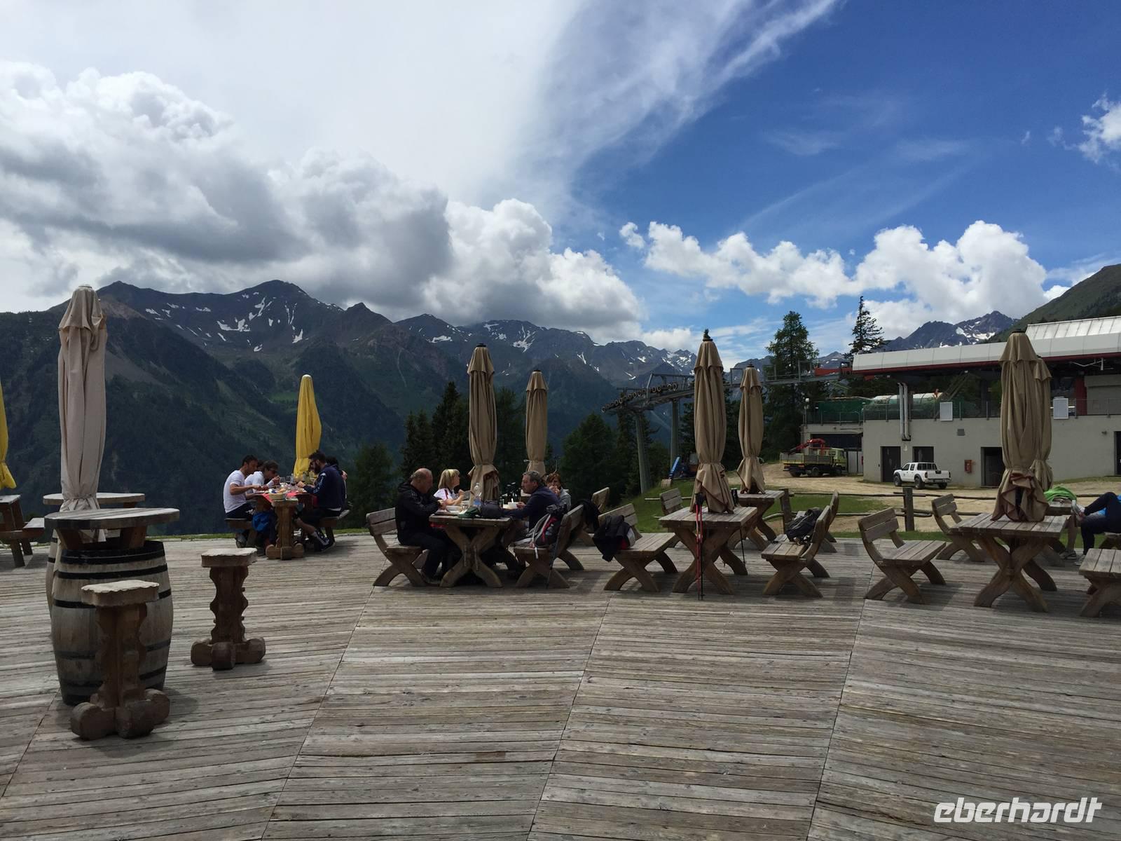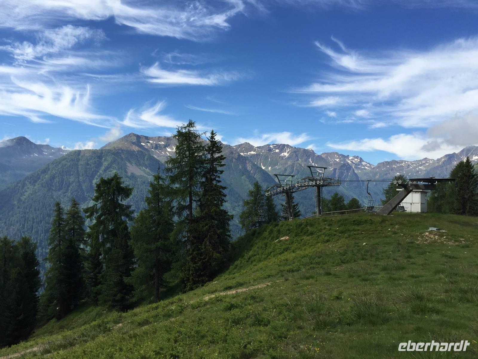 Frisch gestärkt und mit Proviant versorgt starteten wir unsere erste gemeinsame Wanderung. Rino begrüßte uns herzlich am Hotel. Unser Busfahrer Rainer durfte sich nach der langen Anreise heute Vormittag ein wenig ausruhen, denn unsere Wanderung begann direkt am Hotel. Nach wenigen Metern erreichten wir den Daolasa-Lift, wo wir uns unsere Opportunity-Cards besorgten. Diese ermöglichte uns die Nutzung aller Seilbahnen im Val di Sole und hätte auch für Regentage einige Alternativen parat gehabt. In wenigen Minuten schwebten wir hinauf auf 2.000 Meter.