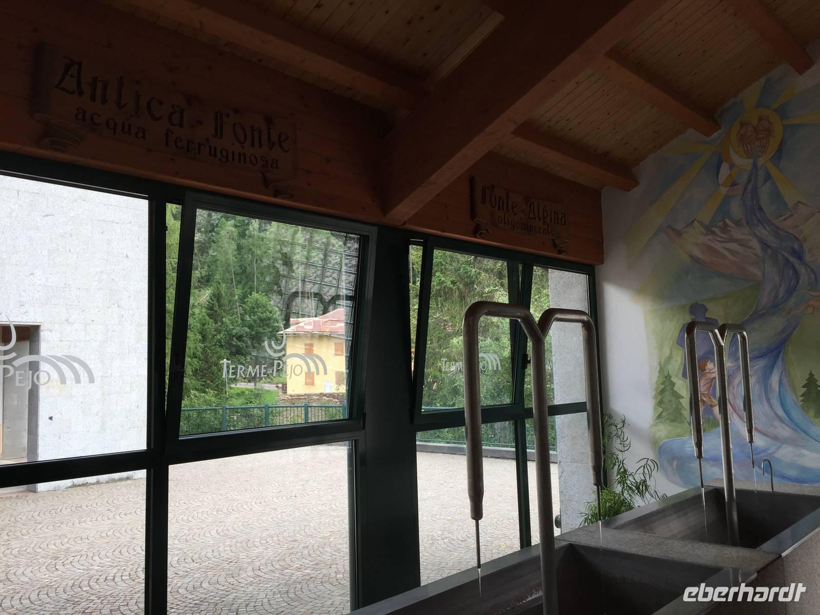 Im Dorf Peio empfing uns unser Rainer mit dem Bus und wir machten uns auf den Weg zu den Thermalanlagen. Hier probierten wir das hiesige Thermalwasser, wobei jedes, durch seine ausgewogene Zusammensetzung von Salzen, Ionen und natürlichen Gasen, eine andere Heilwirkung hat. Nun kann also nichts mehr schief gehen!