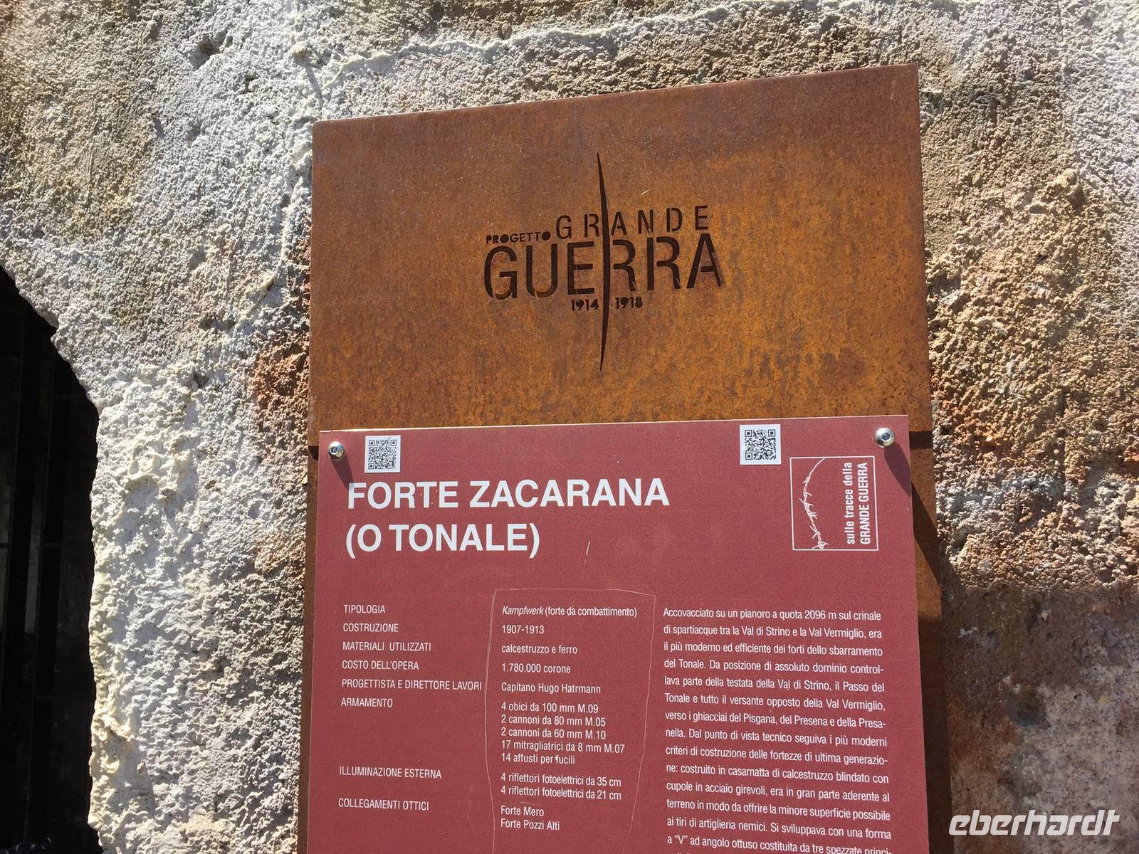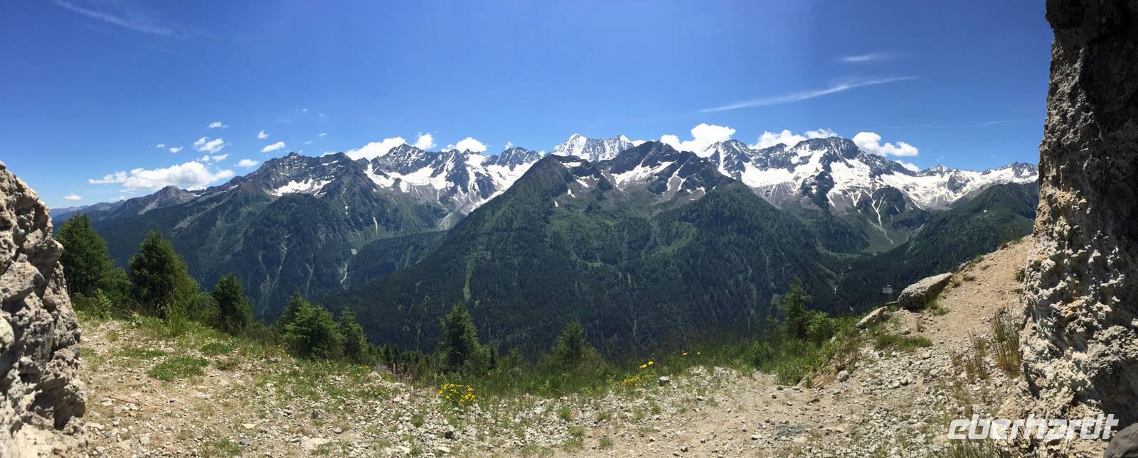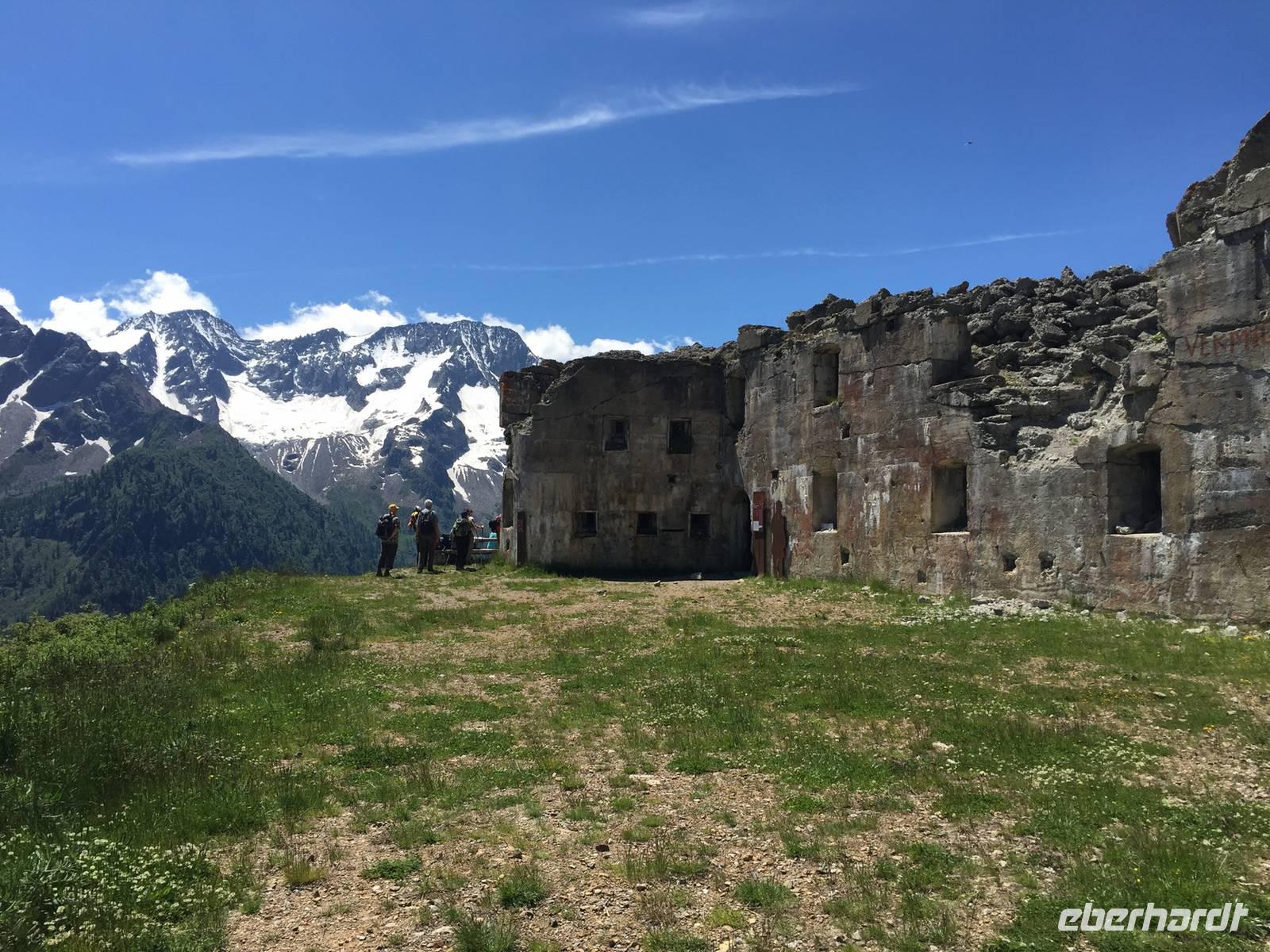 Nachdem wir mit der Seilbahn wieder "abgestiegen" sind, begann unsere letzte Wanderung bei Kaiserwetter an der Kapelle San Bartolomeo. Immer mit wahnsinnig tollen Blicken auf die Berge der Adamella- und Presanella-Gruppe sowie begleitet von bunten Blümchen wanderten wir in Richtung Fort Zacarana, welches im ersten Weltkrieg als Verteidigungsanlage gebaut wurde. Die Geschichte rund um den Ersten Weltkrieg begleitete uns weiter, denn wir wanderten hinab ins Strino-Tal und zum gleichnamigen Fort Strino, welches ebenfalls ein entscheidender strategischer Punkt im grausamen Krieg gewesen ist. Hier bekamen wir eindrucksvoll bewegte Bilder der damaligen Zeit gezeigt und konnten uns in der kleinen Ausstellung über das Leben der Soldaten informieren.