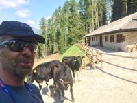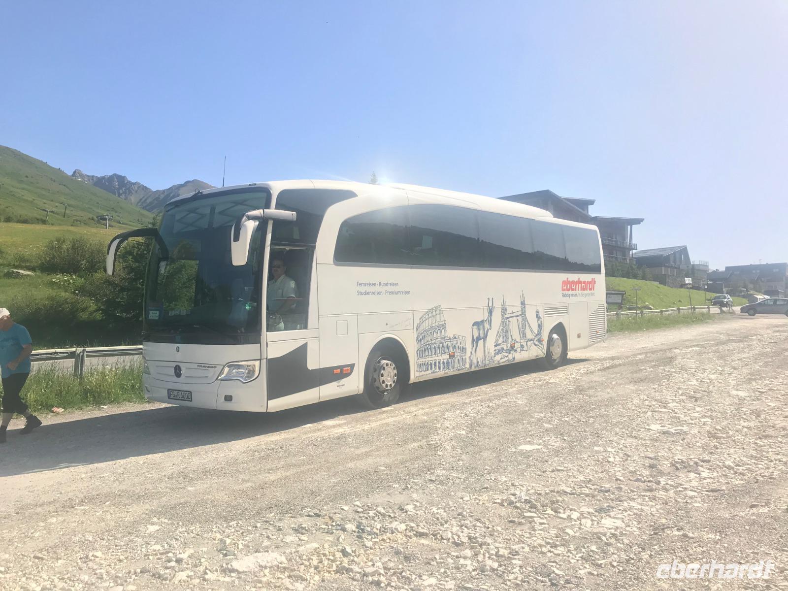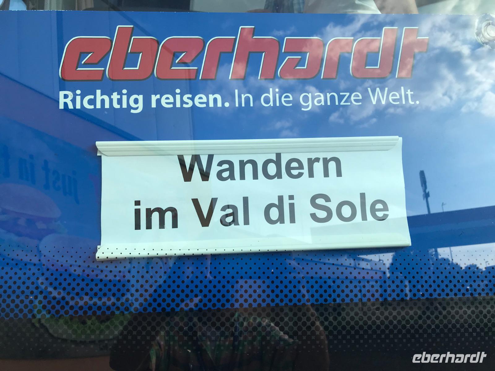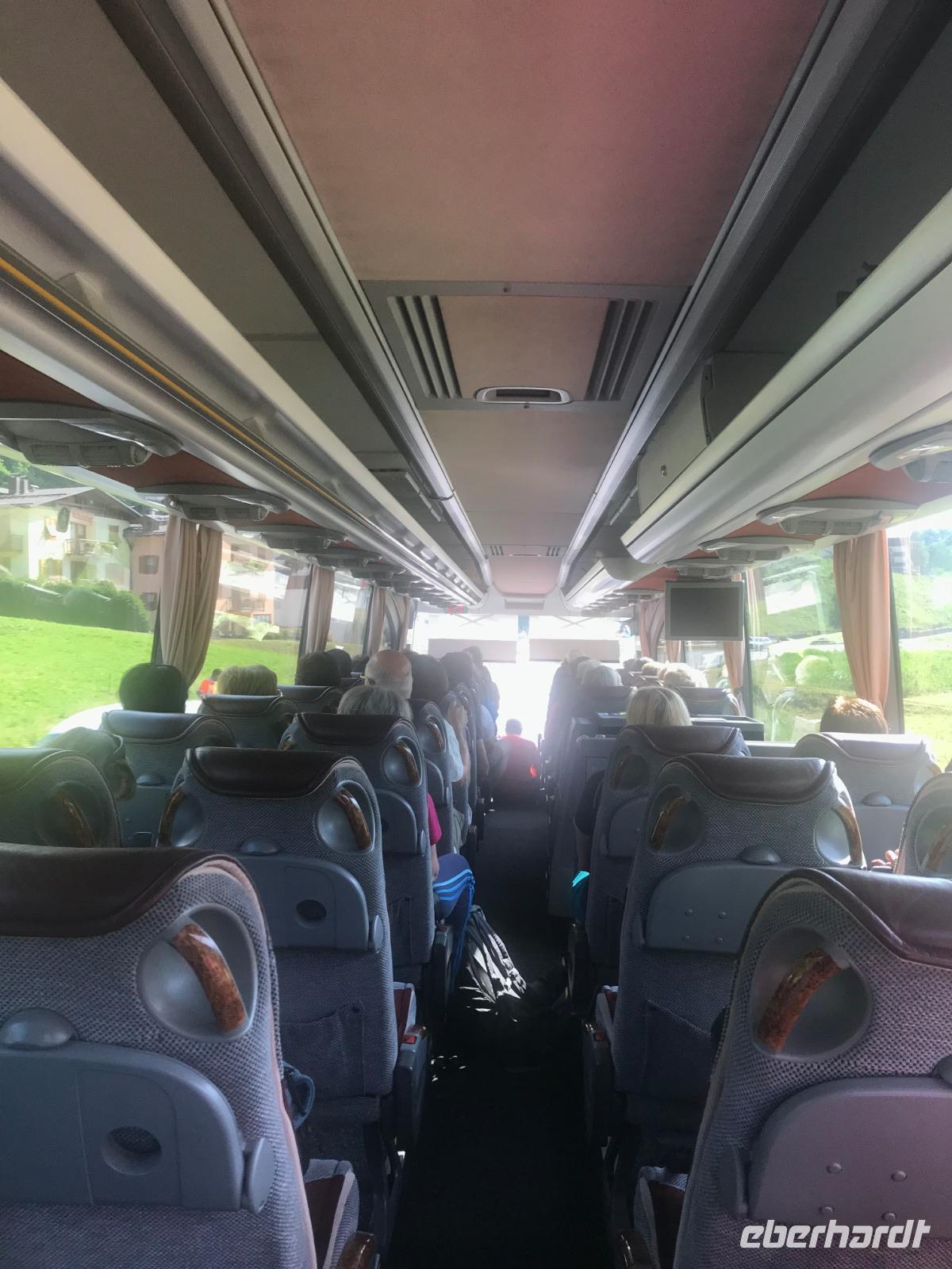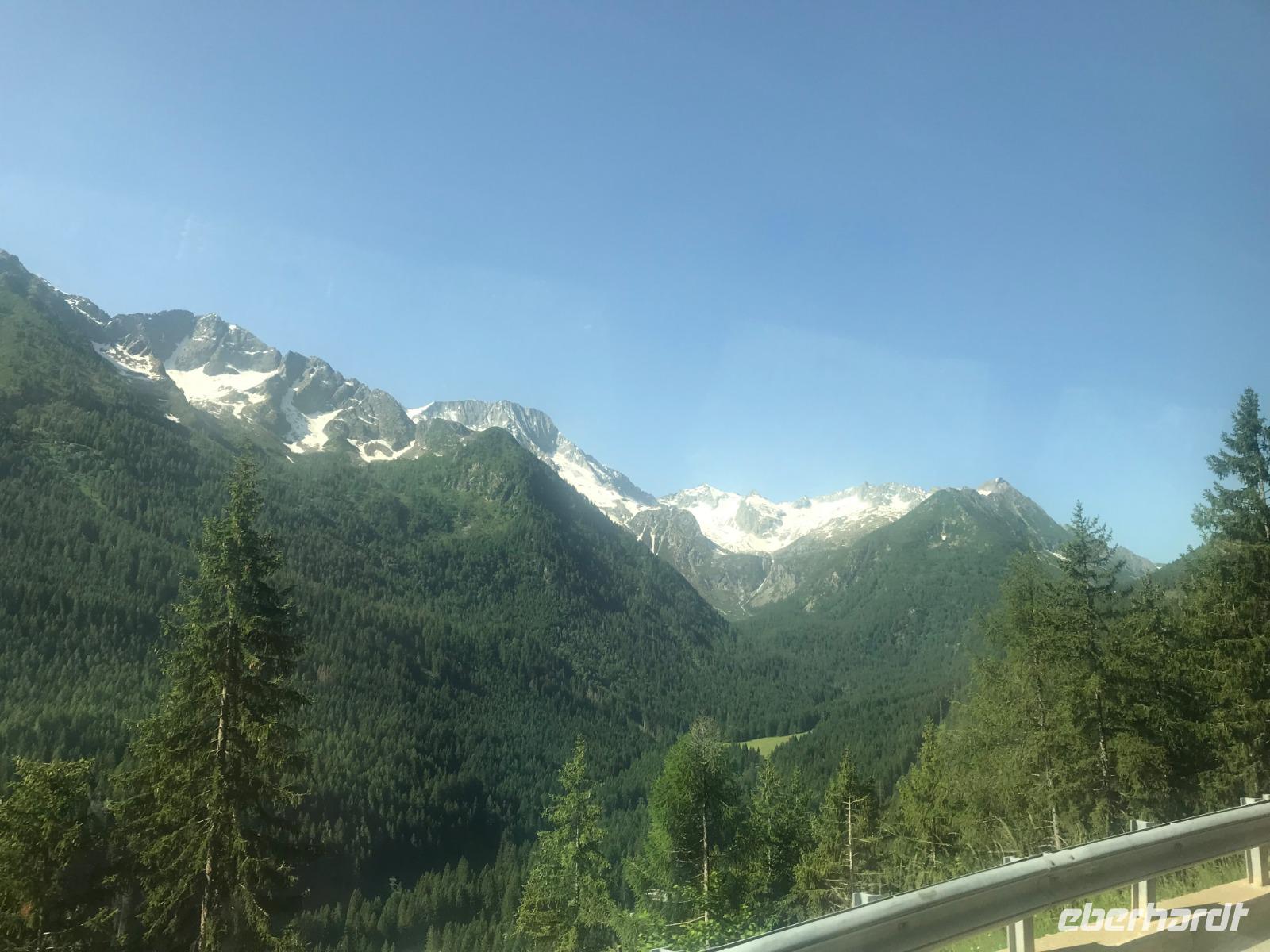Pünktlich starteten wir mit 21 Gästen an Bord. Zwecks Koordinierung der Lenkzeiten fuhr uns Jan und übergab mit leichtem Vorsprung in Müncheberg an Peter, der uns von da ab sicher durch die Woche chauffierte. Alle Transfers erreichten uns pünktlich. Bis kurz vor München hatten wir 30 min Vorsprung, trotz ordentlicher Pausen, herausgefahren. Es lief einfach gut. Mit an Bord waren die wanderbegeisterten Reisebegleiter Betina und Mathias, die mit für eine gute Organisation sorgen sollten. Der Vorsprung verflüchtigte sich am Abzweig nach Salzburg auf Höhe Allianzarena, wie immer war dort Einfädelstau. An der Mautstelle bei Sterzing schlug es dann in „Verspätung" um. Es zog nicht nur uns in den Süden. Die Sonne lachte und die Stimmung war perfekt. Die traumhaften Landschaften links und rechts trugen dazu bei.