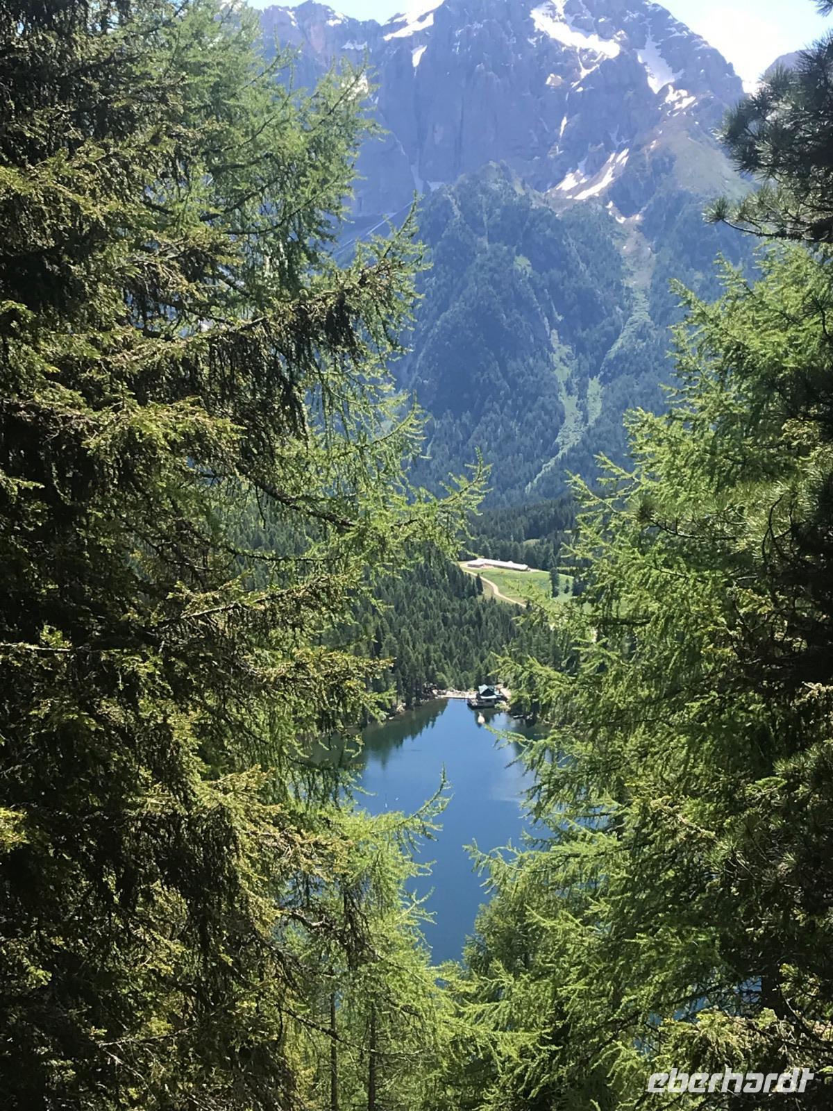Gemeinsam ging es für den Großteil der Gruppe bergab über den Bergsee Lago Covel, wo am Pejo paese der Bus wartete um uns zur Therme zu fahren.