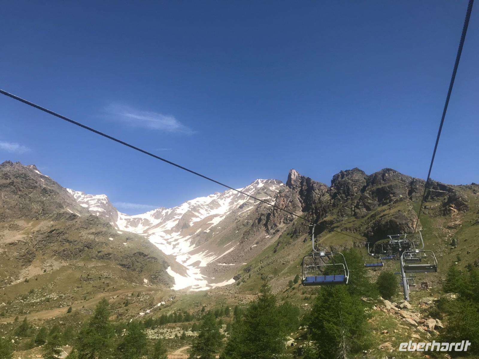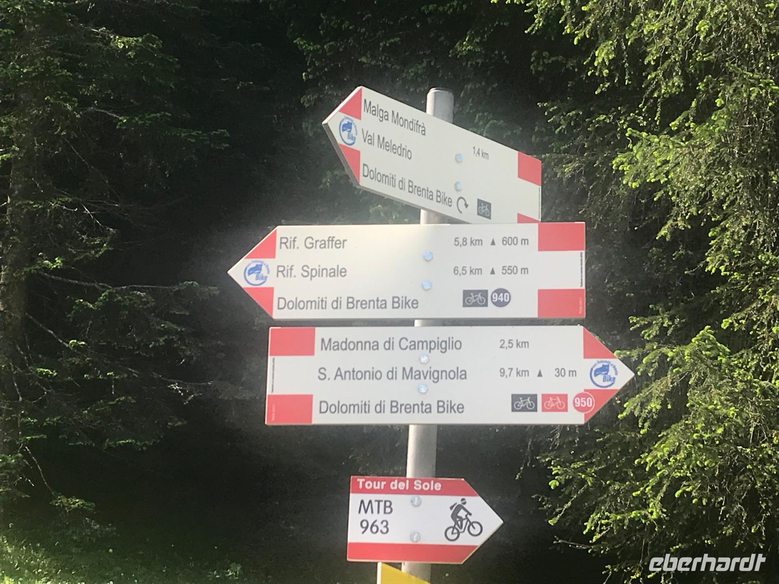 Wir fuhren wieder pünktlich 9:00 Uhr Richtung Madonna di Campiglio und starteten unsere Tour nördlich des Ortes am Lift, der bis zum Passo del Groste fährt.
