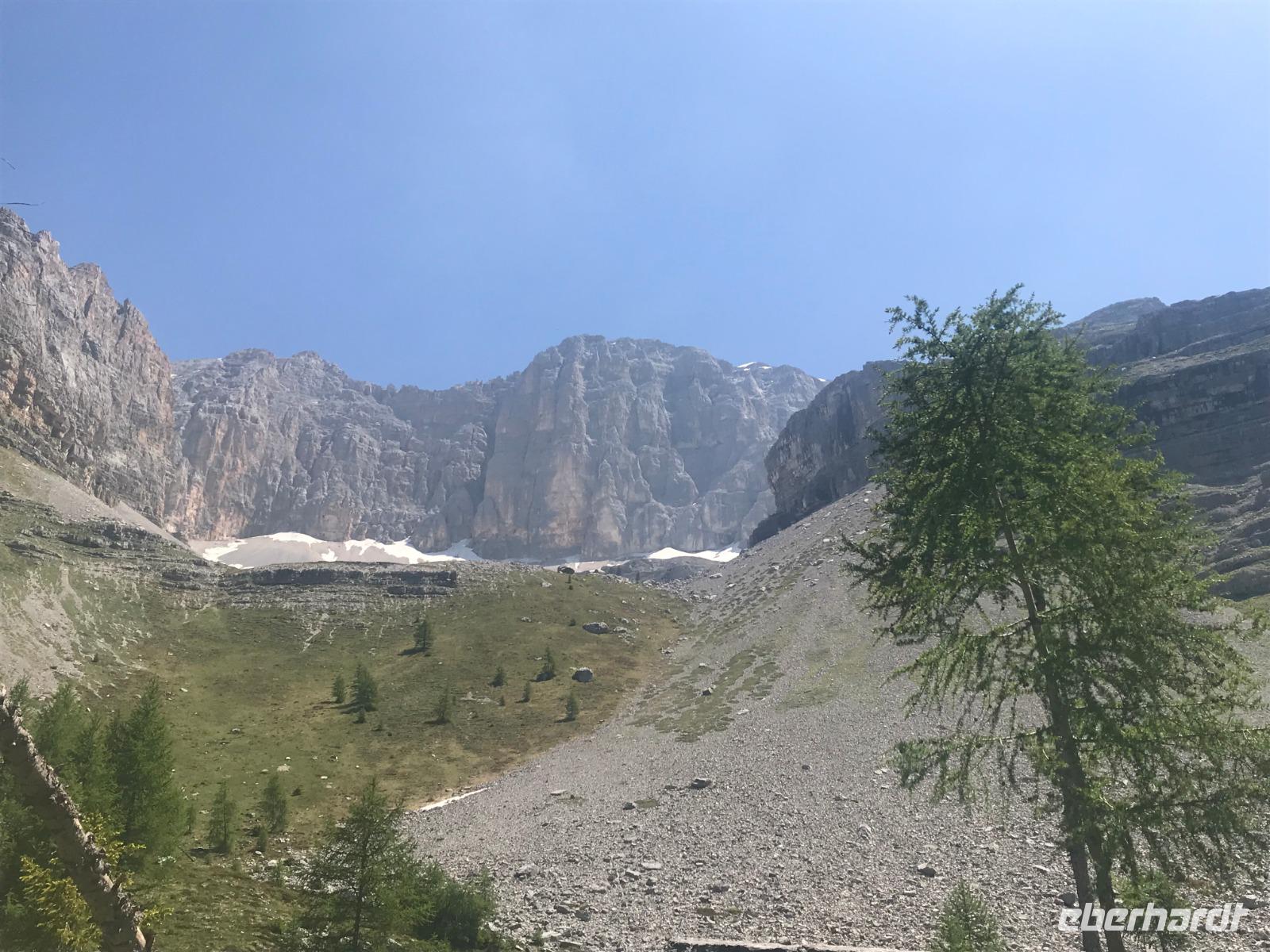 Nach schöner Rast vor der Hütte Rifugio Boch stiegen wir gemeinsam nach Modanna di C ab.