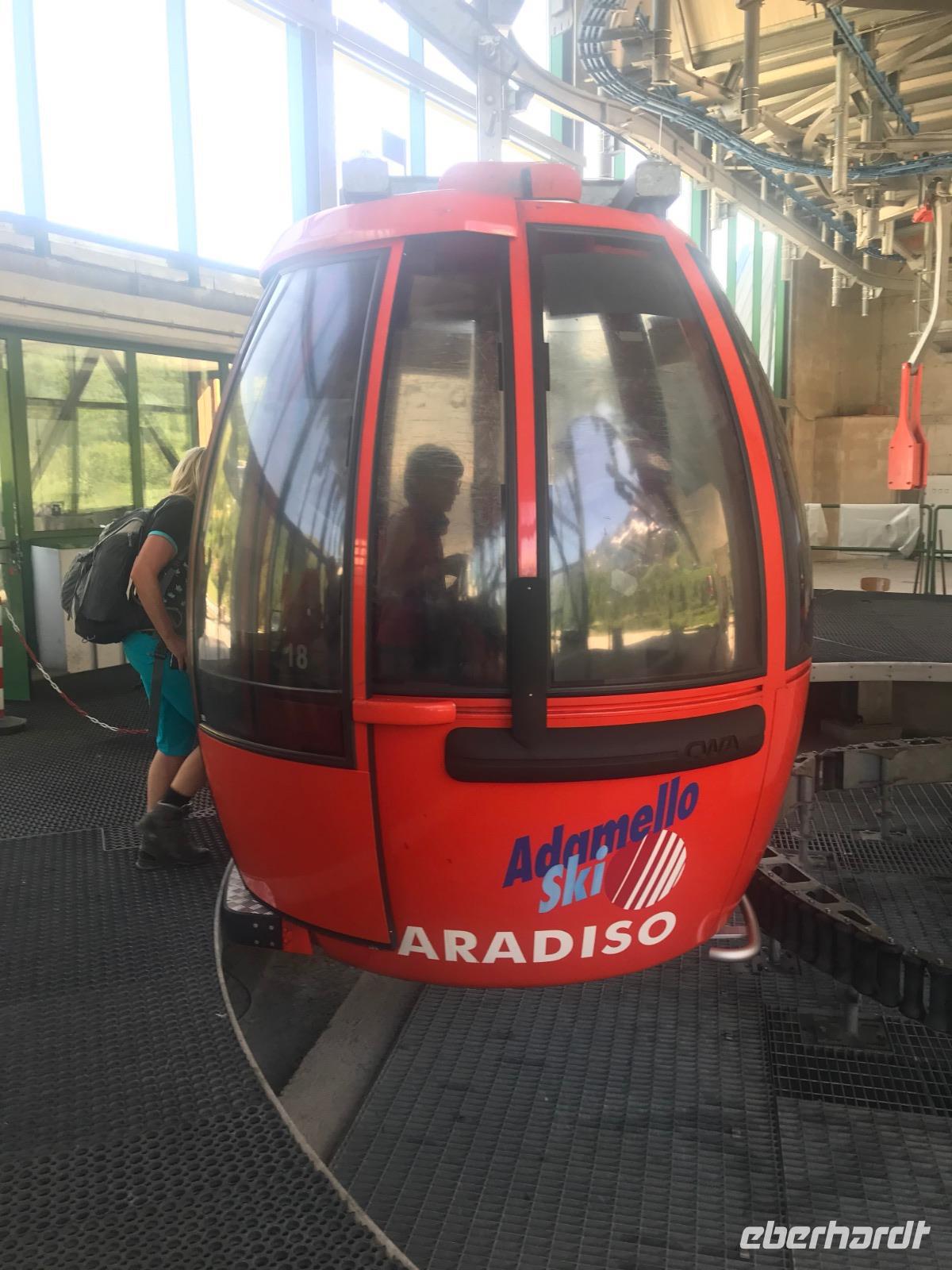 Wie es sich gehört standen wir 9:00 Uhr pünktlich zwecks Abmarsch zum Lift am Hotel. Es war nur ein Katzensprung vom Hotel zum Lift. Die Gästekarten, die wir am Vortag im Hotel erhielten, wurden in ein Ticket umgetauscht, mit dem alle Seilbahnen und die regionale Eisenbahn, sogar bis Trient, kostenfrei genutzt werden konnten. Nun konnte es losgehen und in nix Komma nix waren wir von 800 m auf 2.040 m Höhe geschwebt.