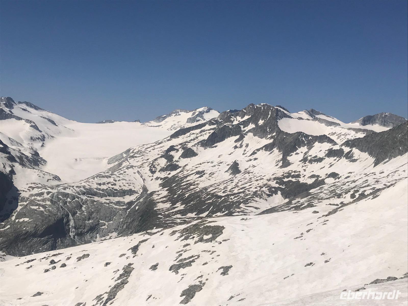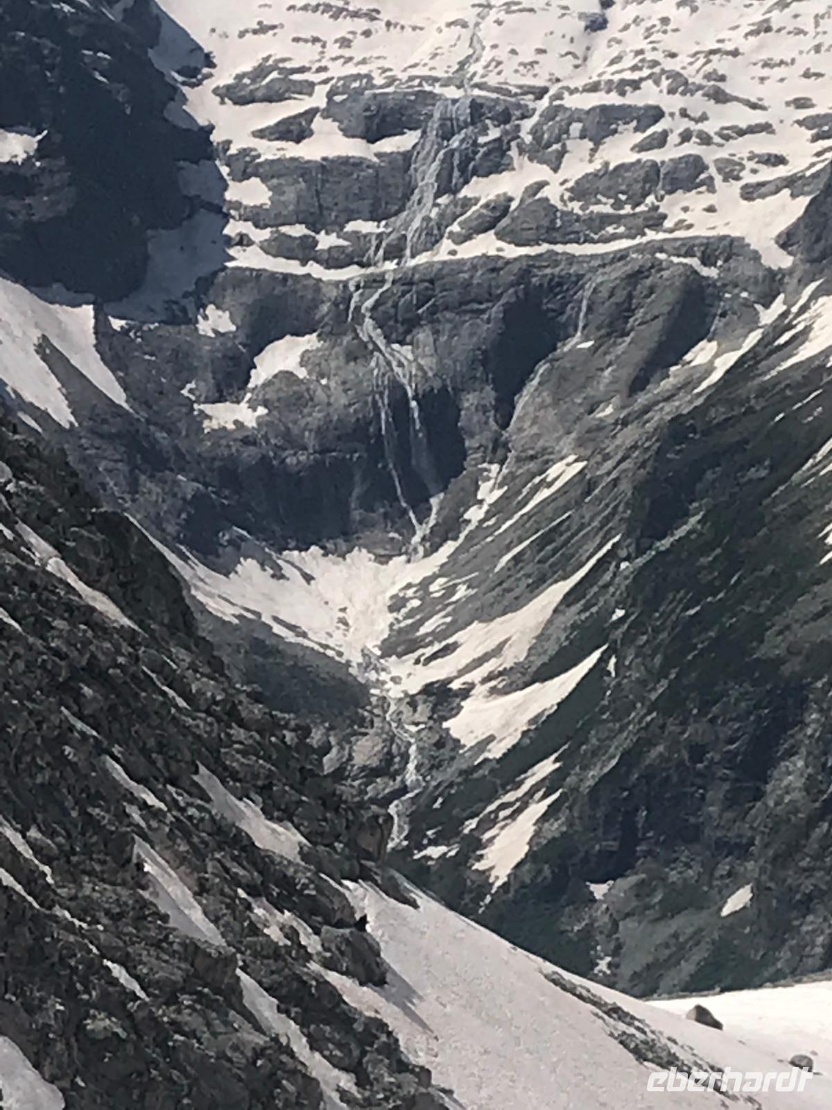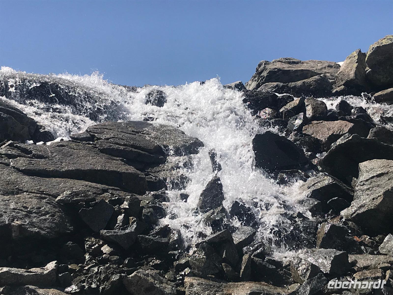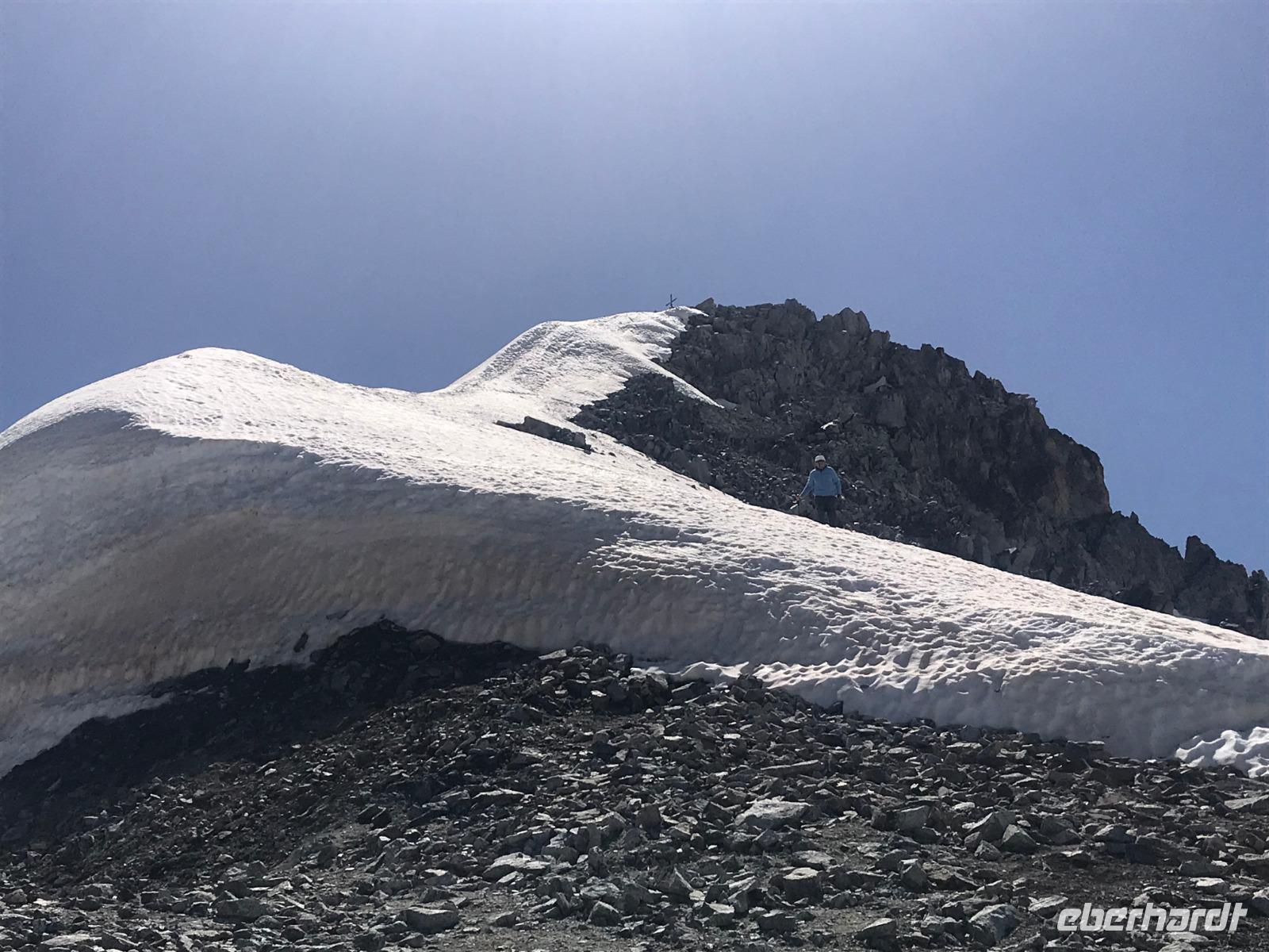 Interessant war zu beobachten, wie man versucht den Schnee vor der Sonne geschützt über den Sommer zu retten. Wir hatten das Glück dies nicht nur als Abdeckung registrieren zu können, sondern sahen auch die entsprechenden Arbeiten, die gerade ausgeführt wurden. In Steillage war das schon spannend.