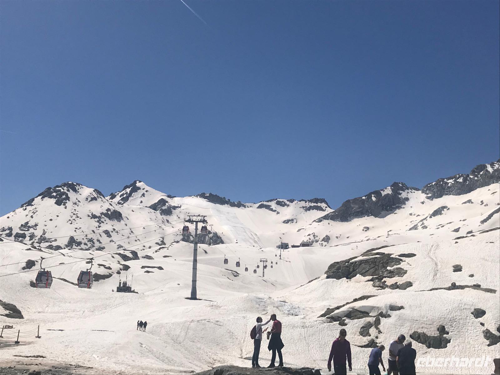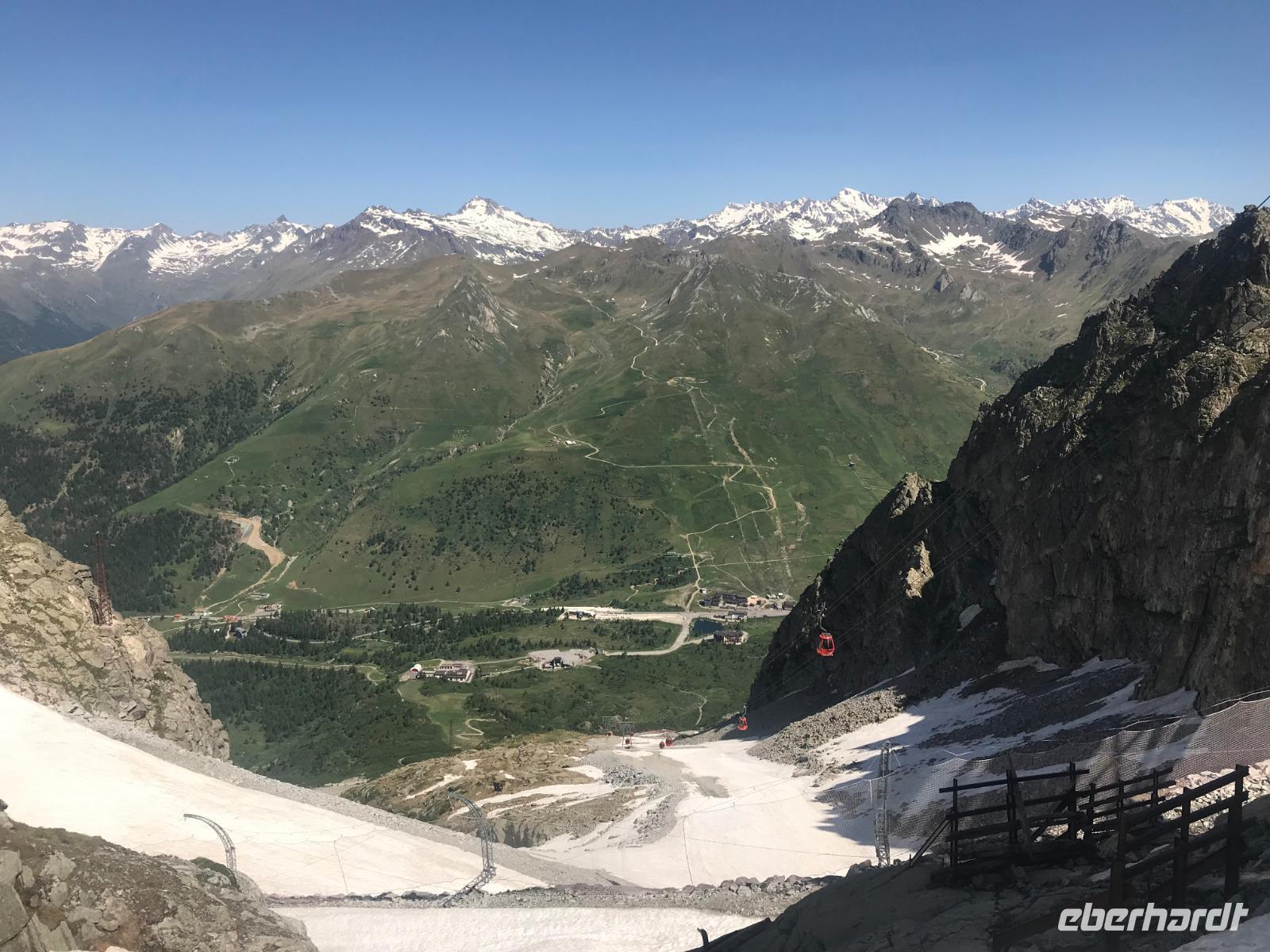 Mit dem Bus ging es zum Passo Tonale und so befanden wir uns kurz in der benachbarten Lombardei. Das erste Highlight des Tages war die Fahrt mit der Seilbahn von 1.883 m aus über Refugio Capanna Presena Richtung Cima Presena bis auf 2.997 m Höhe. Es empfing uns eine gigantische Schneelandschaft und das im Juni. Und wir verweilten lange, genossen Schnee und die Aussicht. Viele Fotos waren Pflicht.