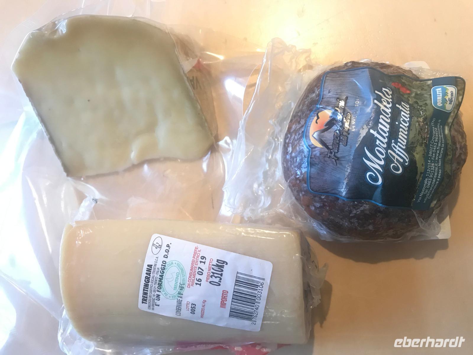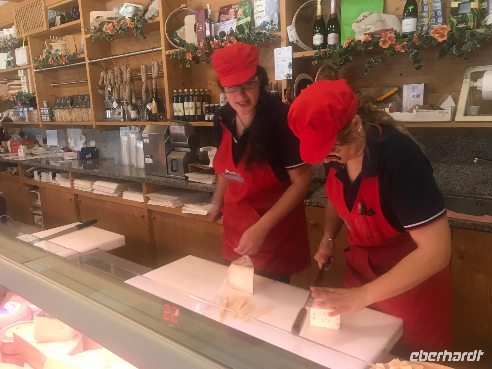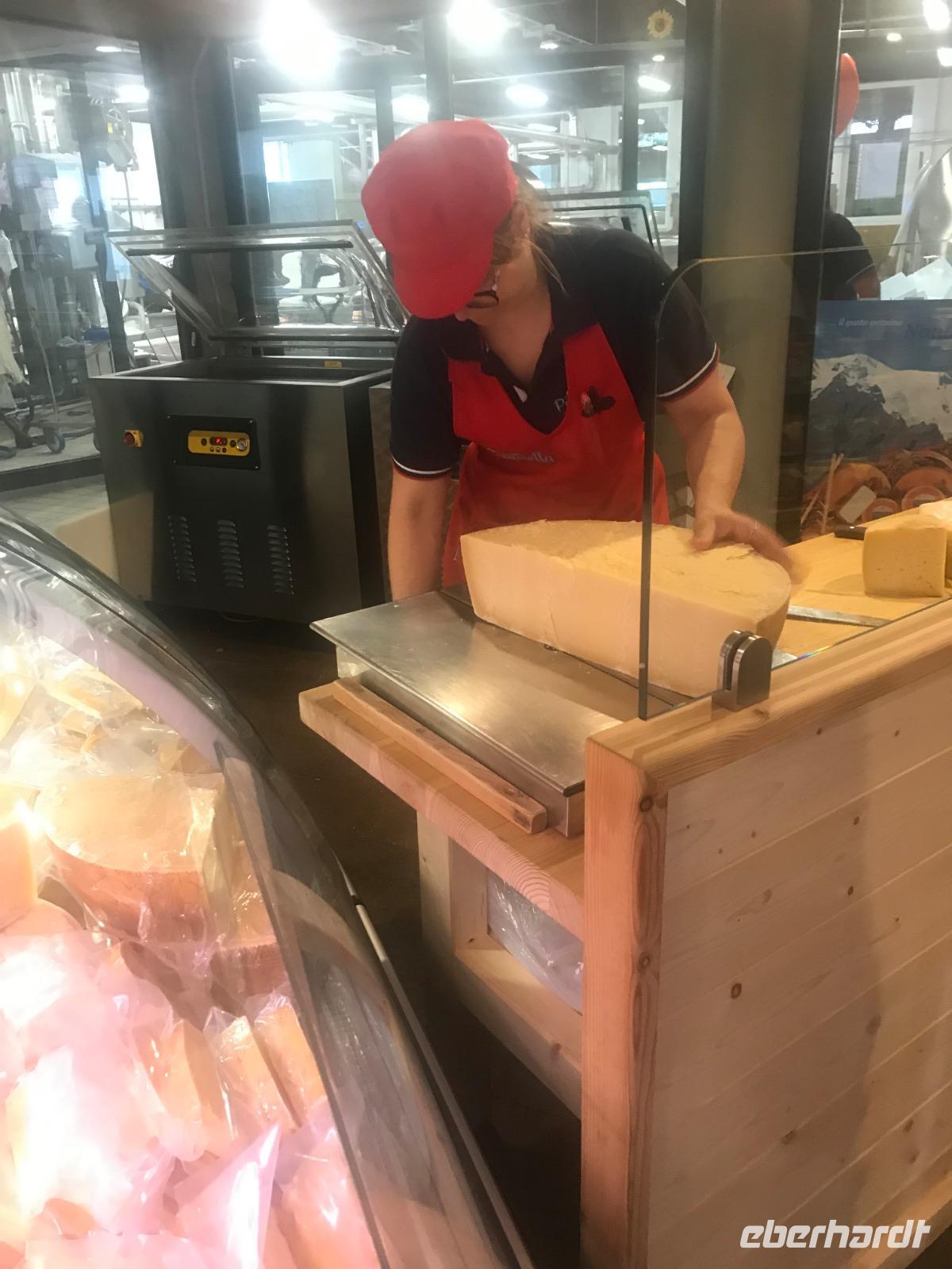 Jedoch wartete noch eine Überraschung auf uns. Wir besuchten die Käserei Caseificio Punto Vendita. Dort konnten wir vier Sorten Käse probieren und neben dem parmesanähnlichen Hartkäse war der Dolce Val di Sole der geschmackliche Renner. Und es wurde reichlich eingeschweißt für unsere Mitbringsel.