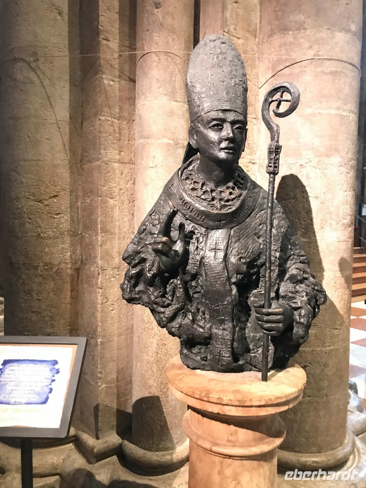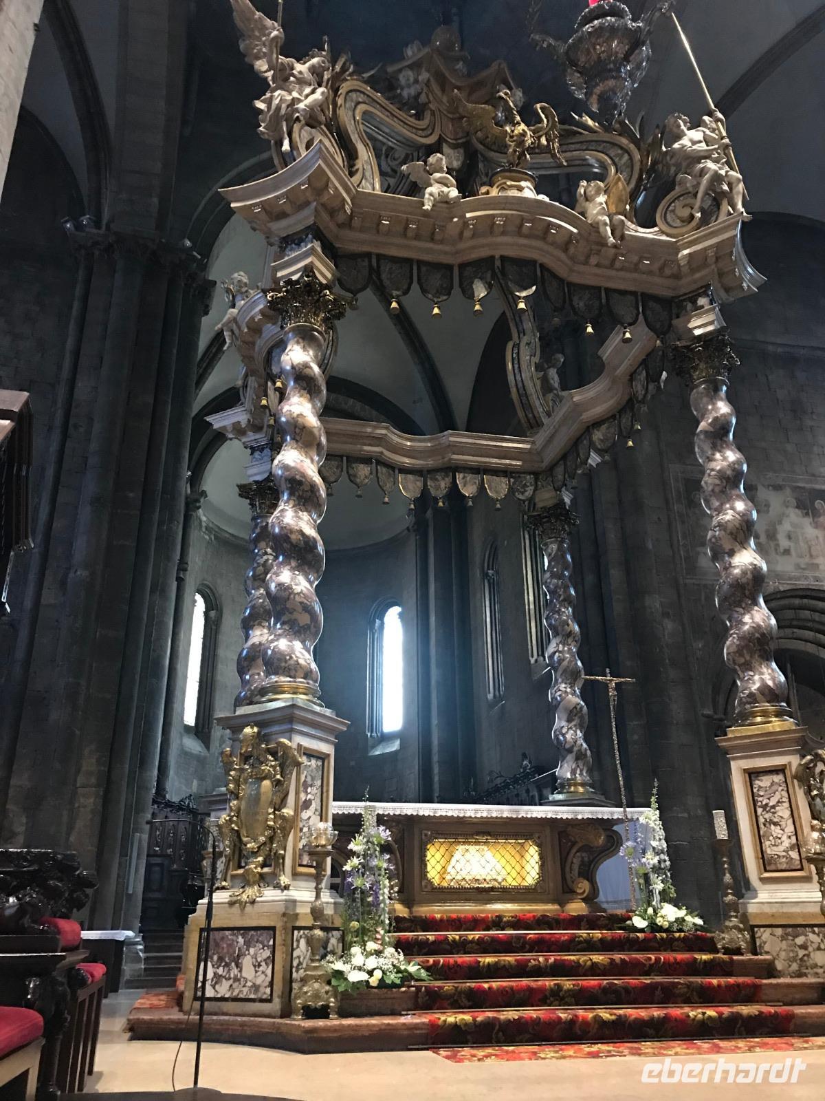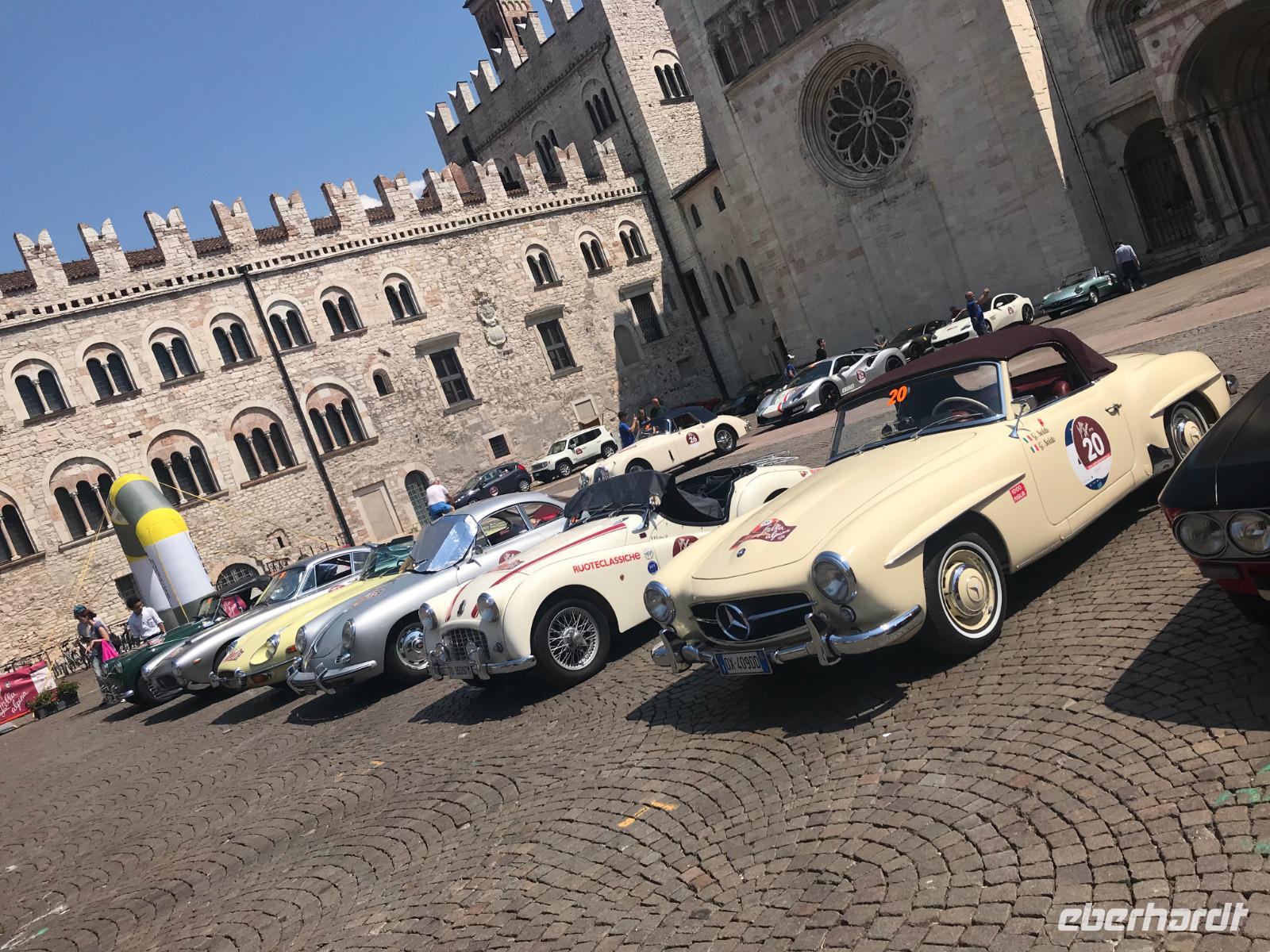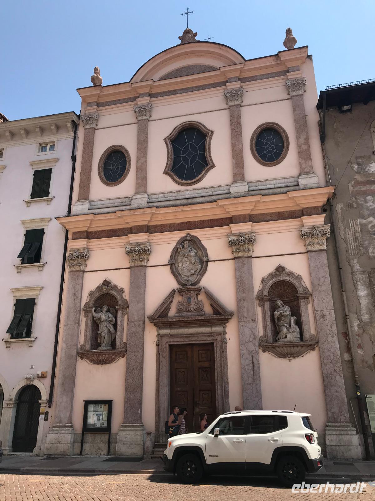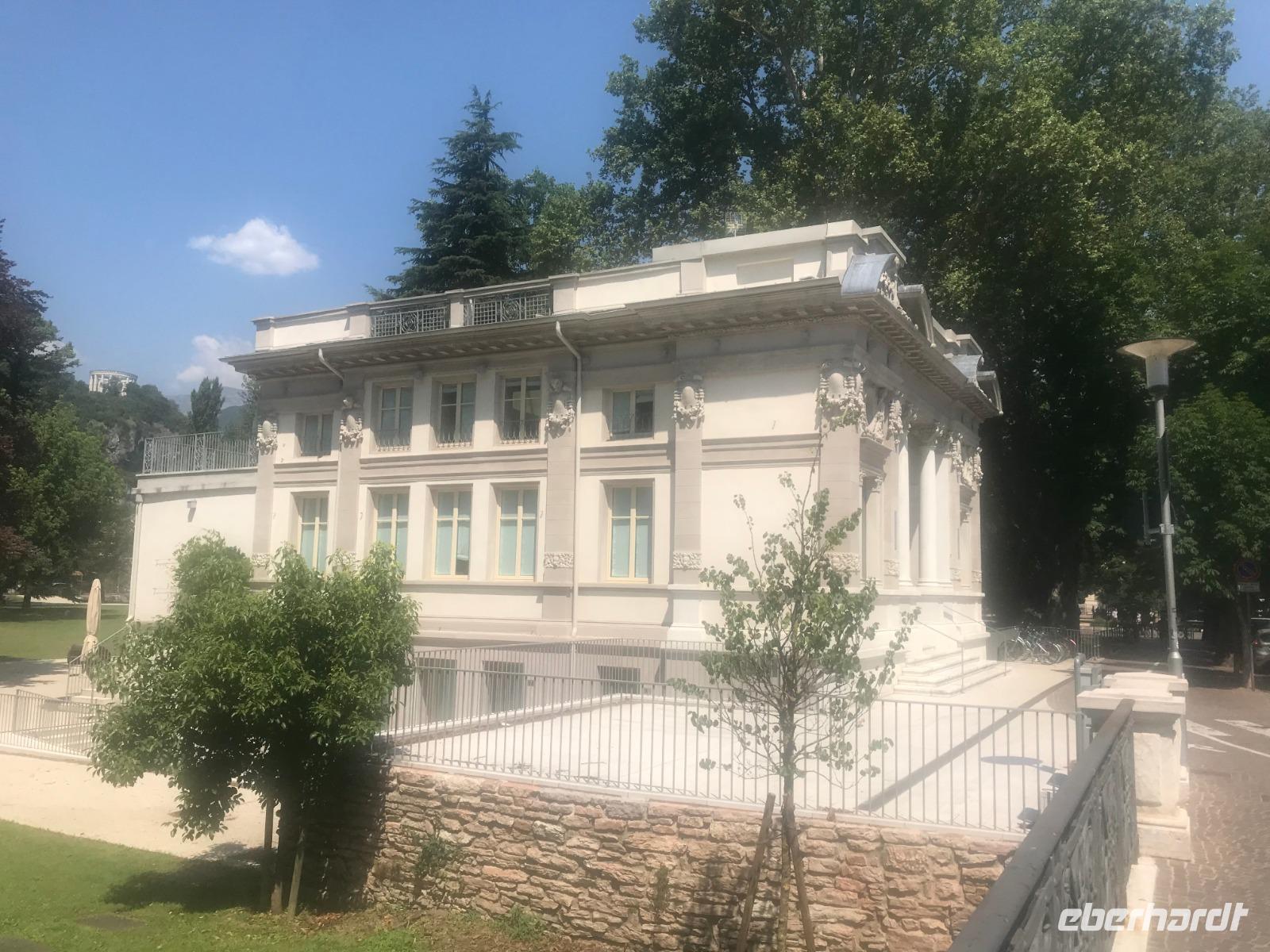 Frisch gestärkt ging es mit dem Zug 9:27 Uhr ab Daolasa (in unmittelbarer Nähe der Hotels) nach Trient. Wunderbare Fahrt in gut klimatisiertem Zug. Die Fahrt war kurzweilig und bot viele sehr abwechslungsreiche Ausblicke, z.B. auf den Lago di Santa Giustina, dem größten See der Region bei Cles. Dieser wurde zwischen 1943 und 1951 angelegt, reguliert die Noce, die Staumauer ist 152 m hoch und war seinerzeit die höchste Staumauer Europas. Kurz vor halb Zwölf erreichten wir die Hauptstadt des autonomen Gebietes Trentino. Anna, eine ehemalige Lehrerin aus Rovereto nahm uns am Bahnsteig in Empfang und führte uns 2 ¼ h durch die Stadt und das Castello. Trient ist nach Grenoble und Innsbruck mit 118.000 Einwohnern die drittgrößte Stadt der Alpen und in etwa so groß wie Jena oder Cottbus. Viele Palazzi und Kirchen konnten wir bewundern und wir erfuhren viel über Land, Leute und Architektur. Besonders in Erinnerung werden uns der Dom und das Castello del Buonconsiglio bleiben, von dem aus wir einen wunderbaren Blick auf die Stadt hatten.