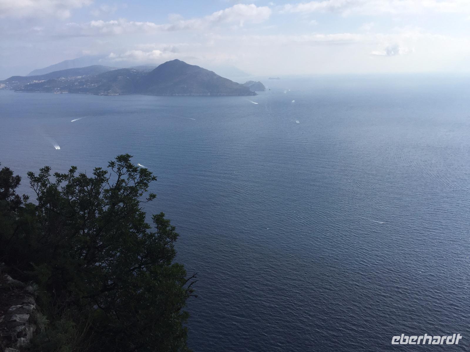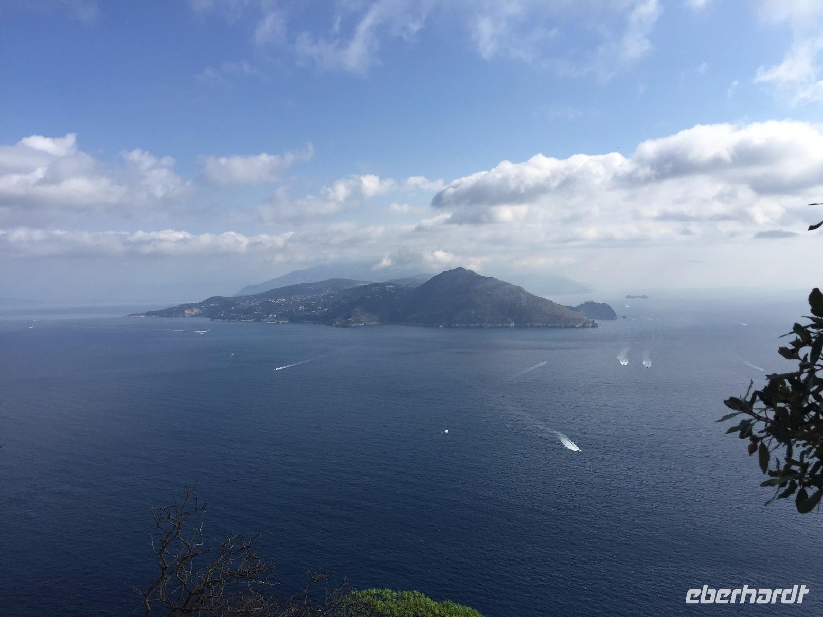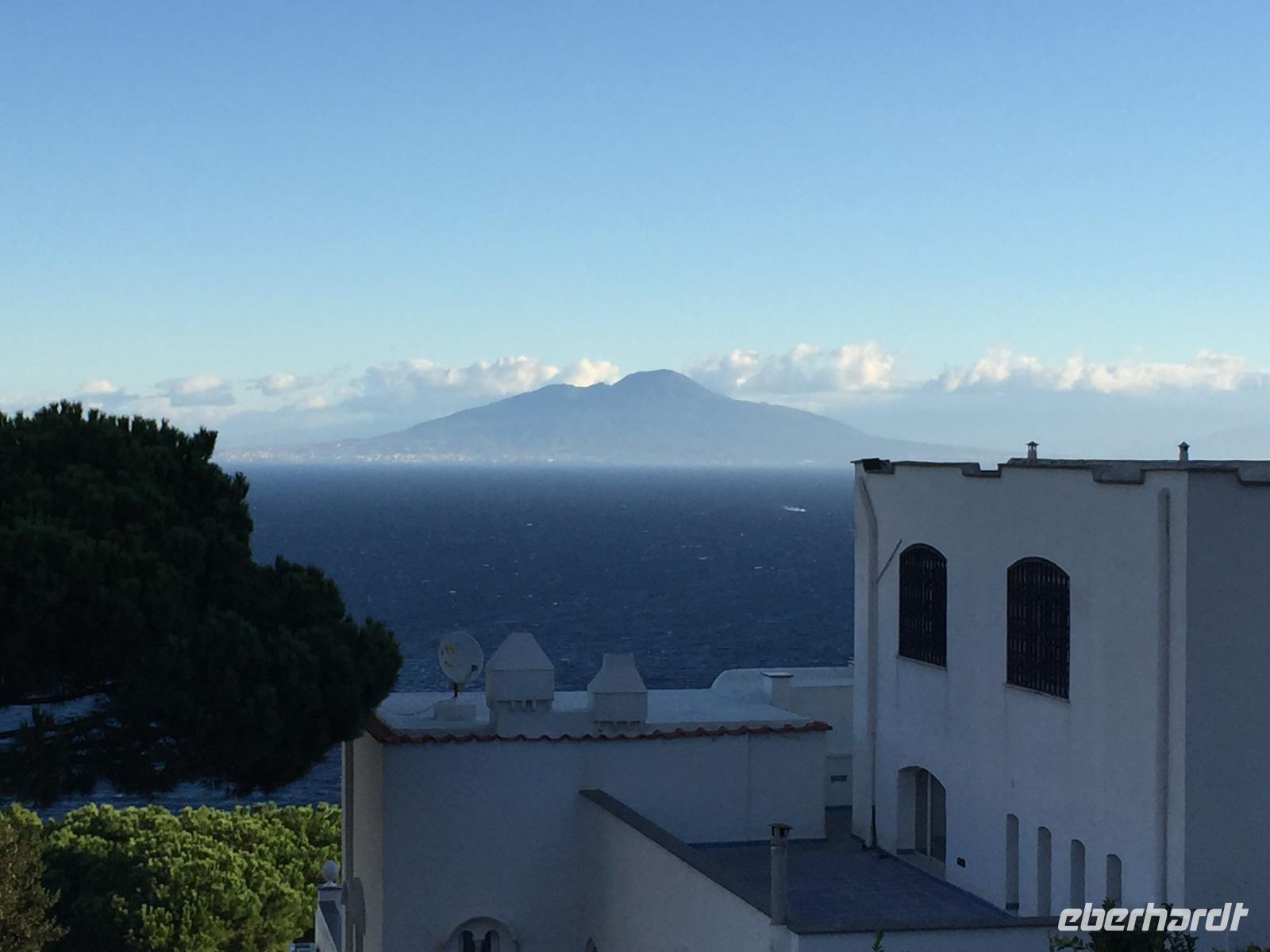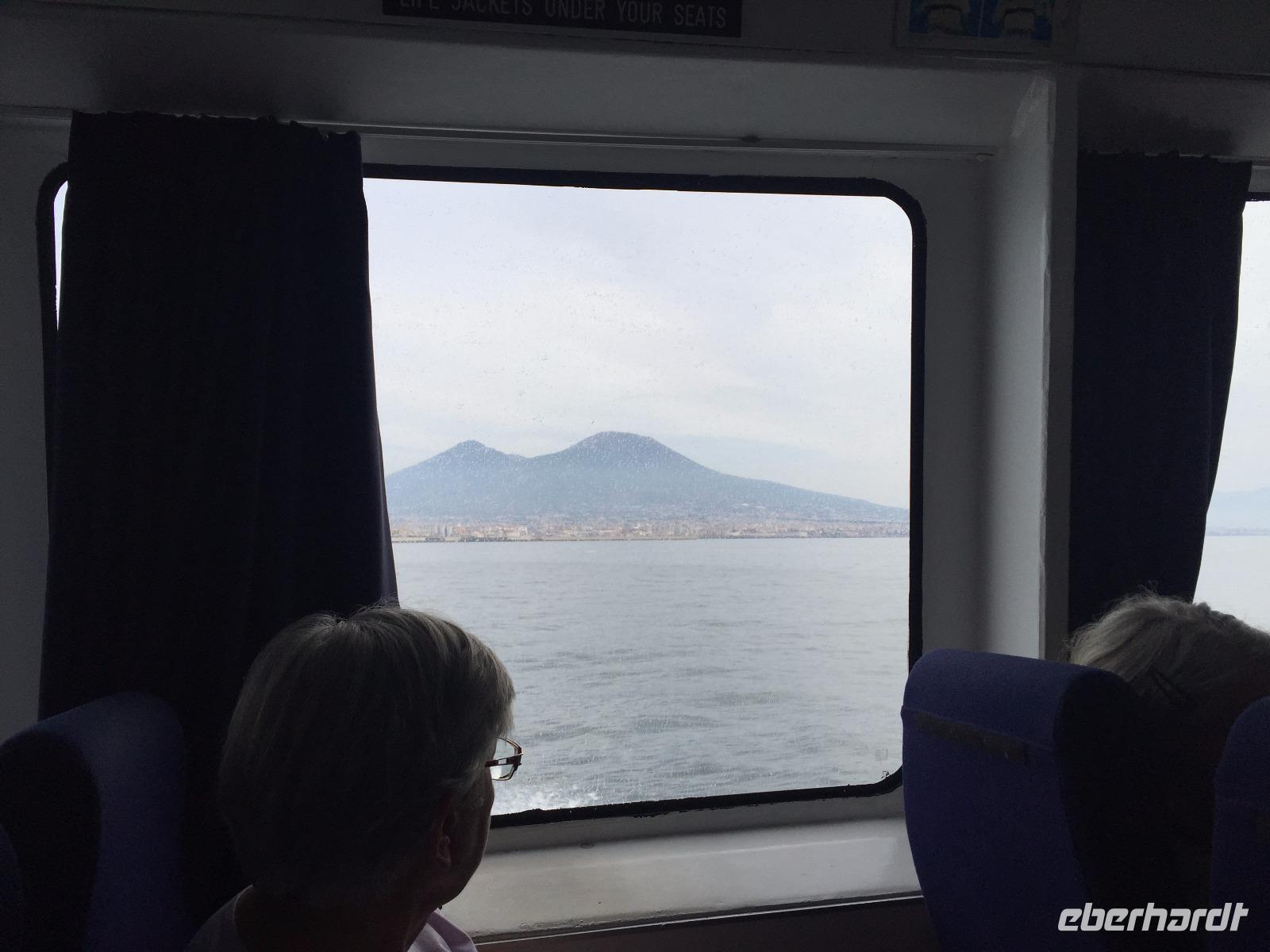 Mit einem letzten ausgiebigen Frühstück starten wir in den Tag, der leider die Rückreise bedeutete. Unsere Koffer werden bereits zum Hafen Marina Grande hinunter gebracht und wir spazieren ein letztes Mal gemütlich über die Via Roma. Die Insel erwacht langsam und die Capresen bereiten sich auf den Tag vor. Die Luft ist heute merklich frischer und der Wind stärker. Dadurch haben wir einen super Blick auf den Golf von Neapel, den Vesuv (endlich ganz ohne Wolken) und die Halbinsel Sorrent. Mit der Standseilbahn erleichtern wir uns den Weg hinunter zum Hafen. Die ersten Tagestouristen strömen schon wieder von den Schnellfähren aus Neapel oder Sorrent für ihre kurze Stippvisite und wir verabschieden uns mit einem letzten Blick auf die mondäne und wohl bekannteste Insel der Welt.