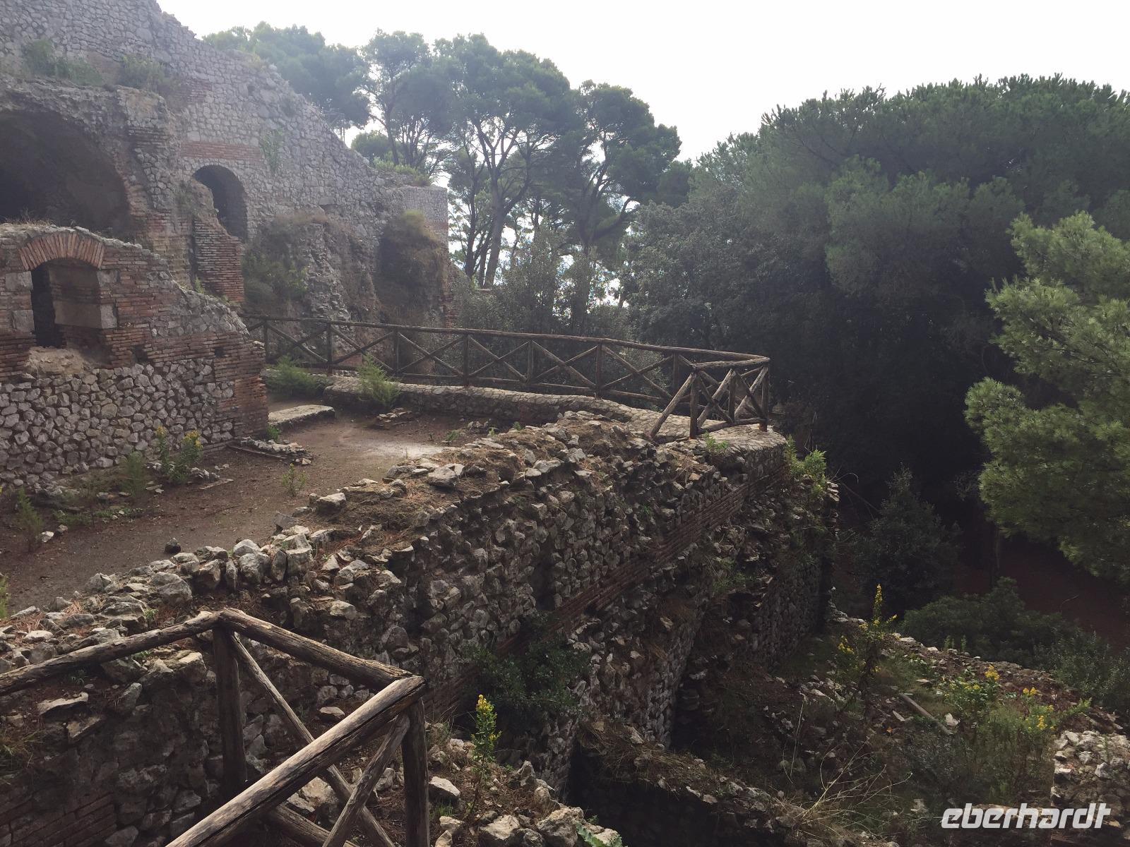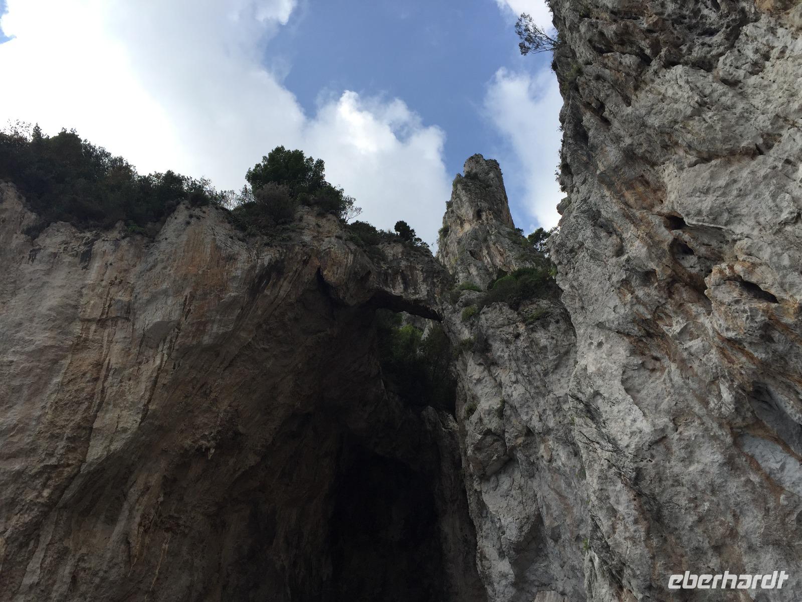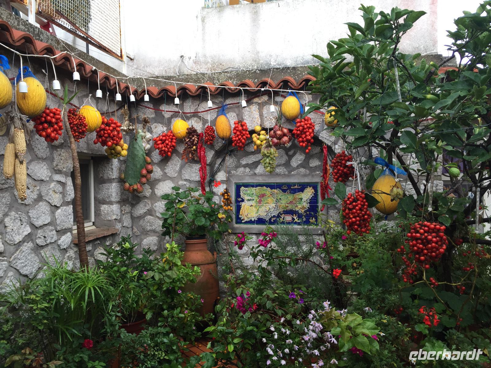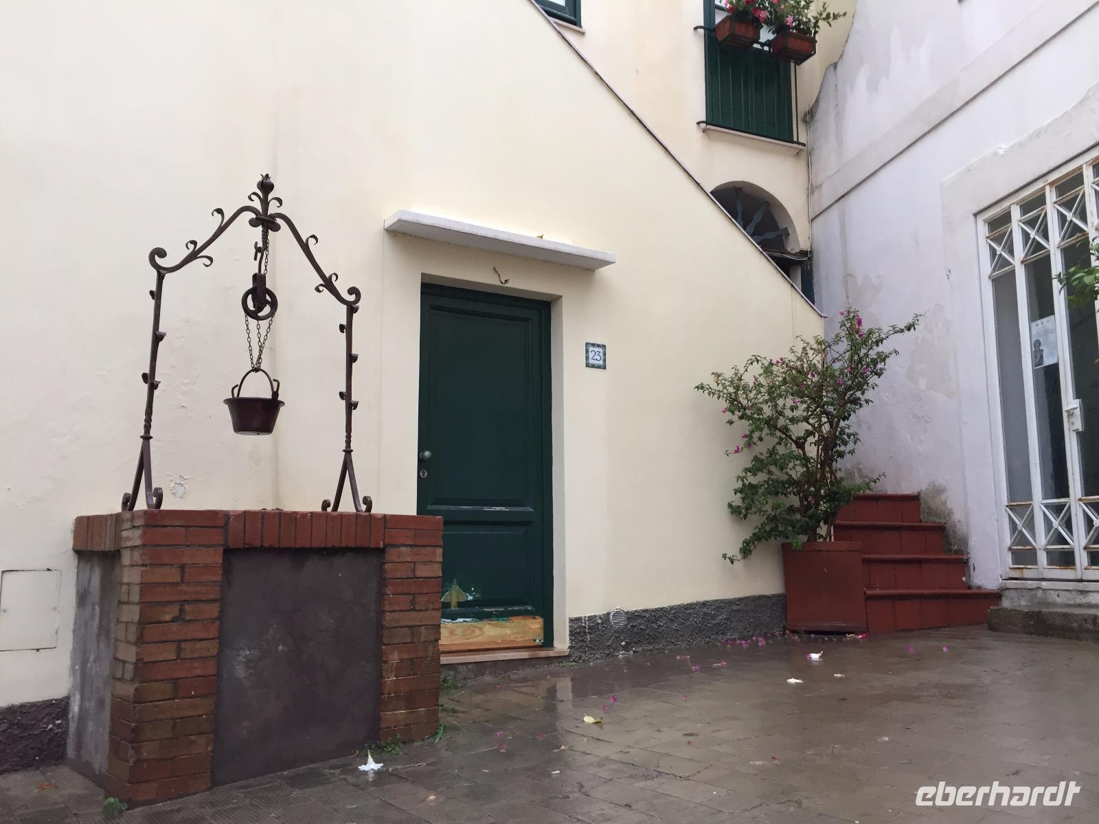 Da der Regen leider nicht nachlassen will und wir uns schon nicht mehr wohl fühlen in unseren durchnässten Schuhen, beenden wir die Führung hier und ziehen die Freizeit der kommenden Tage einfach vor. Wir haben ja immerhin noch 2 volle Tage auf der Insel vor uns und müssen nicht heute Abend wieder zurück aufs Festland (wie 90% der Capri-Besucher).