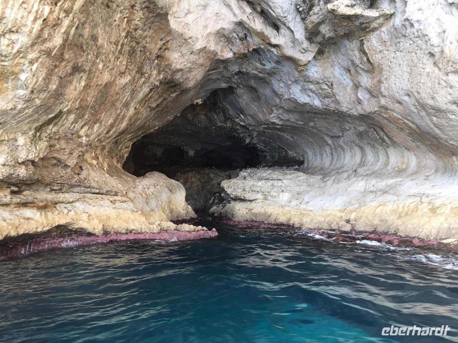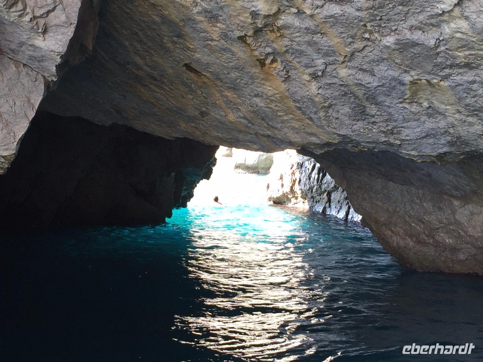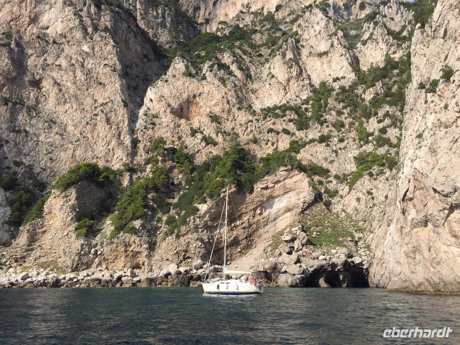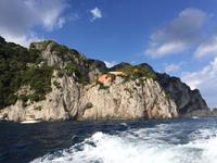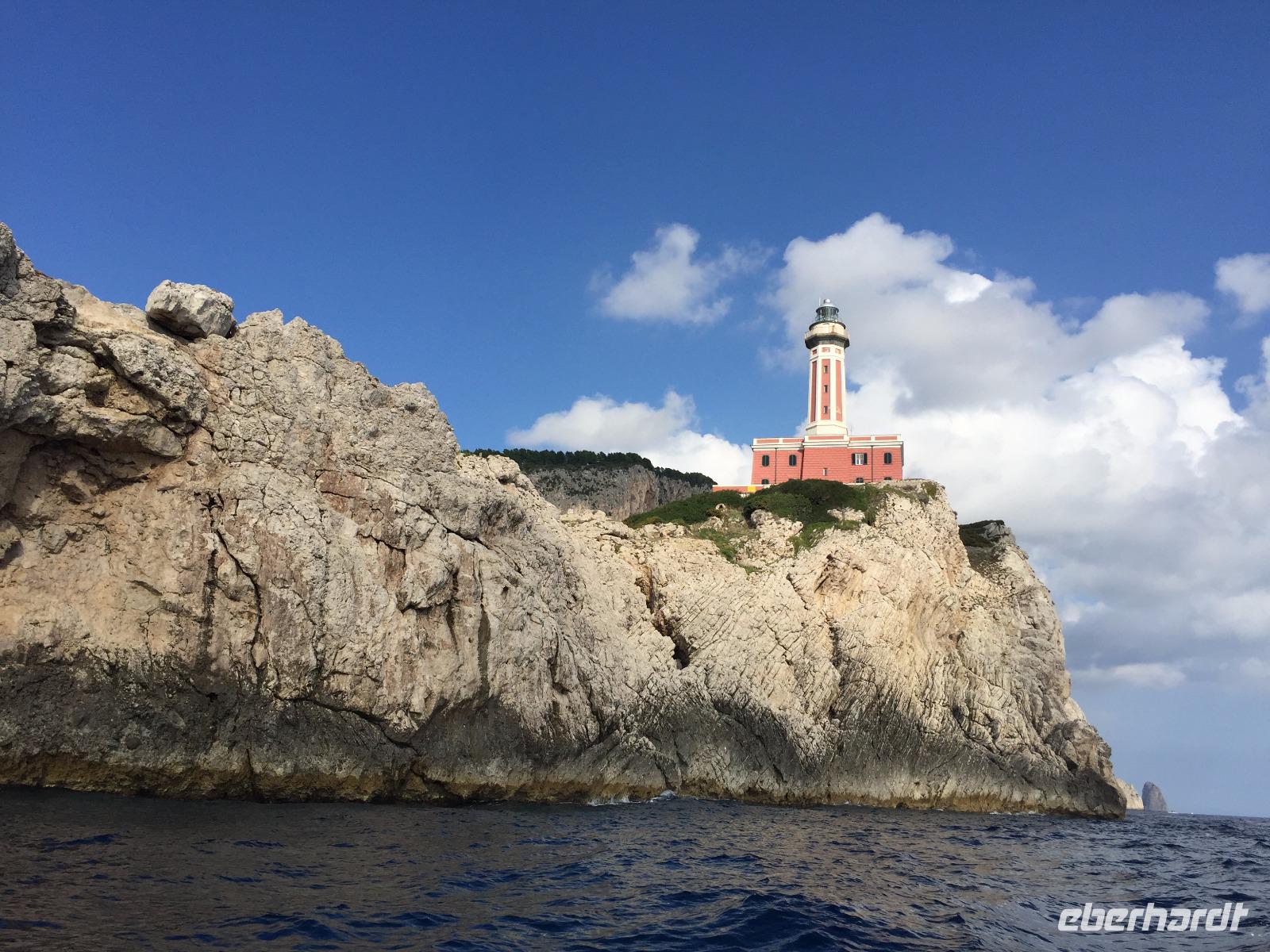 Gemeinsam fahren wir am Nachmittag hinunter zur Marina Grande, wo unser Bootsmann schon für die Inselrundfahrt auf uns wartet. Wir genießen die aussichtsreiche Fahrt in unserem privaten Boot und lernen die Insel aus einer ganz anderen Perspektive kennen. Annamaria kann den Bootsmann überreden, dass wir auch bei dem recht aktiven See die komplette Runde um die Insel machen. Wir sehen DIE Wahrzeichen der Insel - die Faraglioni-Felsen, viele Grotten (weiße Grotte, grüne Grotte, blaue Grotte), den Arco Naturale von der Wasserseite aus, den Hafen Marina Piccola (und das Haus von Annamaria) und die Via Krupp, ein historischer Serpentinenpfad an der Südküste der Insel. Mit einem Limoncello stoßen wir auf eine gelungene Inselrundfahrt und sicherlich einem weiteren Höhepunkt unserer Reise an.