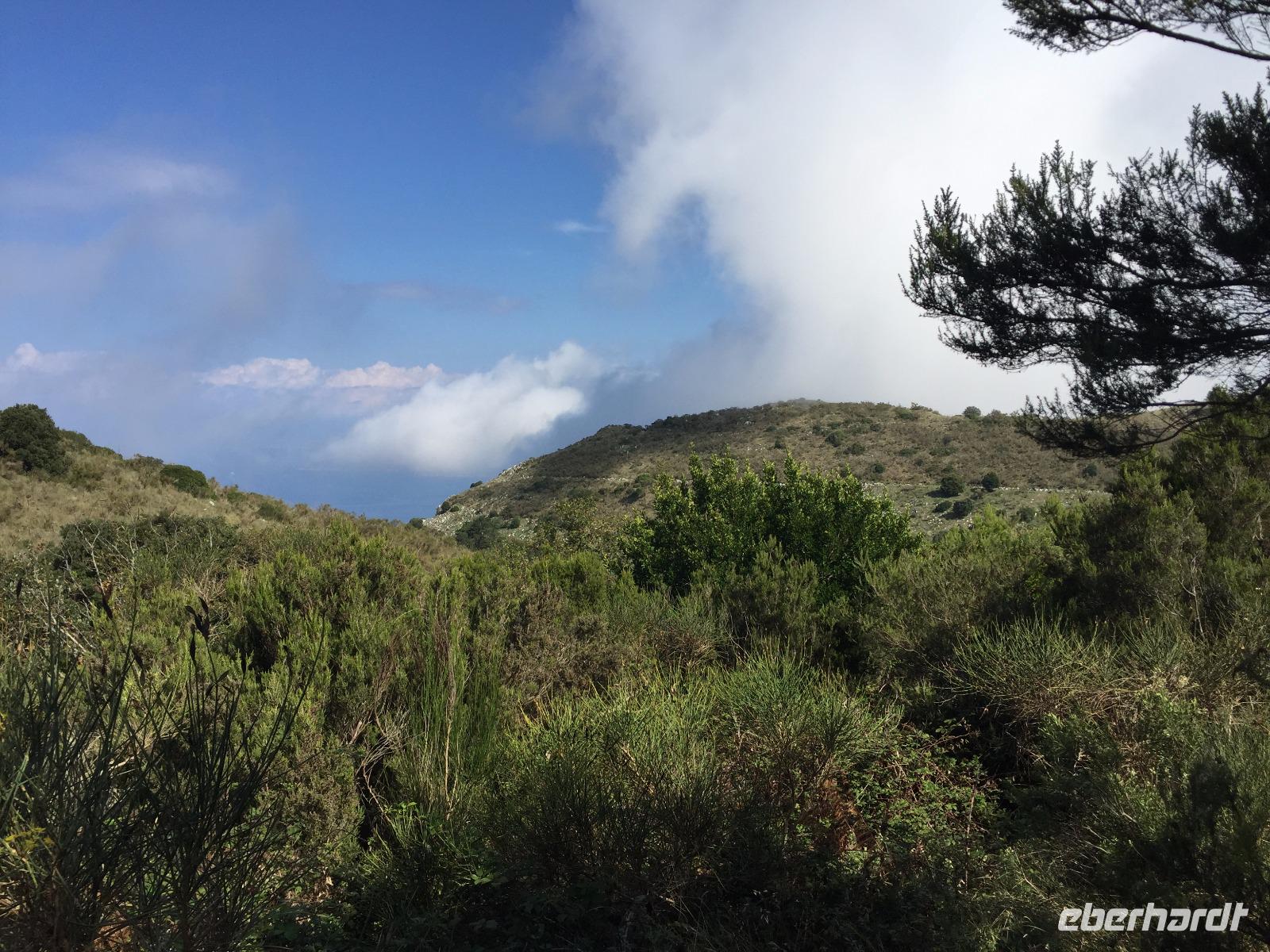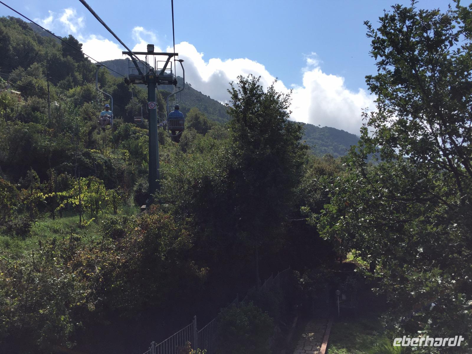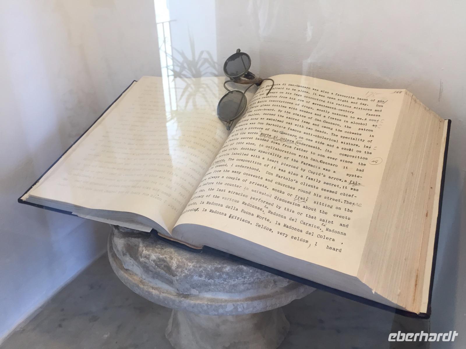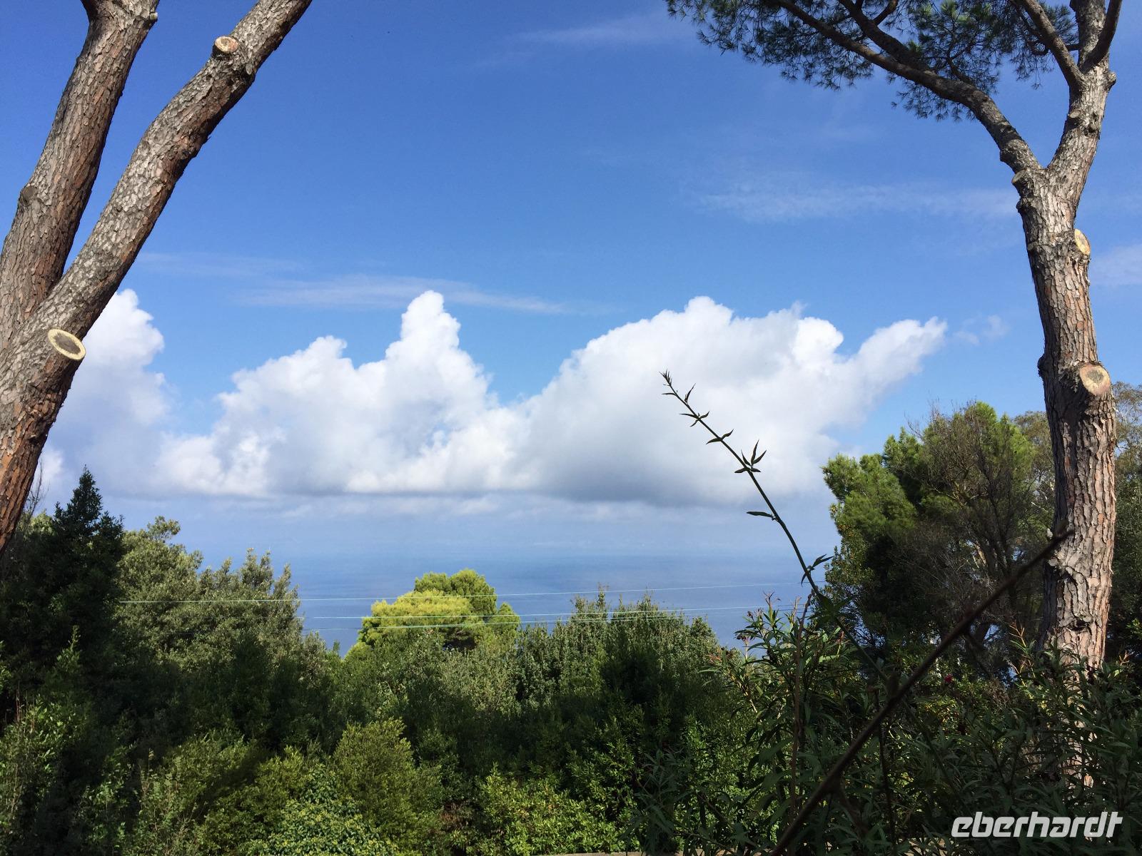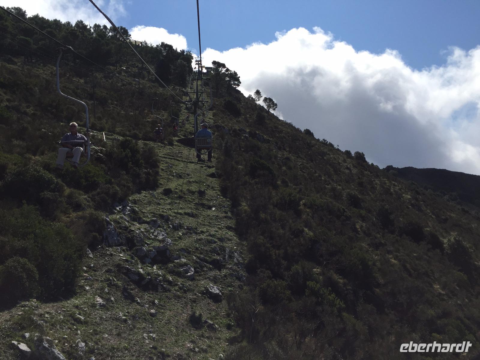 Annamaria führt uns über die Viale Axel Munthe zur Villa des berühmten schwedischen Arztes und Schriftstellers, der mit dem Buch von San Michele Weltruhm erlangte. Wir besichtigen die Wohn- und Arbeitsräume der schönen Villa und bestaunen den wunderschönen Garten mit dem tollen Blick auf die Insel. Nach ein wenig Freizeit zum Bummeln geht es hoch hinaus. Mit dem Sessellift (Einzelsitzer) schweben wir auf den höchsten Punkt der Insel - auf den 589 Meter hohen Monte Solaro. Der spektakuläre Ausblick bleibt uns durch den aufsteigenden Nebel an der Südseite der Insel leider verwehrt. Wir suchen uns ein ruhiges Fleckchen und genießen ein kleines Picknick, typisch mit Panini Caprese (Baguette mit Tomaten und Mozzarella) und guten Wein.