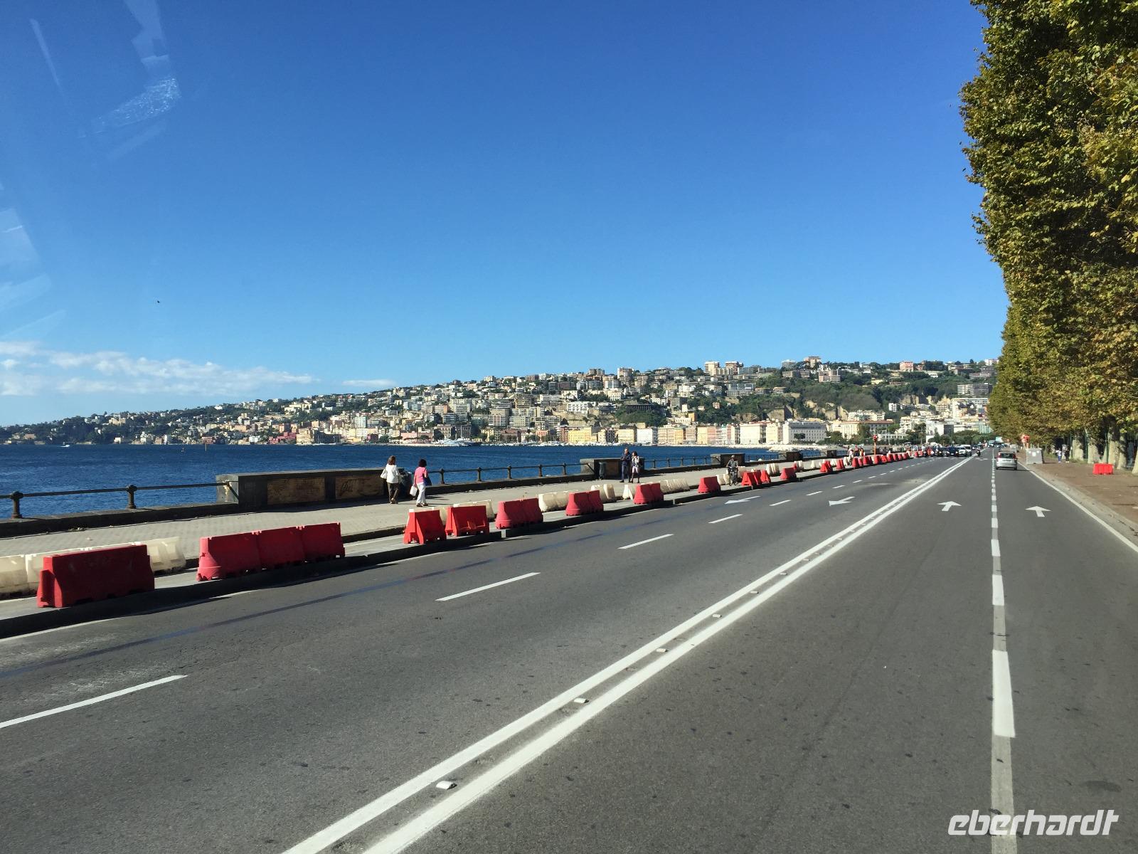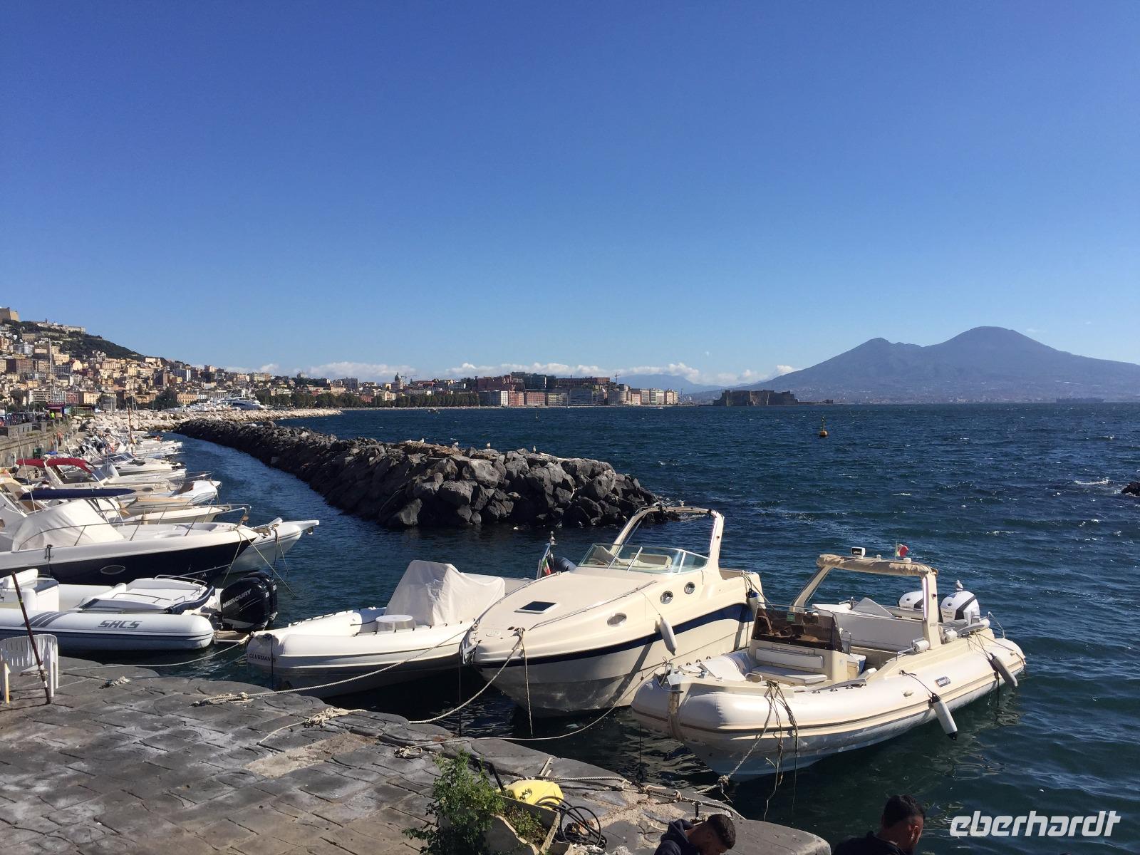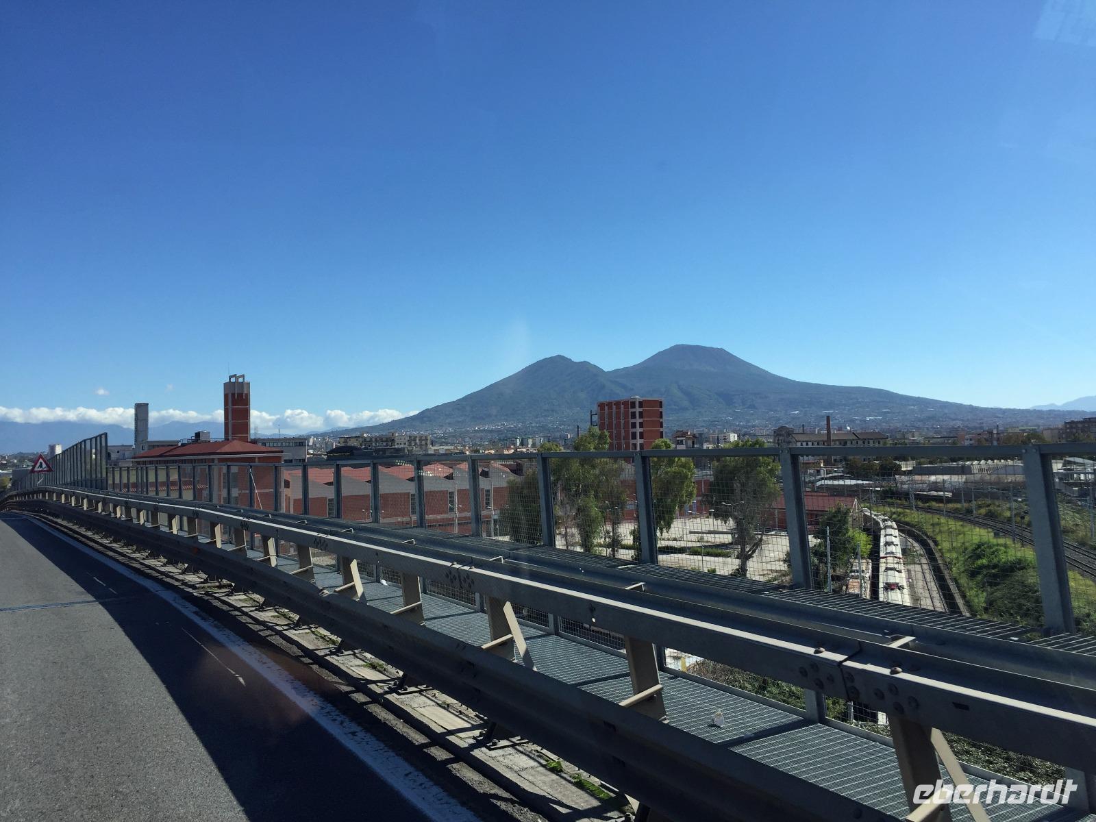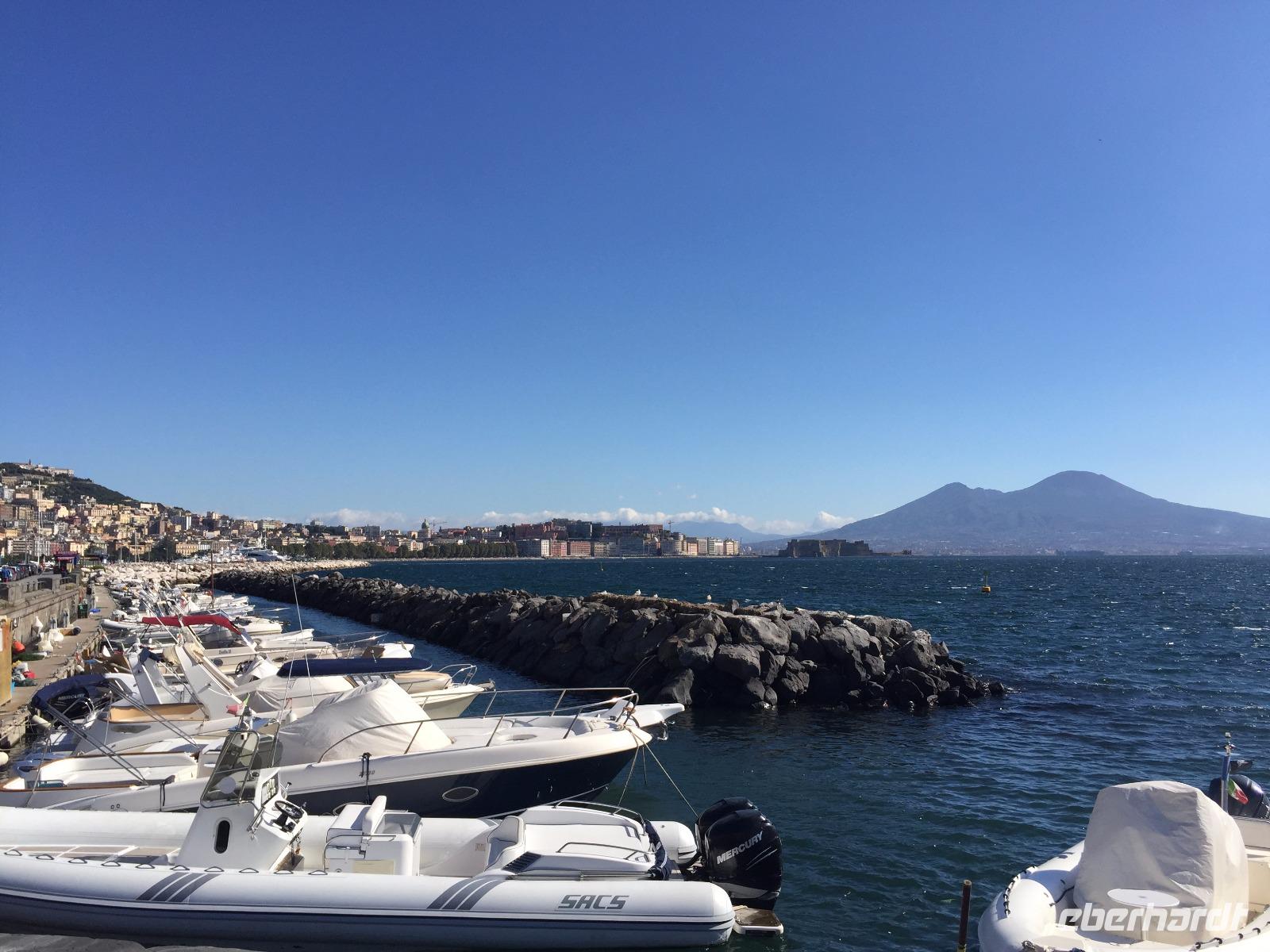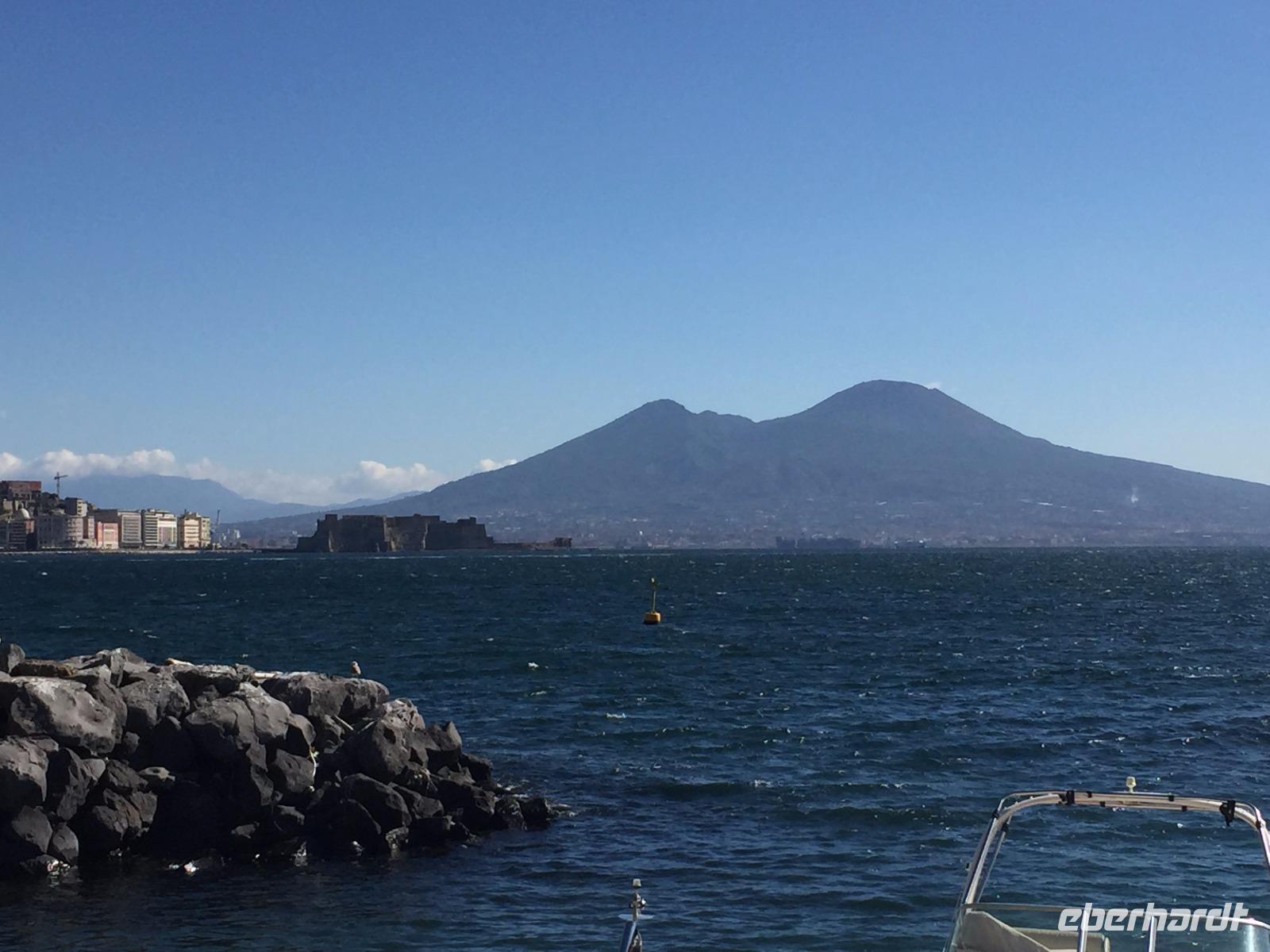 Als kleines „Eberhardt-Bonbon" unternehmen wir in Neapel noch eine kleine Stadtrundfahrt und sehen, dass die vom Vesuv beherrschte Stadt nicht nur Dreck und Schmutz bedeutet, sondern auch tolle Bauwerke, alte Palazzi und mächtige Castelli von geschichtlicher Besonderheit aufzeigen kann. An der Lungomare (Promenadenstraße entlang des Meeres) stoppen wir für ein letztes Foto vom mächtigen Vesuv und machen uns schließlich zum Flughafen. Nach dem reibungslosen Check-In und einem leckeren Venchi-Eis fliegen wir via Frankfurt zurück nach Leipzig bzw. Dresden.